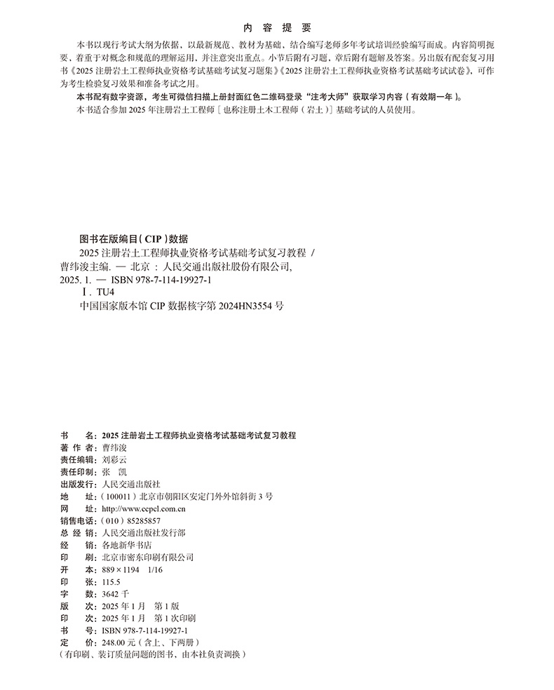 书名:2025注册岩土工程师执业资格考试基础考试复习教程