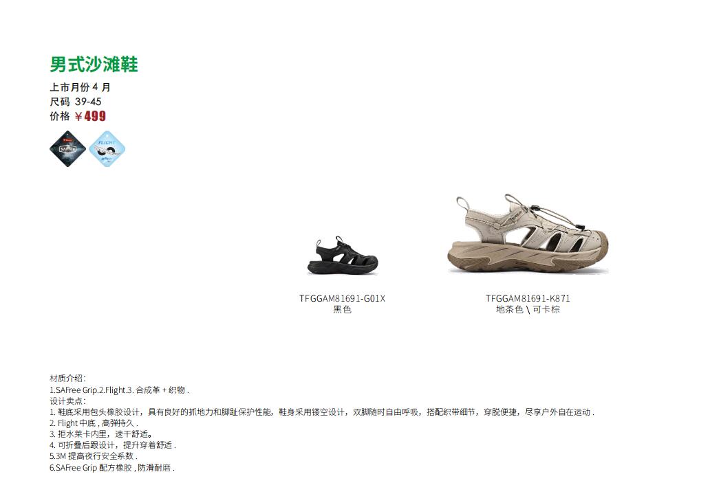探路者男式沙滩鞋TFGGAM81691