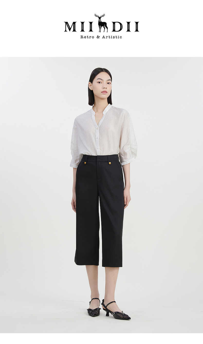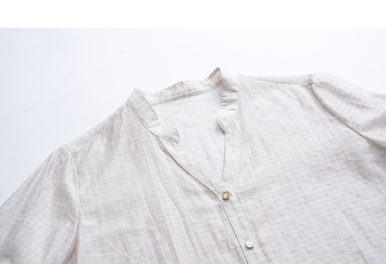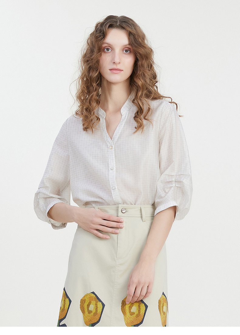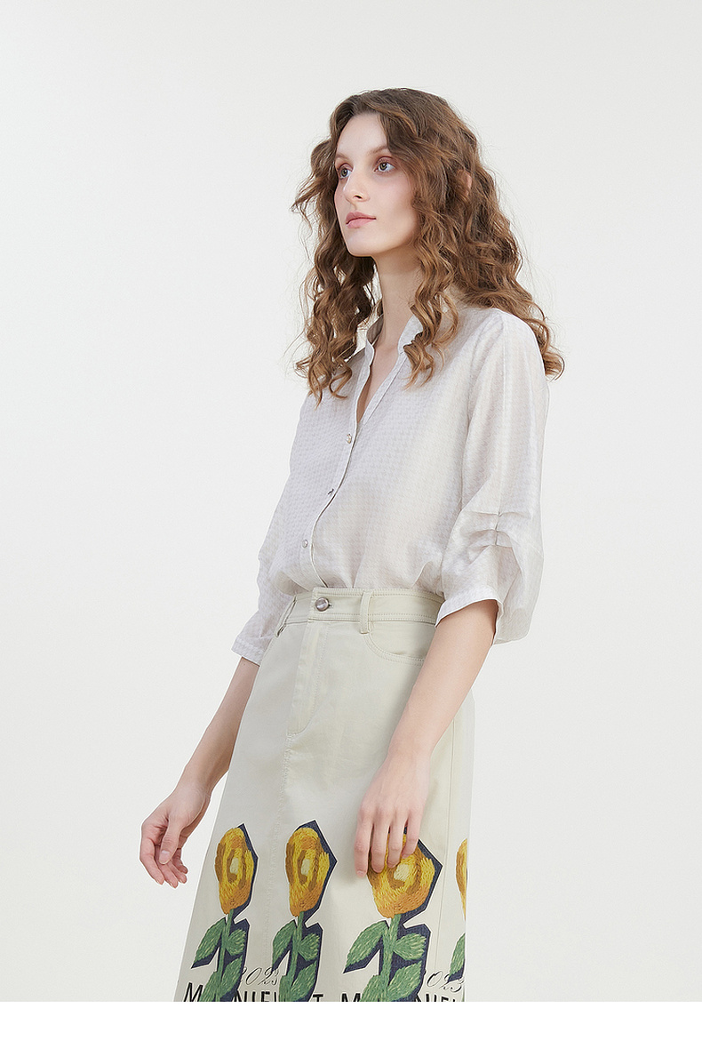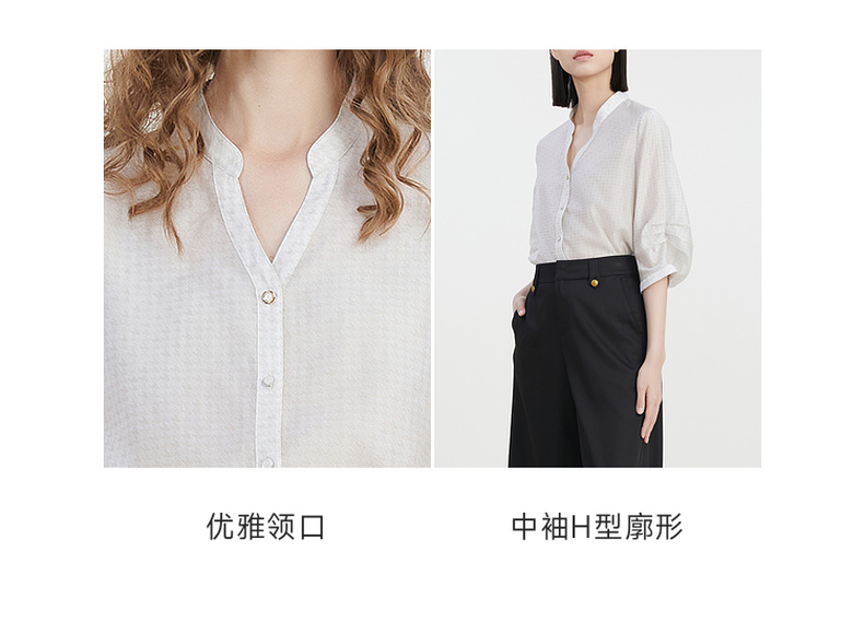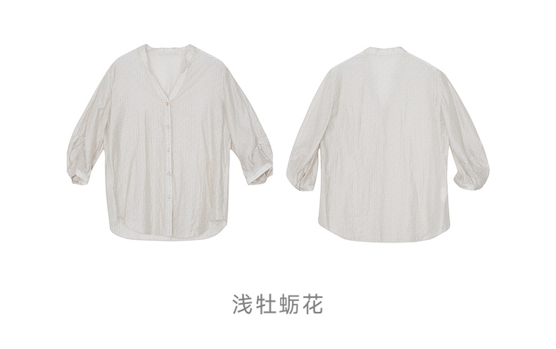 谜底V领提花衬衫女2023夏季新款通勤宽松衬衣褶皱感分袖232MC0688