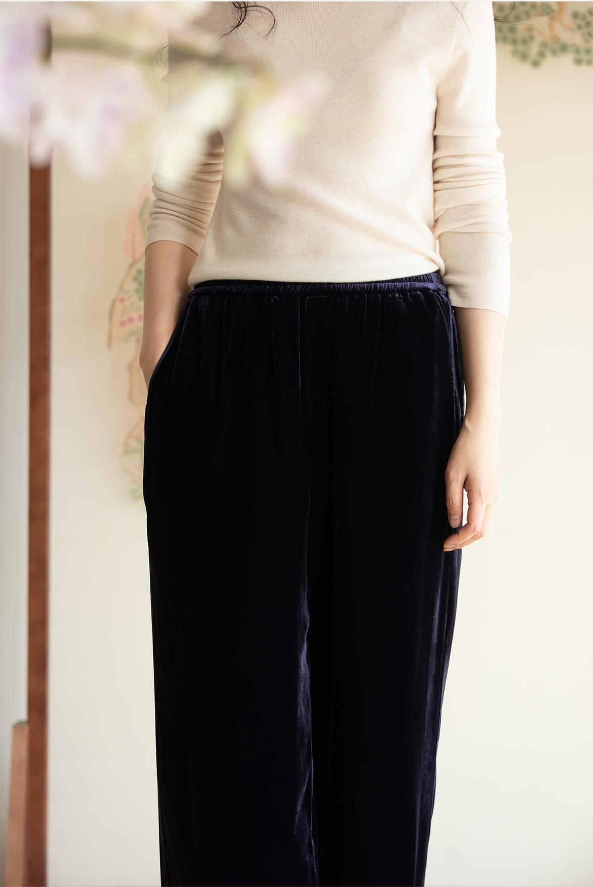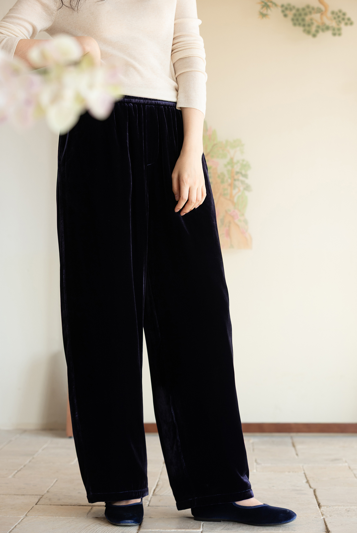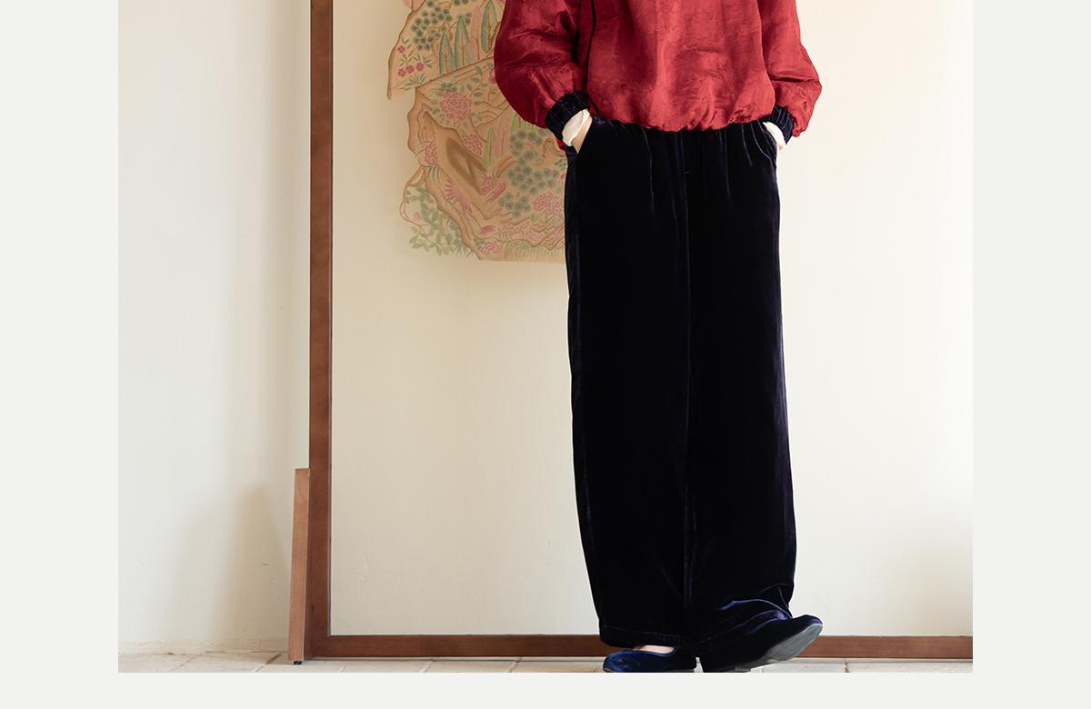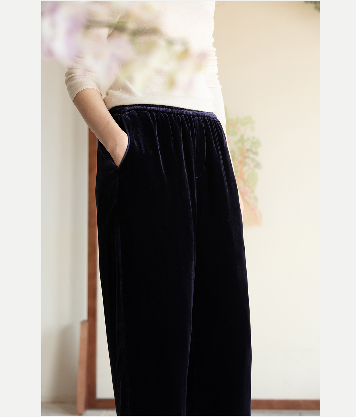 牧衣游原创 丝绒净色夹棉裤子女加厚宽松显瘦垂感百搭休闲裤 梅玖