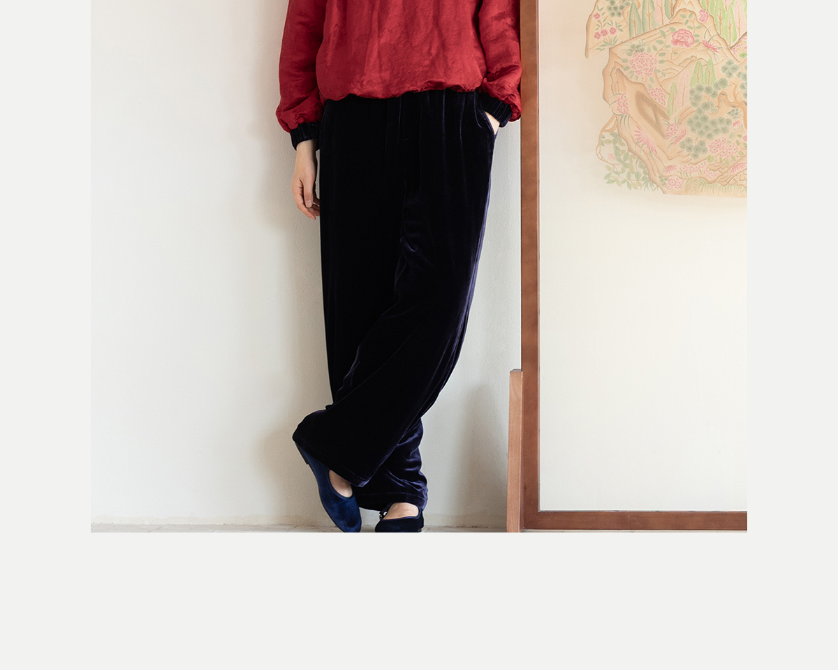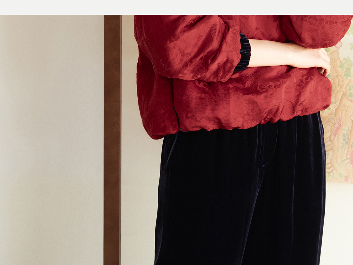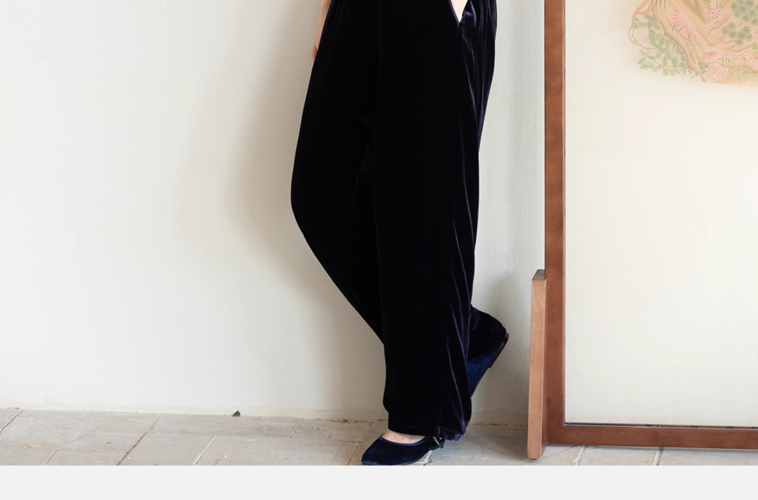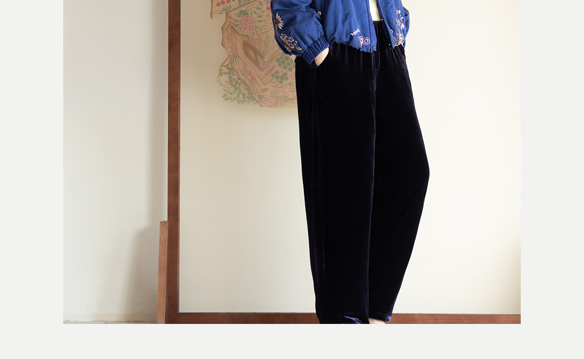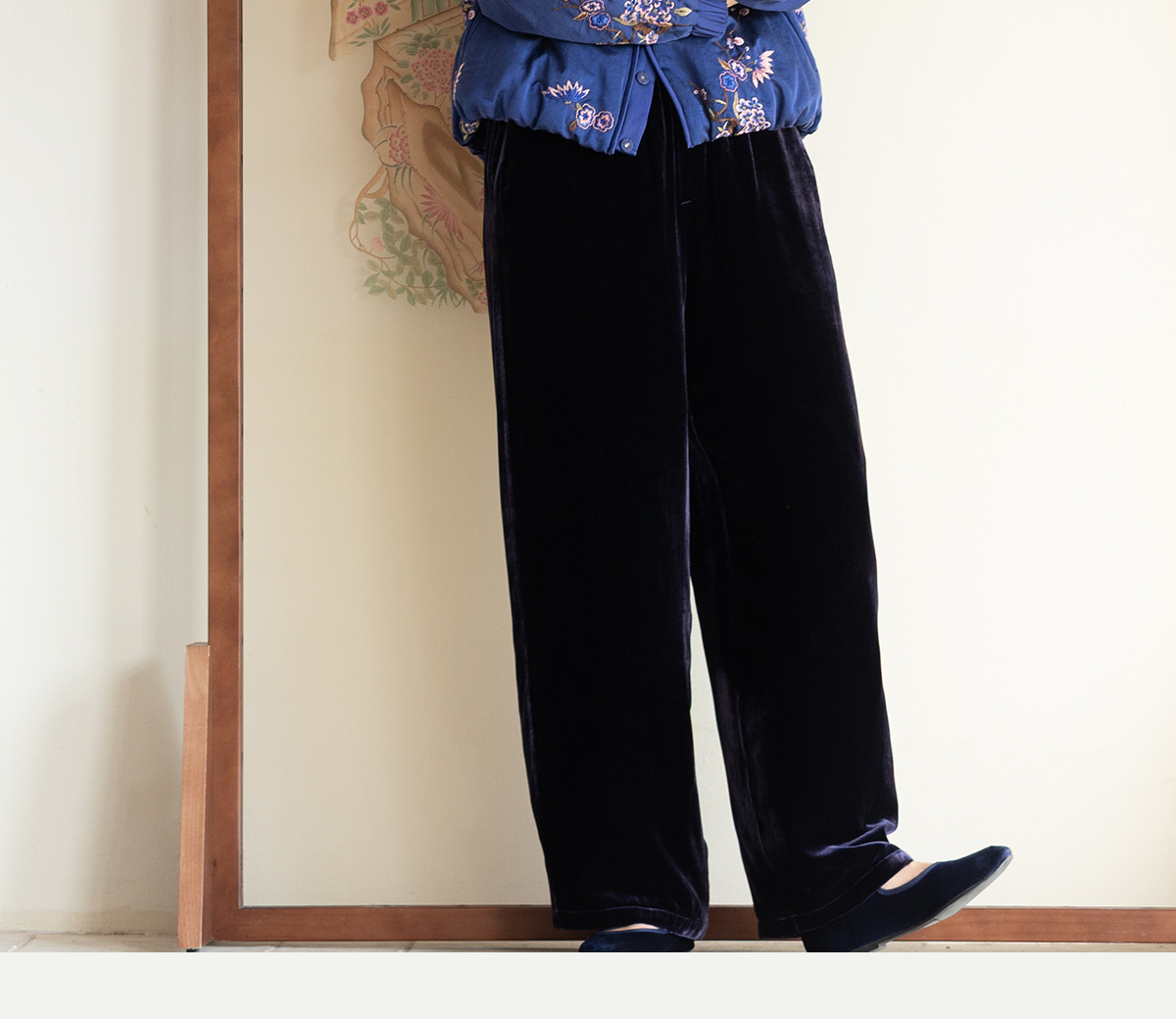 牧衣游原创 丝绒净色夹棉裤子女加厚宽松显瘦垂感百搭休闲裤 梅玖