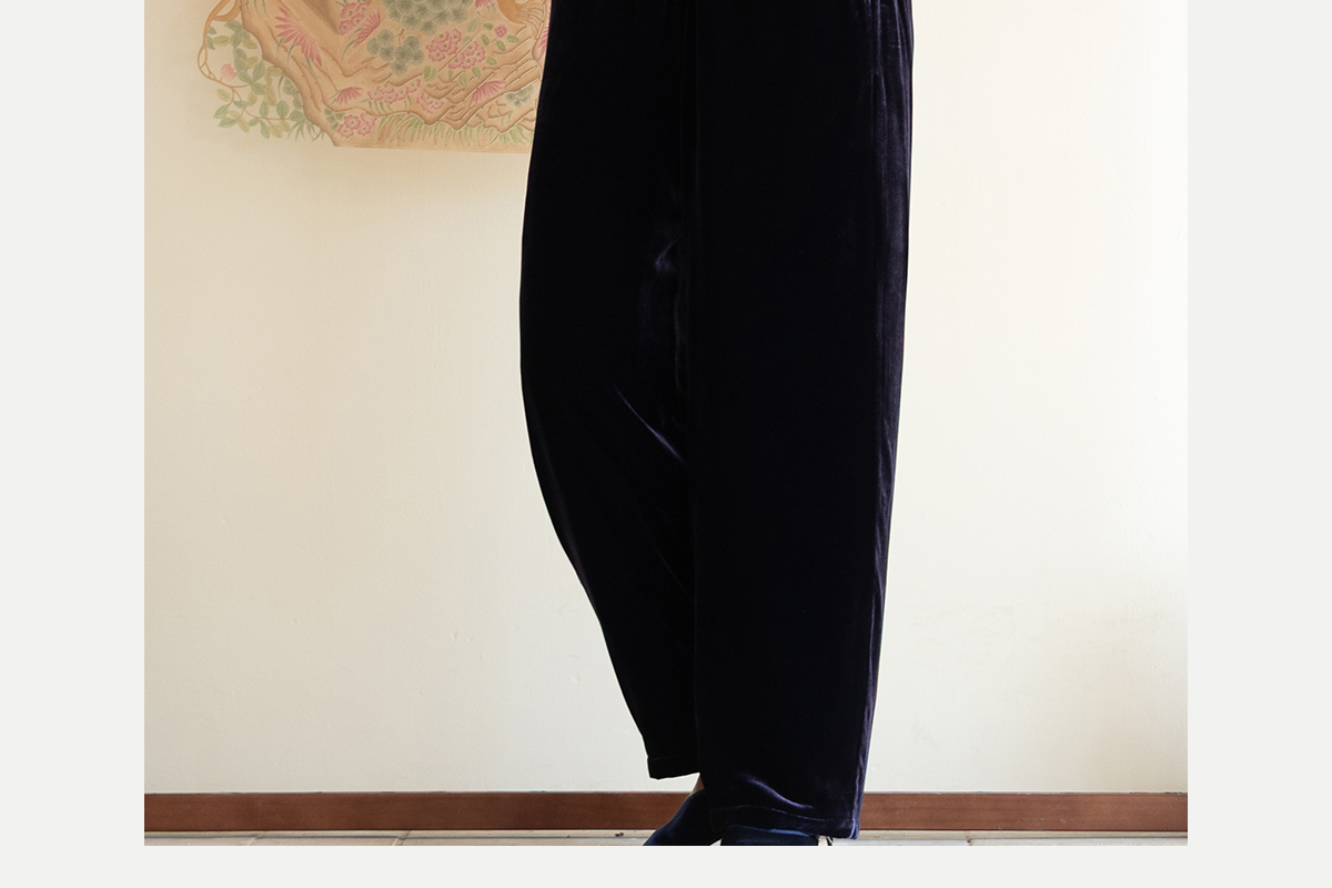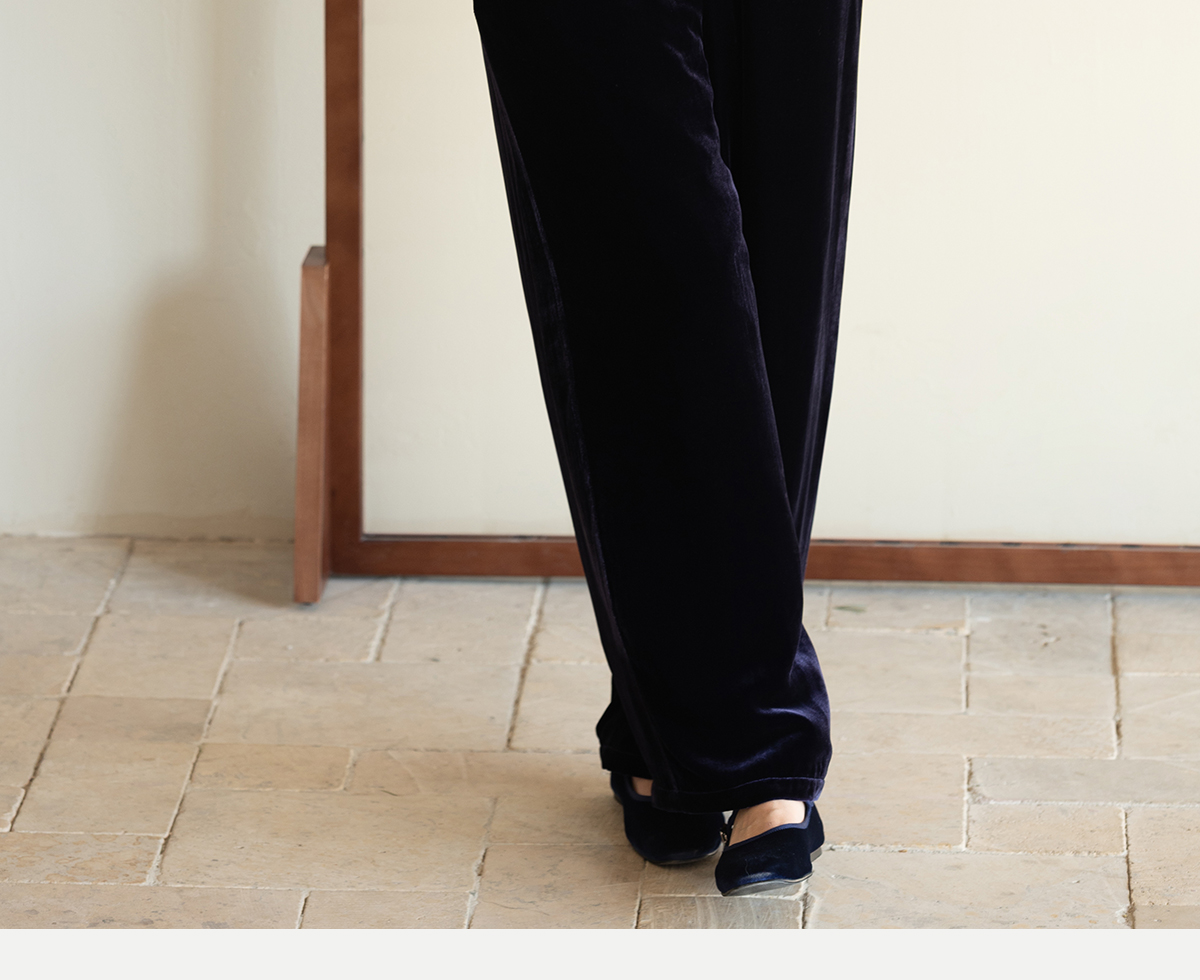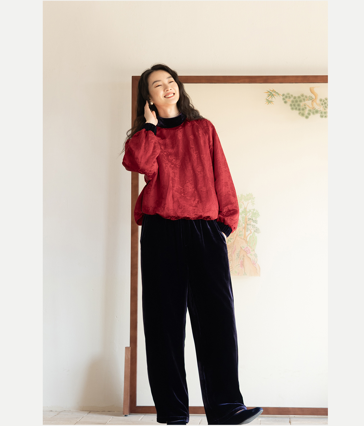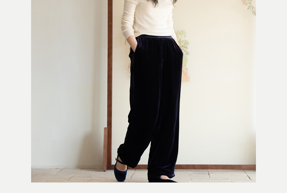 牧衣游原创 丝绒净色夹棉裤子女加厚宽松显瘦垂感百搭休闲裤 梅玖