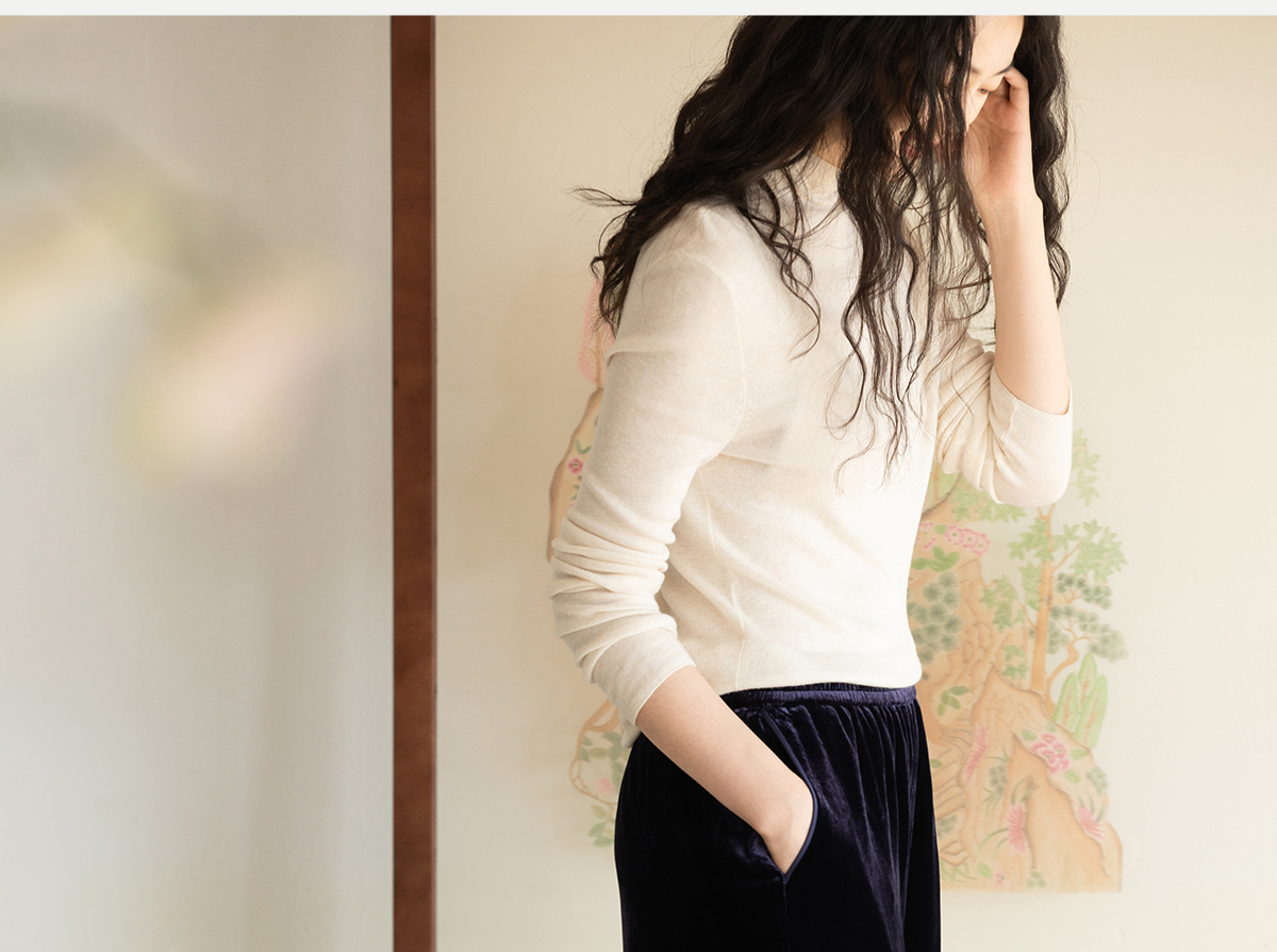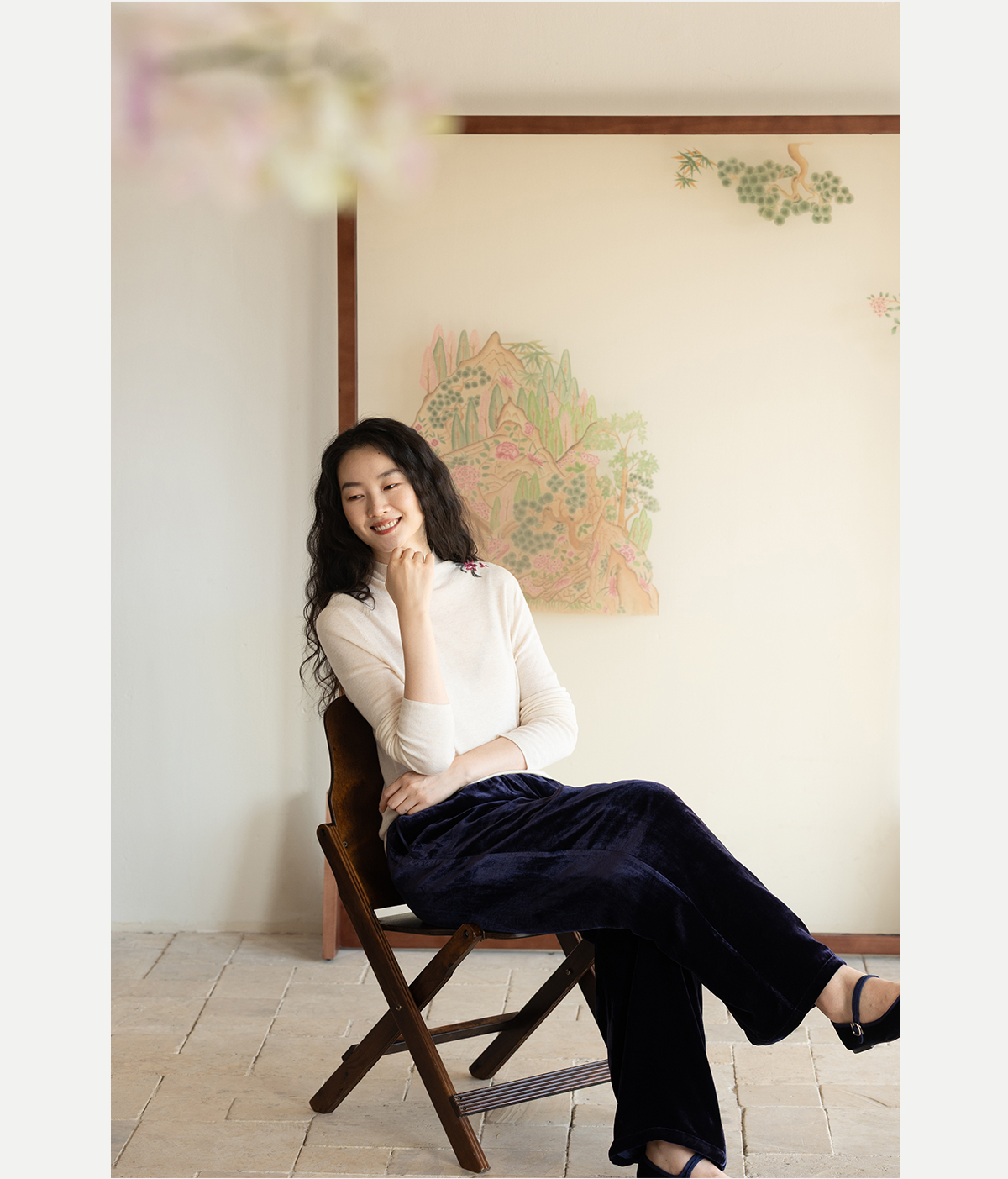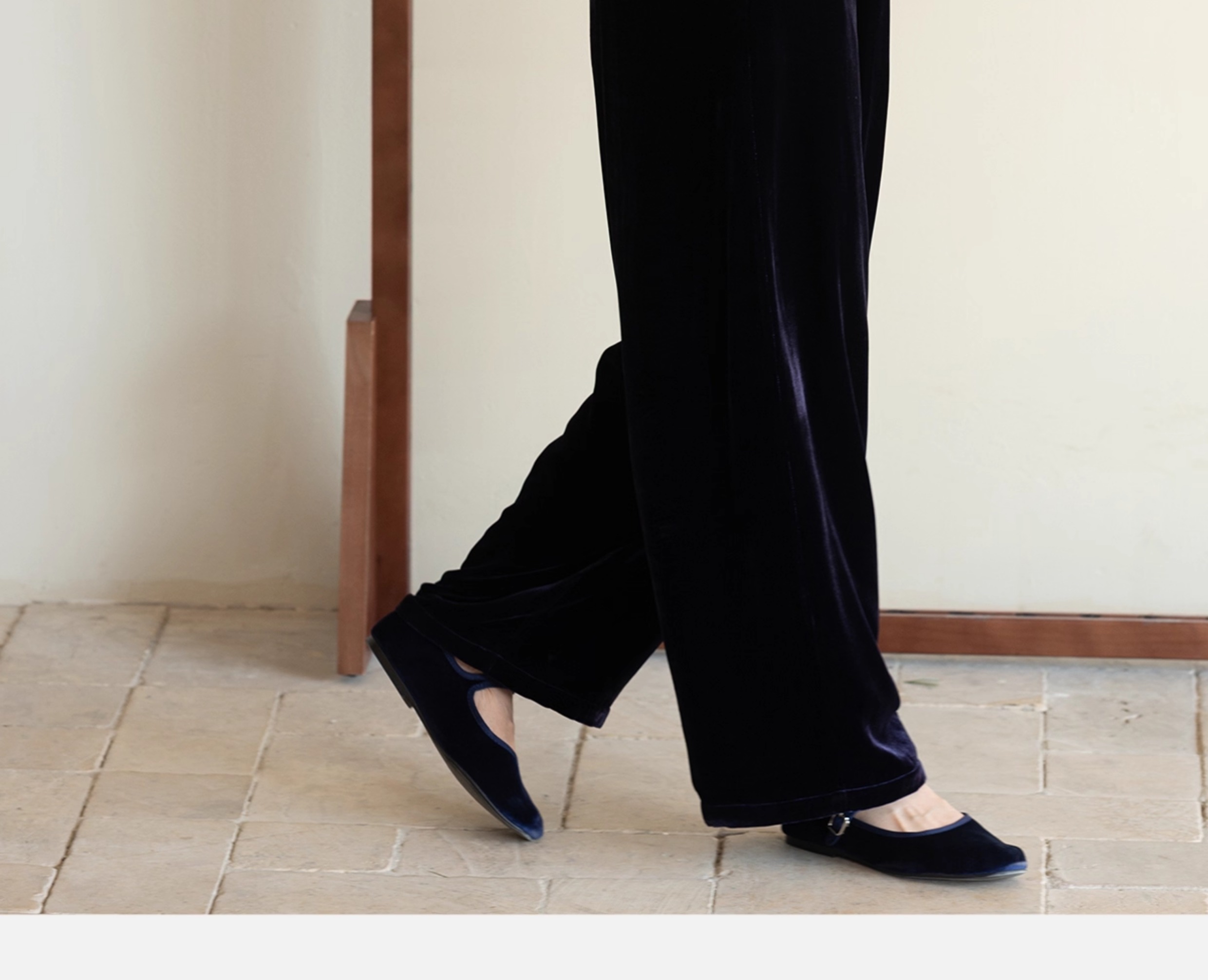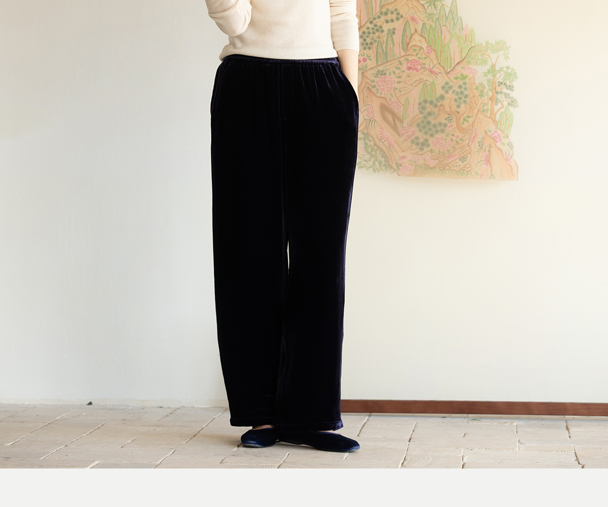 牧衣游原创 丝绒净色夹棉裤子女加厚宽松显瘦垂感百搭休闲裤 梅玖