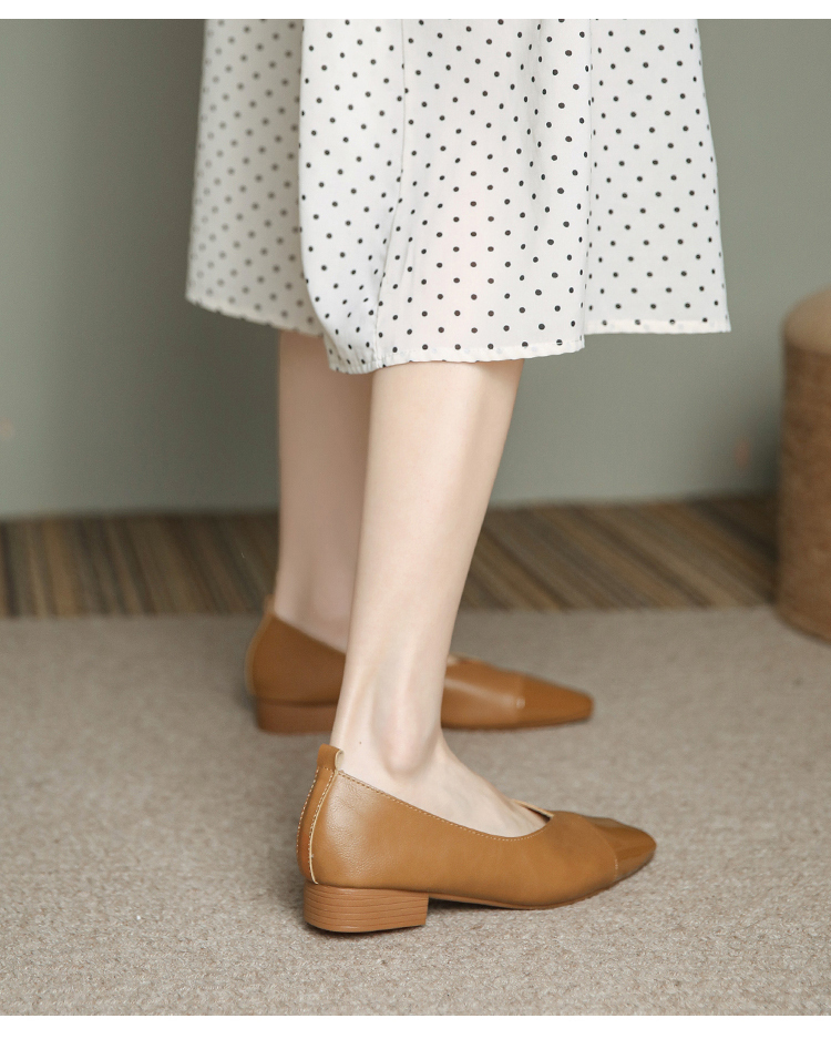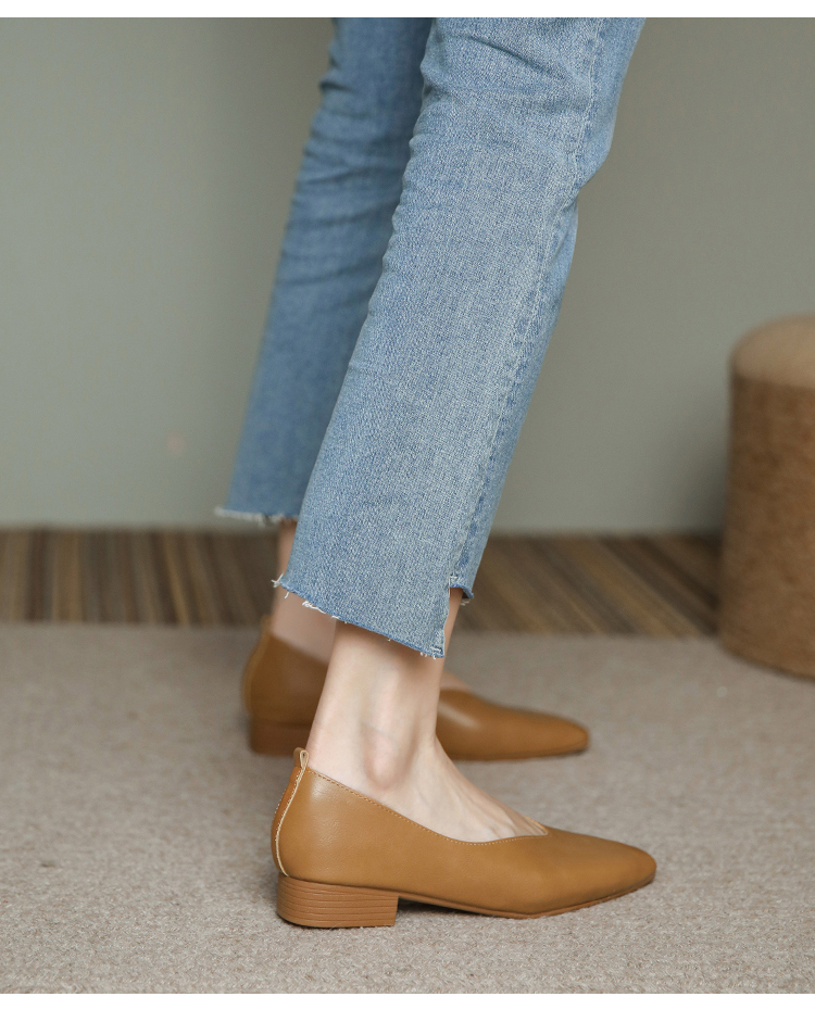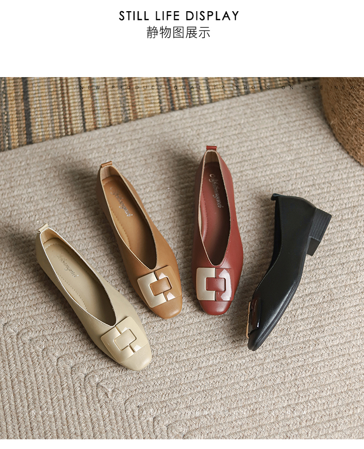 【品质女鞋丨法国方头真皮平底鞋 】 脚宽脚胖拍大一码哦!上脚柔软可商务 可休闲 一年四季可穿 真皮面料 透气真皮内里 贴合脚部肌肤 2.5CM跟高设计 平稳舒适的跟高设计