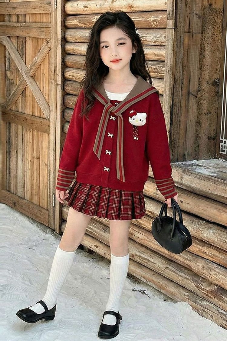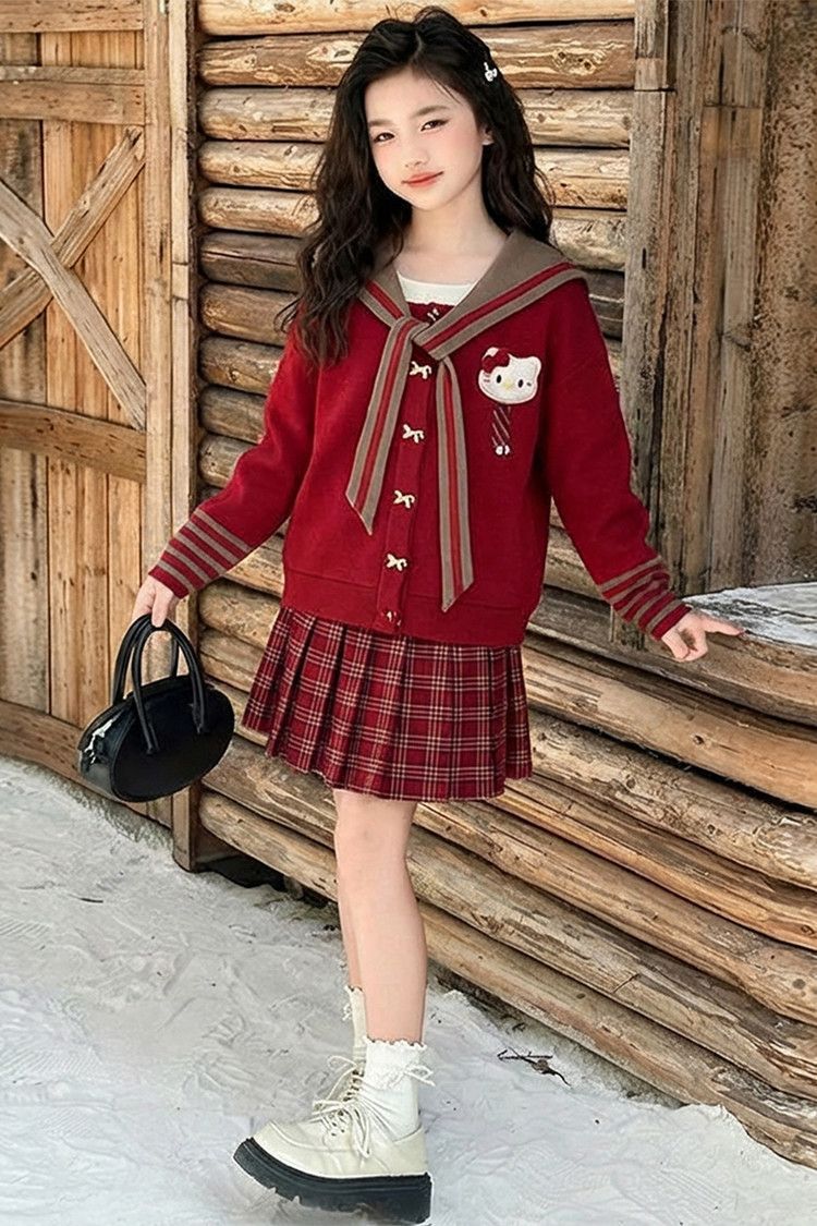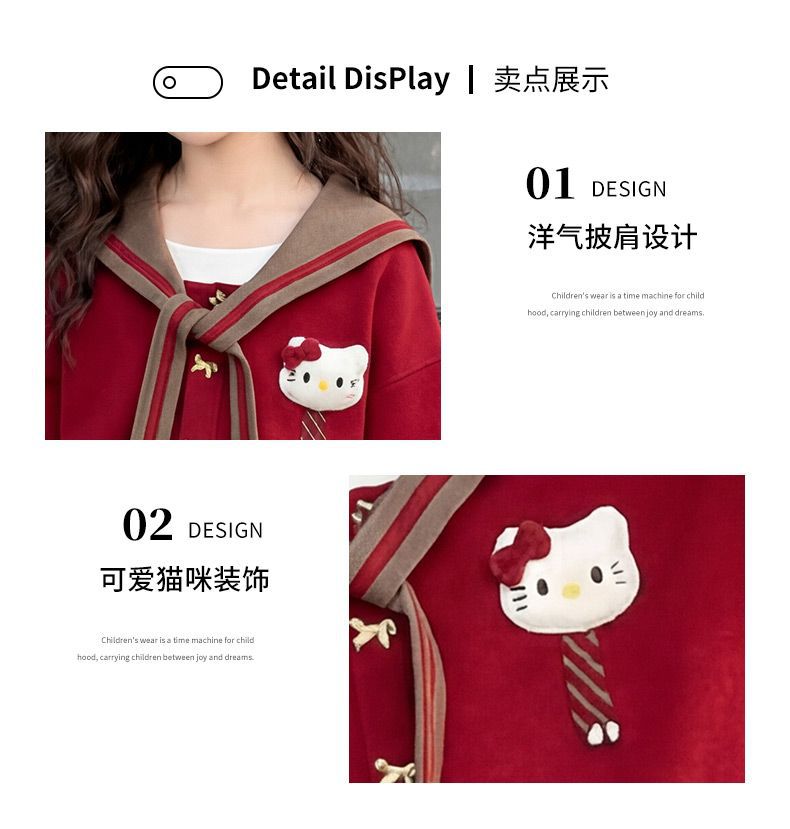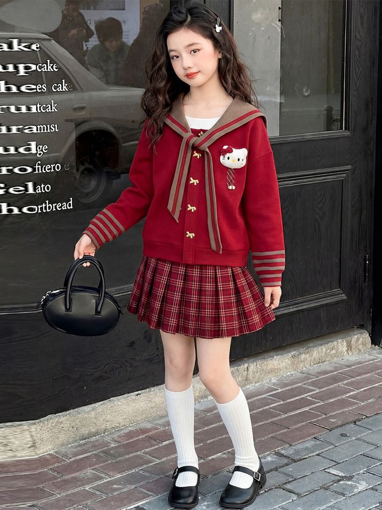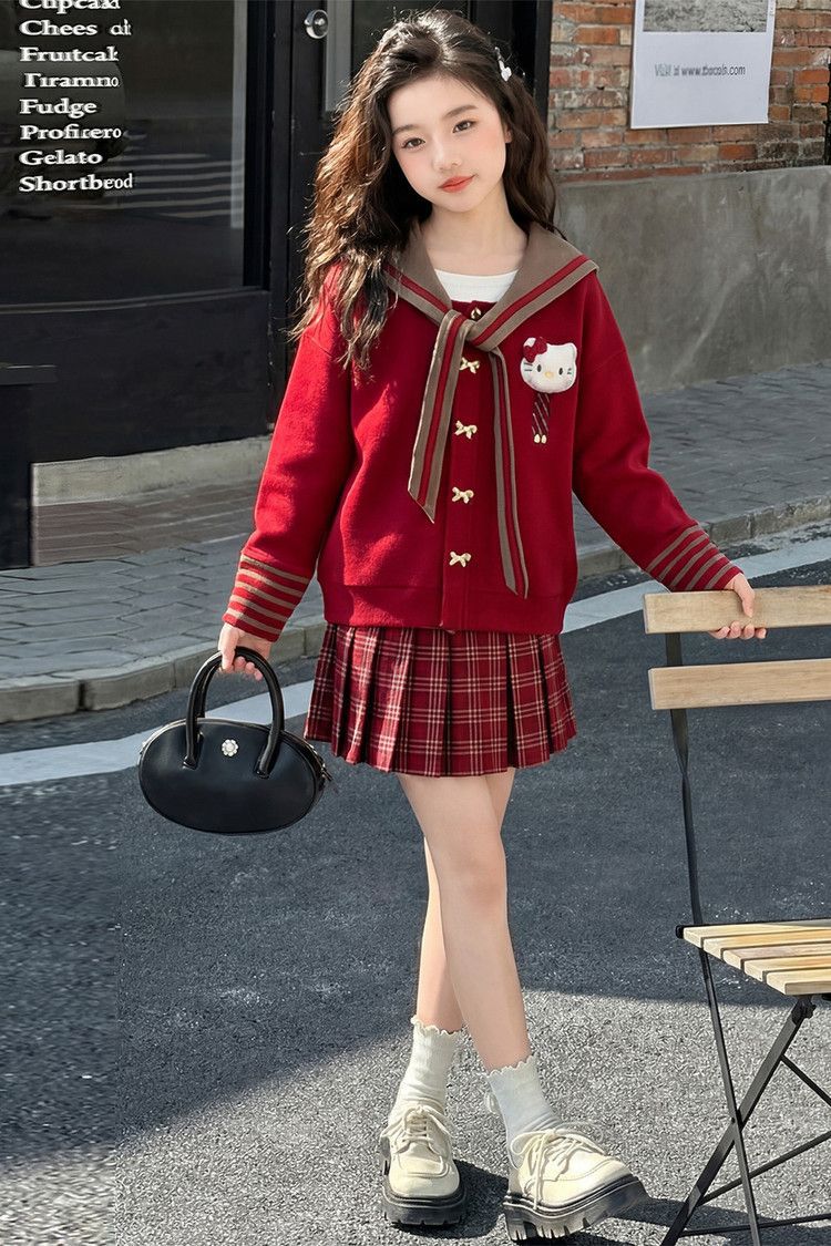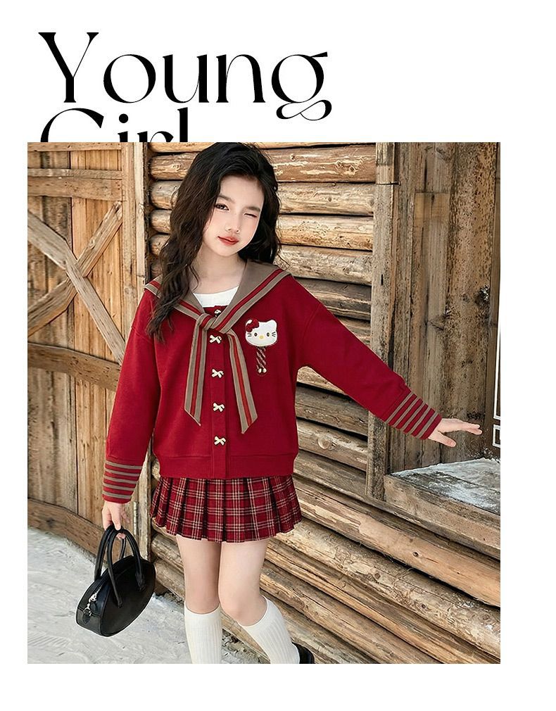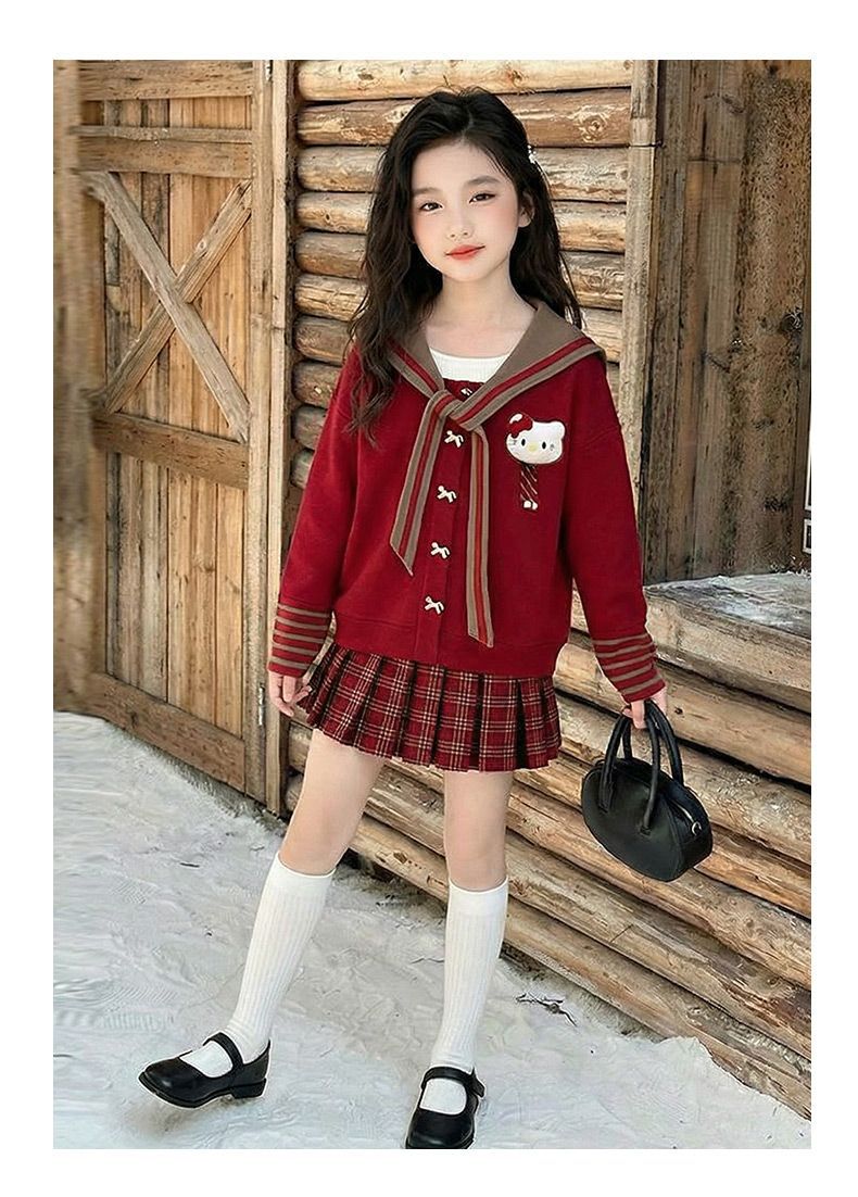 【甜系年服❗️潮流时尚】女童冬季加厚毛衣送KT猫挂件+加绒百褶裙两件套新年喜庆。jd