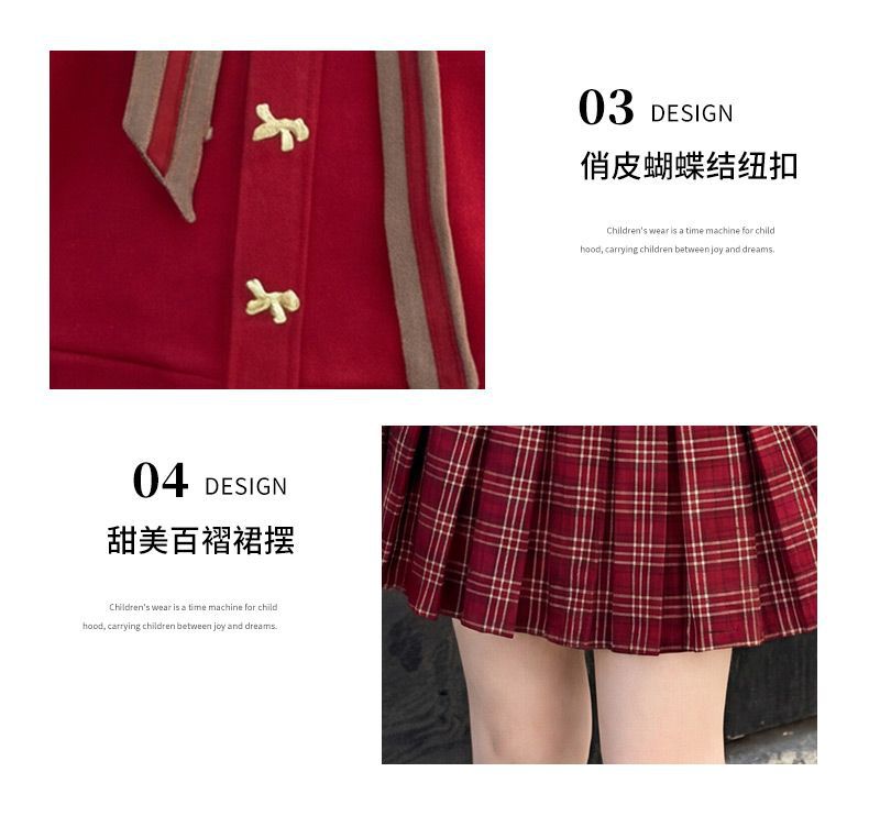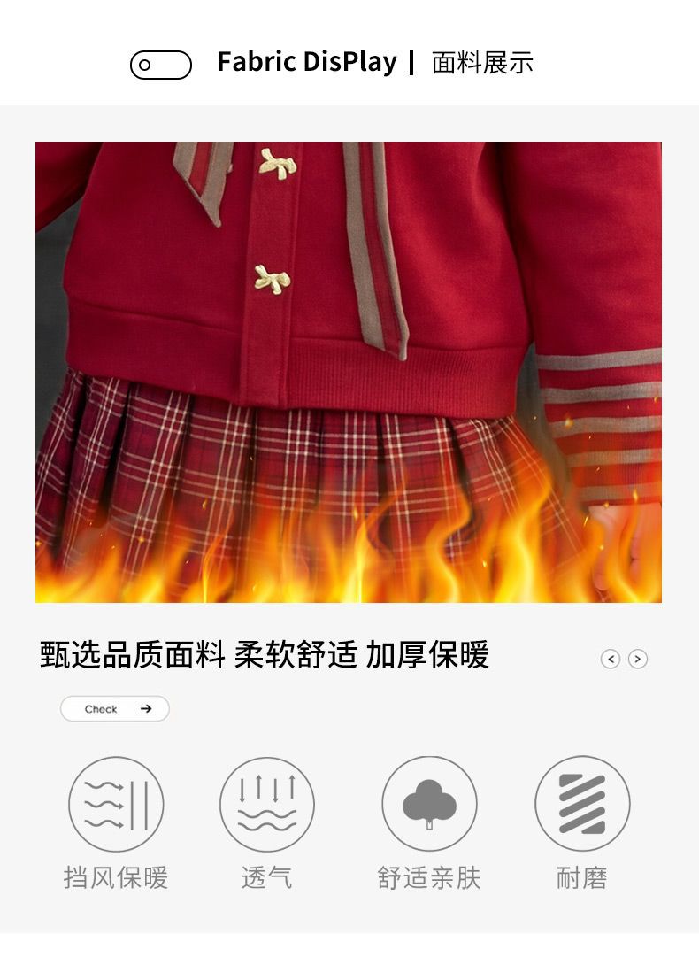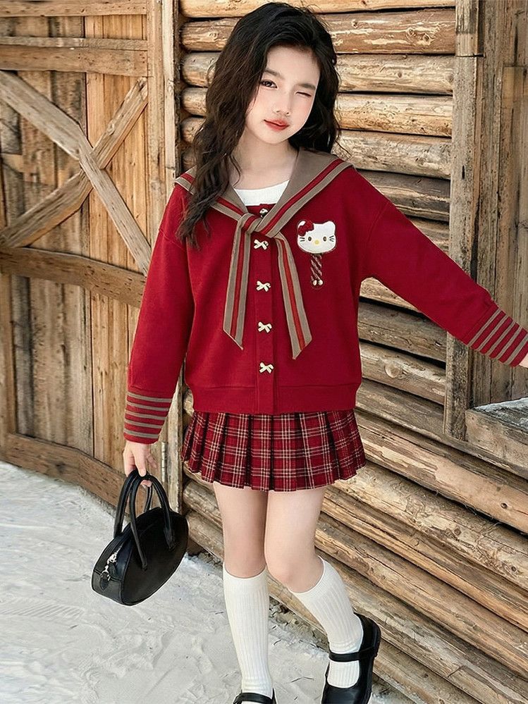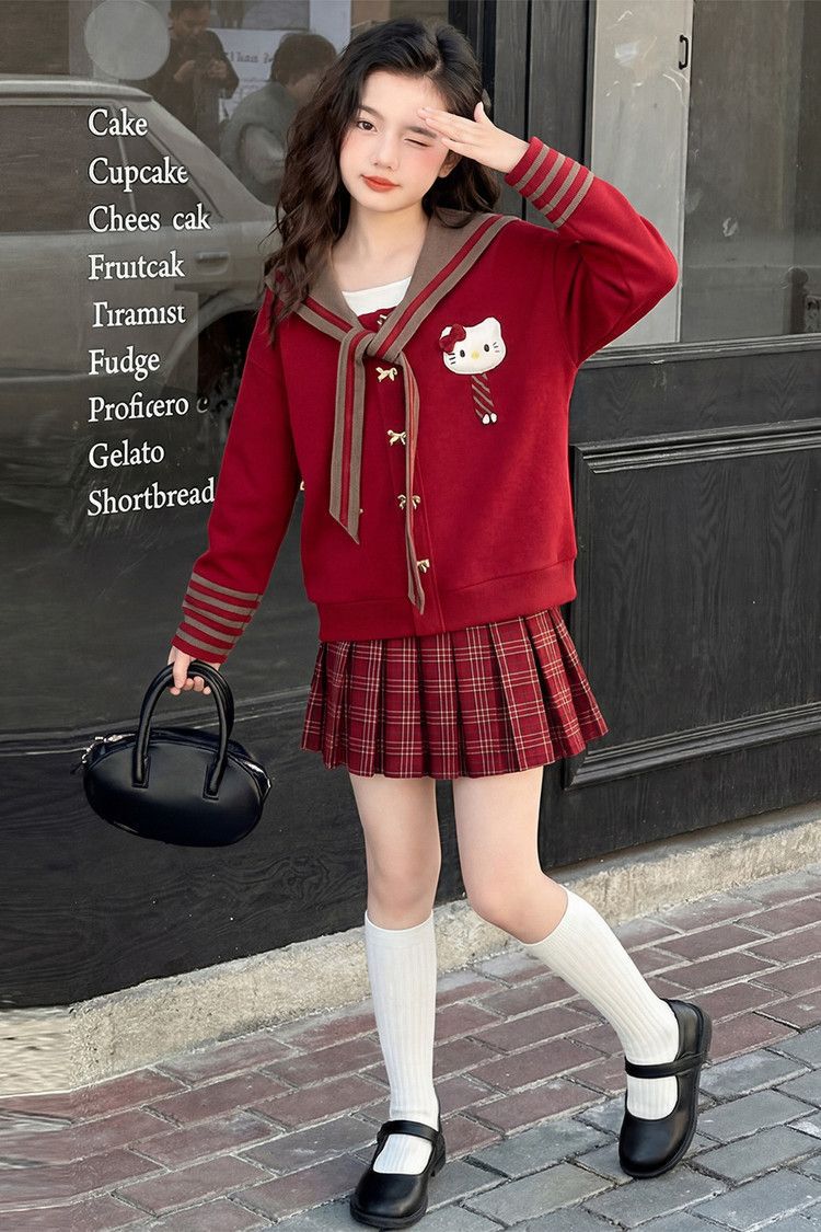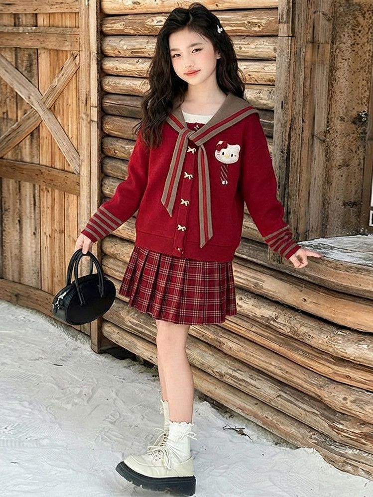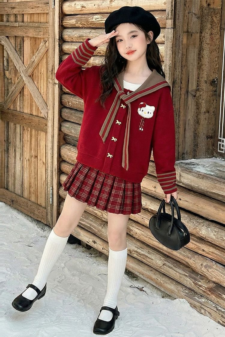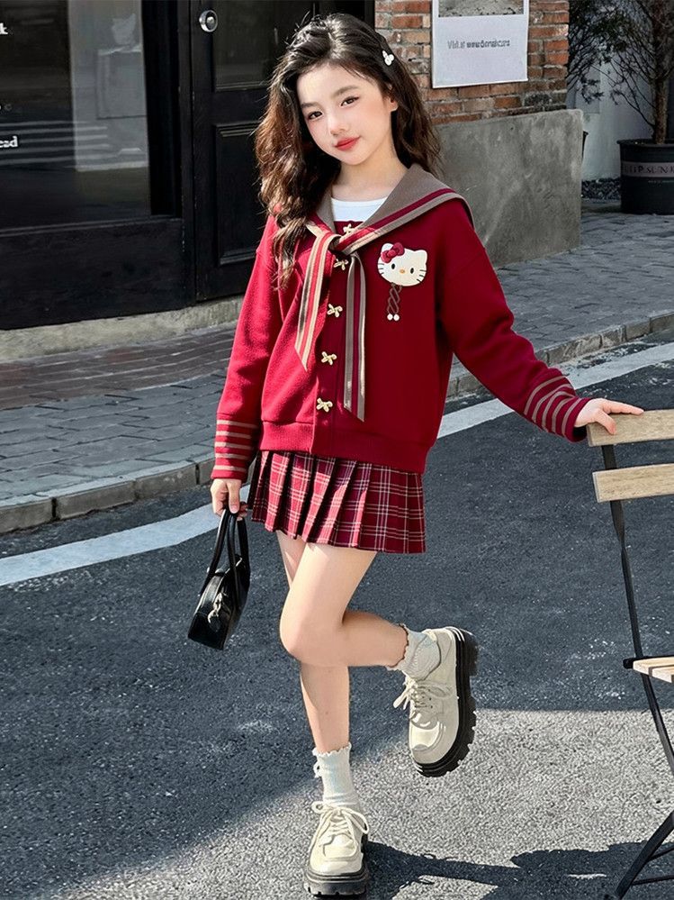 【甜系年服❗️潮流时尚】女童冬季加厚毛衣送KT猫挂件+加绒百褶裙两件套新年喜庆。jd