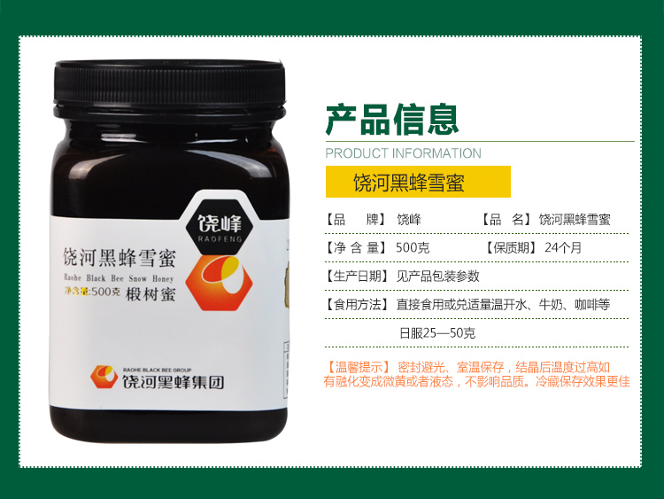 饶峰蜂蜜东北特产饶河黑蜂雪蜜椴树蜜500g 茶瓶