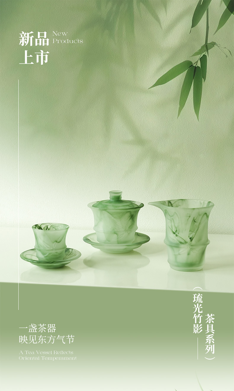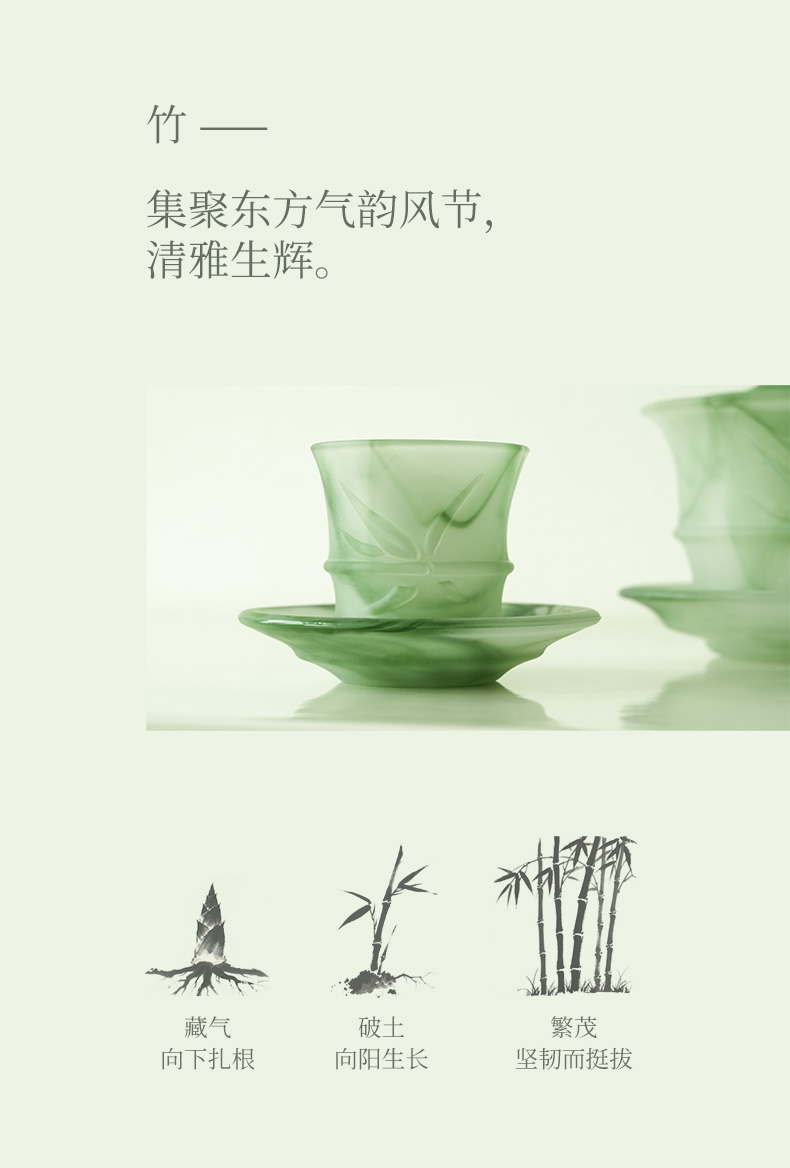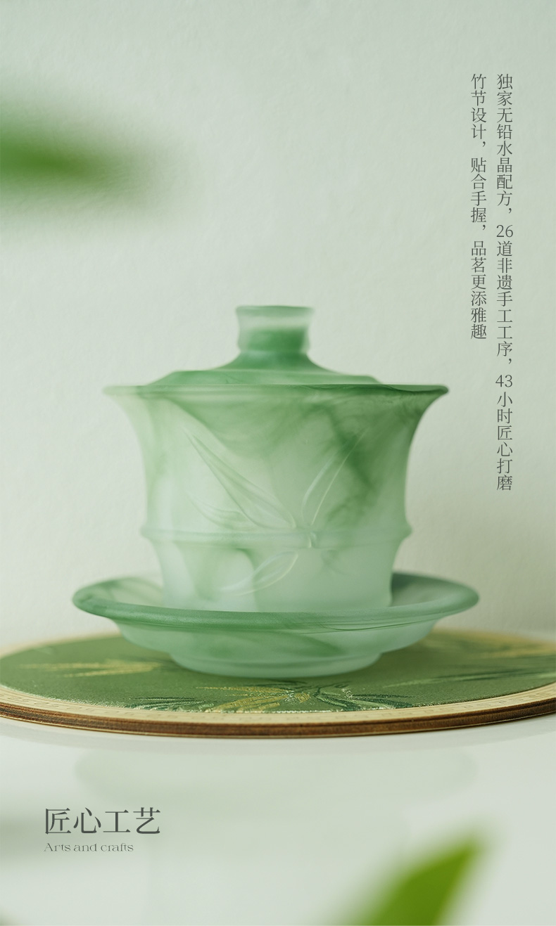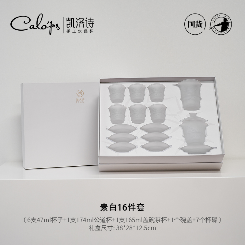 凯洛诗琉光竹影茶具手工水晶杯套装送礼高端随手礼套装创意茶艺杯琉光竹影素白茶具16件套