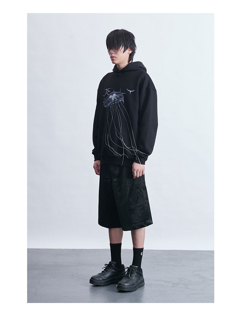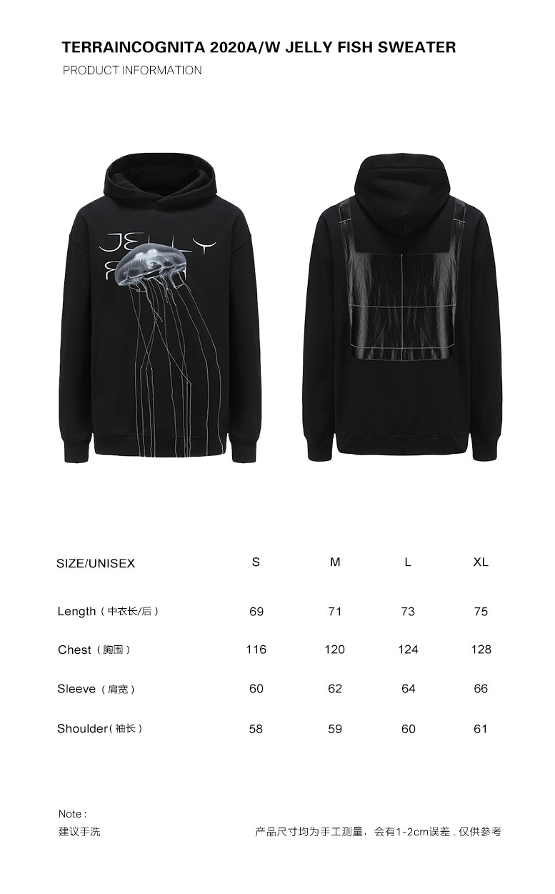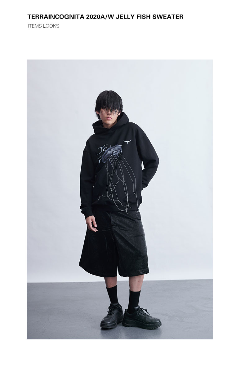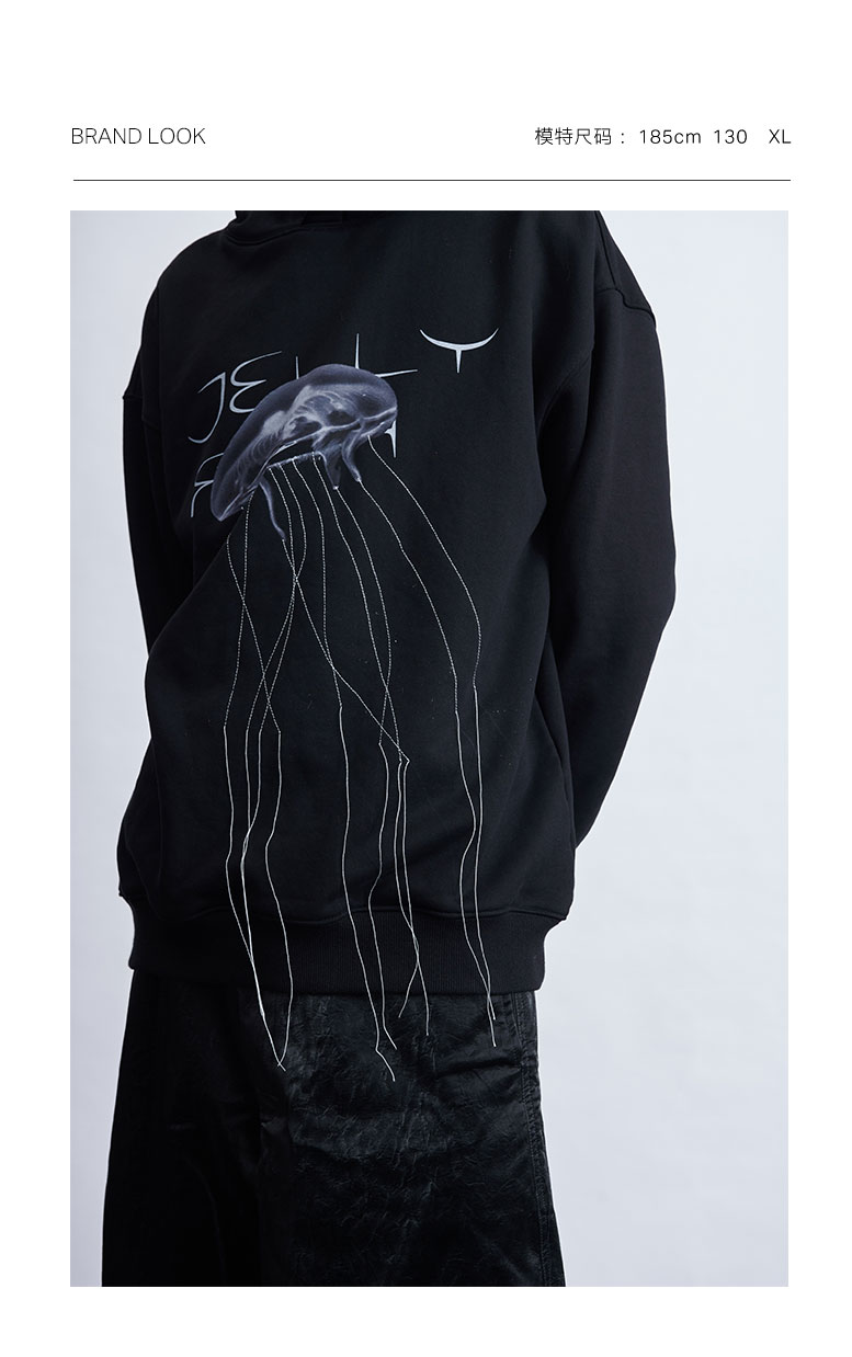 TERRAINCOGNITA20AW水母印花宽松连帽卫衣休闲长袖百搭贴布男女