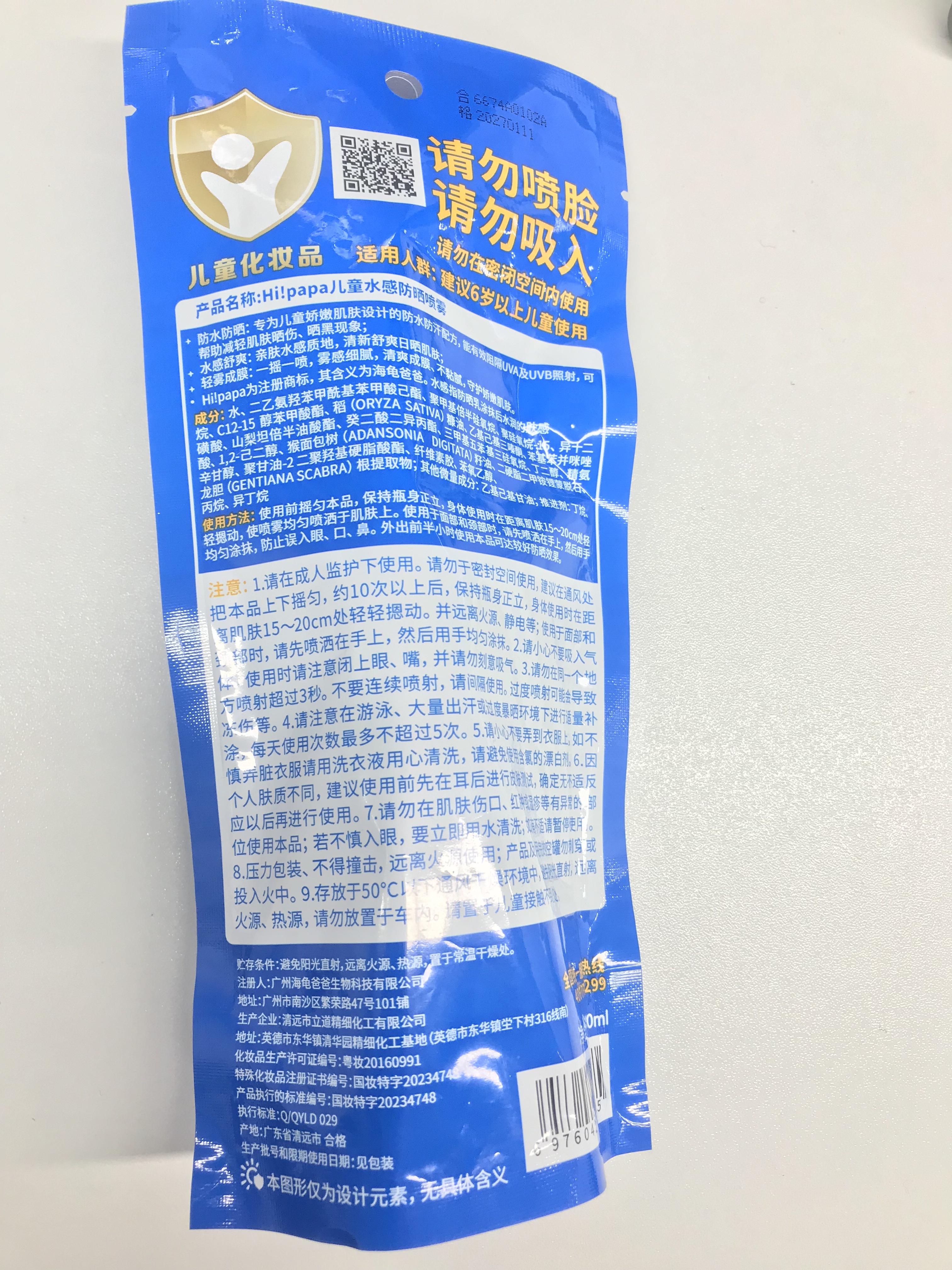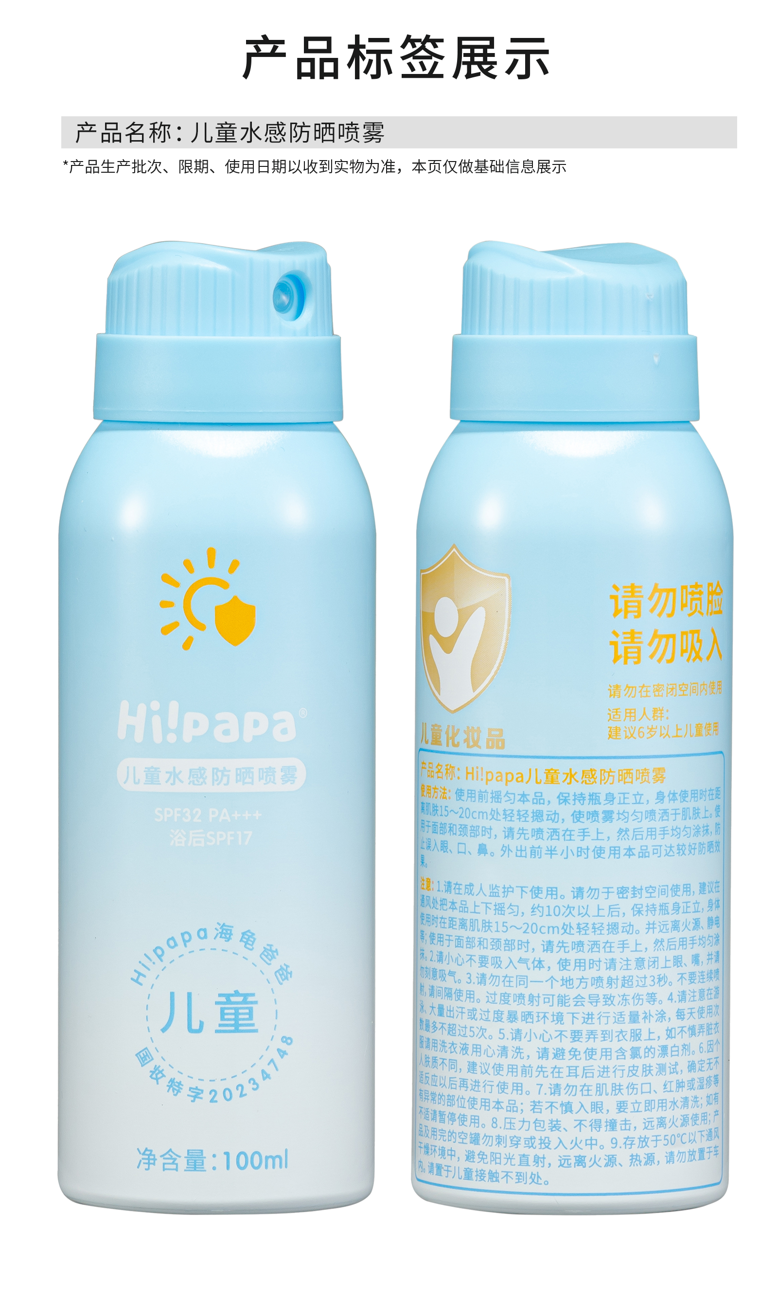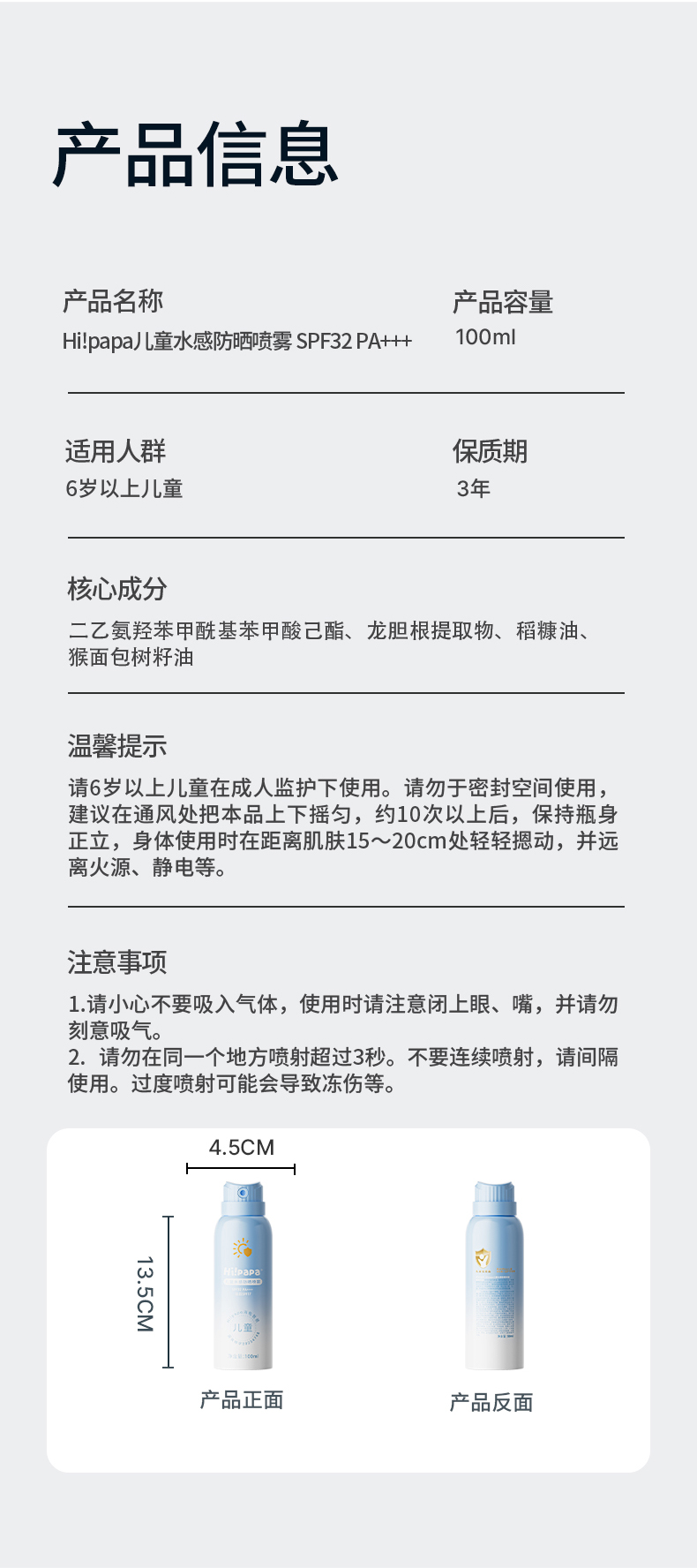 【Hi!papa / 海龟爸爸】儿童防晒喷雾100ml(防水防汗)