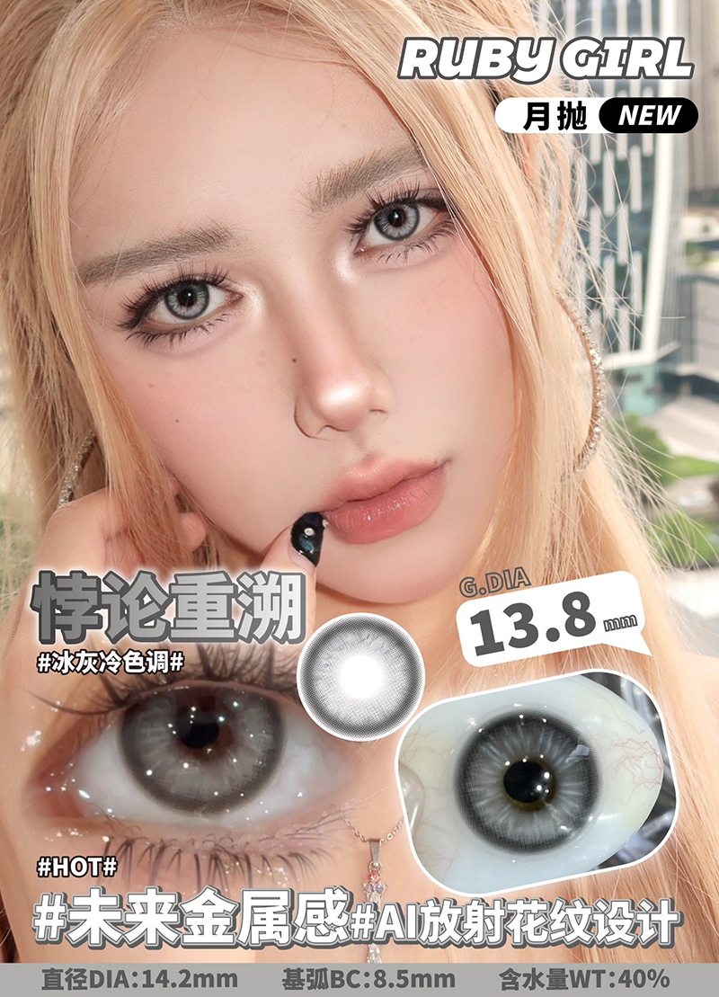 Ruby girl 悖论重溯 月抛 两片 14.2mm 参考着色 13.8mm 基弧 8.5 含水 40% 新锐国货