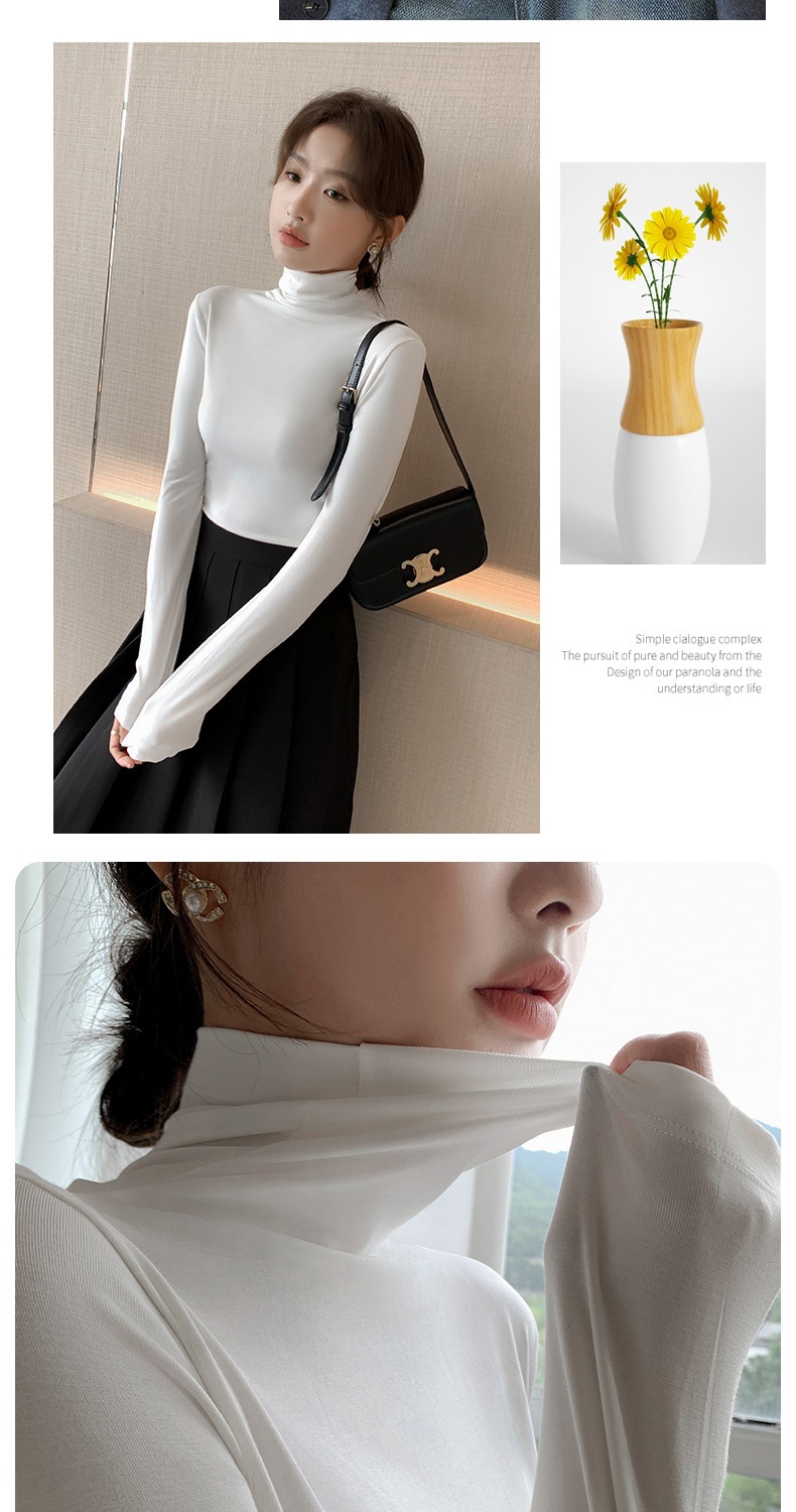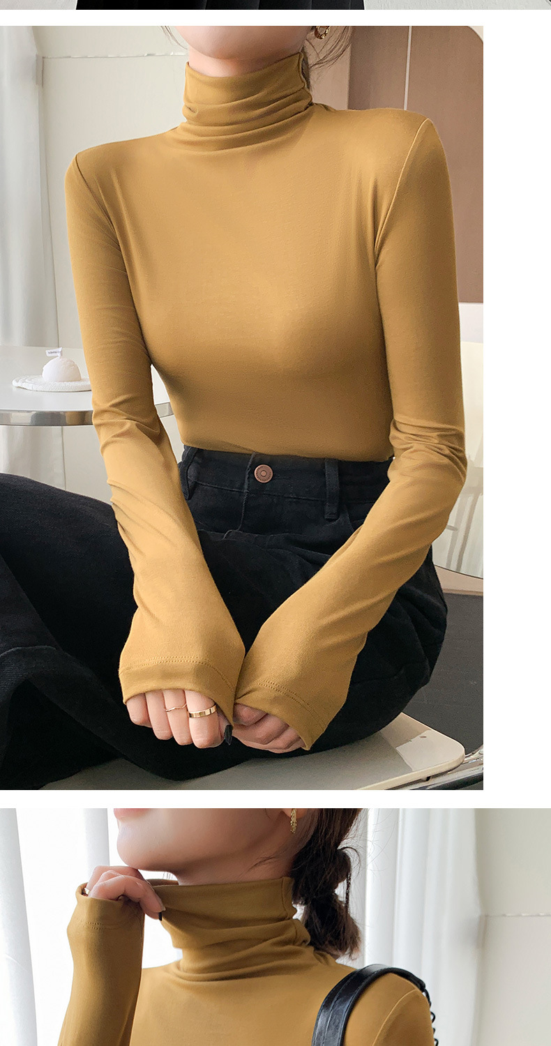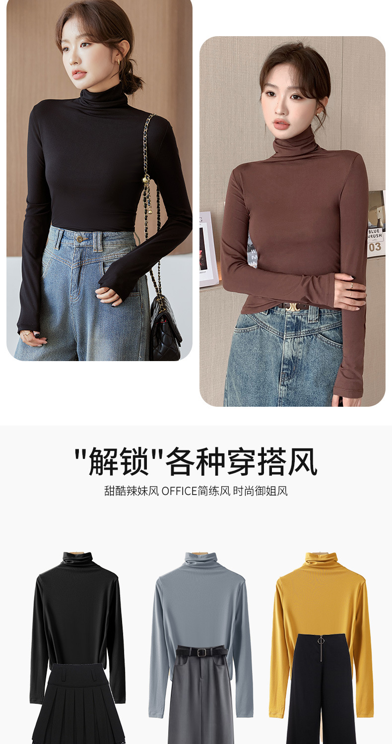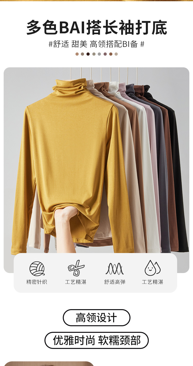 莫代尔打底衫女新款春秋内搭薄款长袖高领黑色基础外穿堆堆领上衣秋季新款内搭