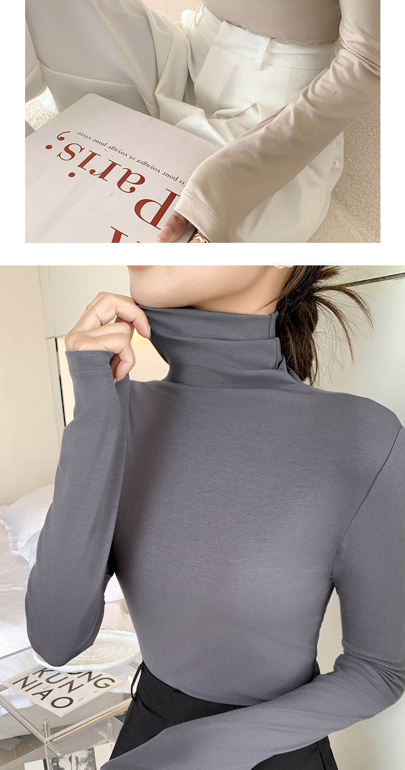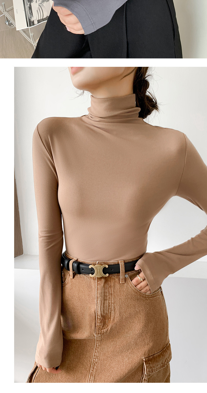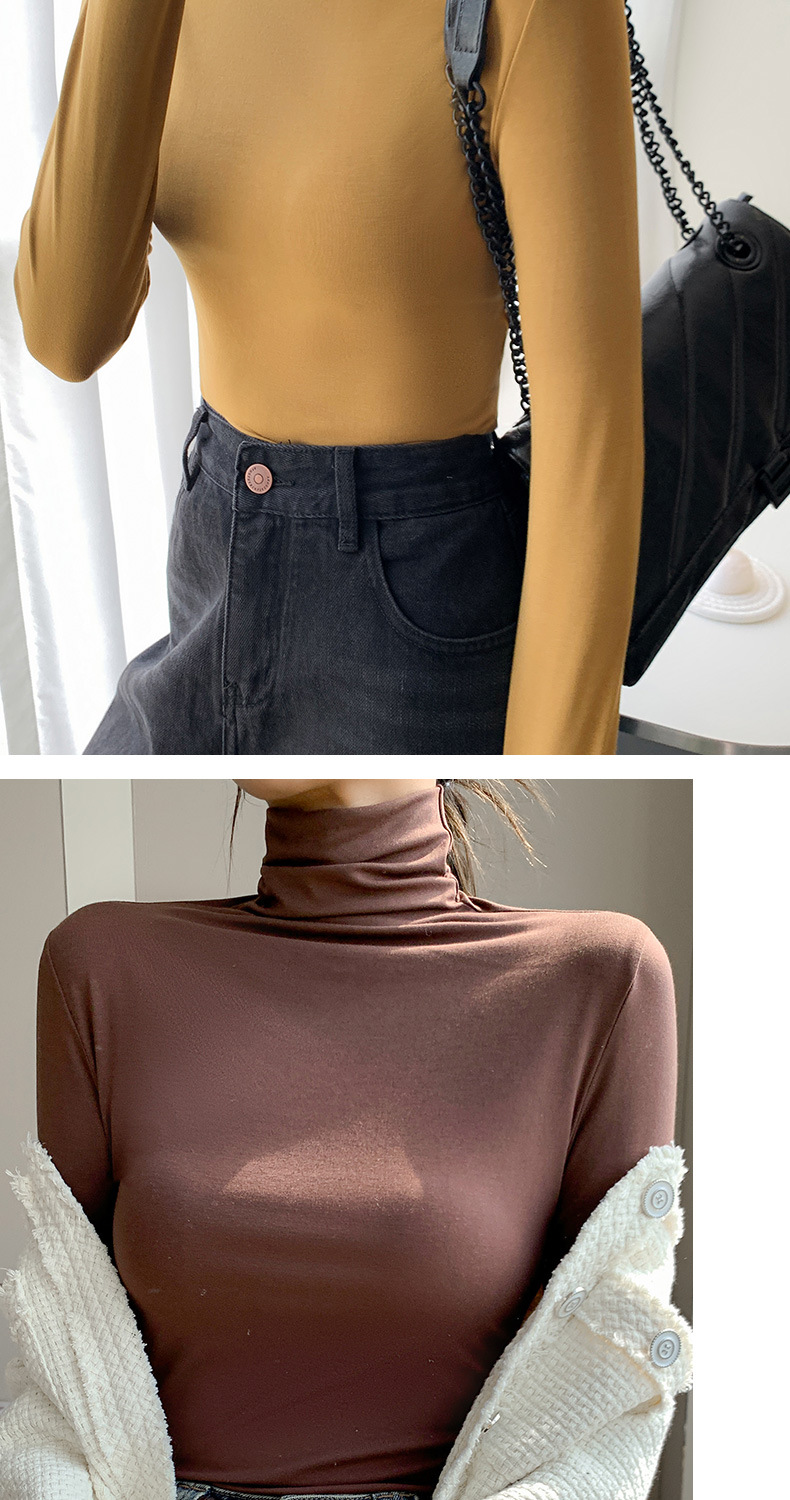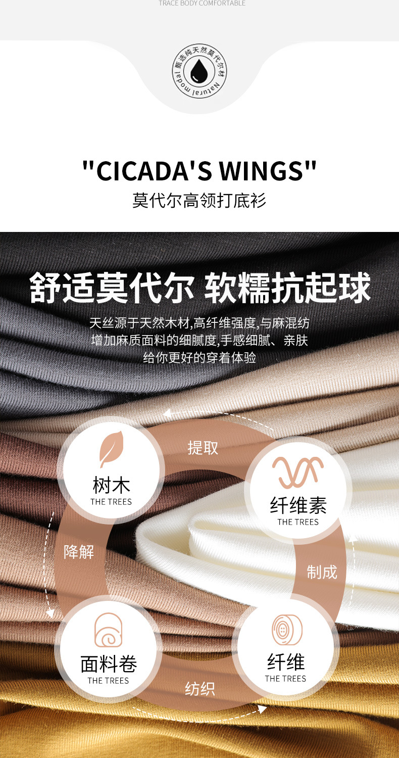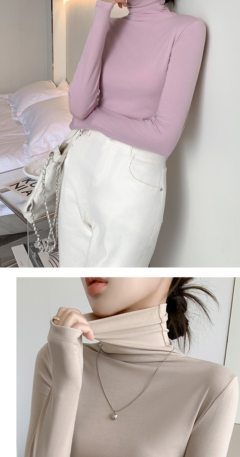 莫代尔打底衫女新款春秋内搭薄款长袖高领黑色基础外穿堆堆领上衣秋季新款内搭