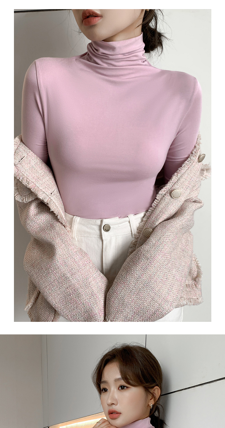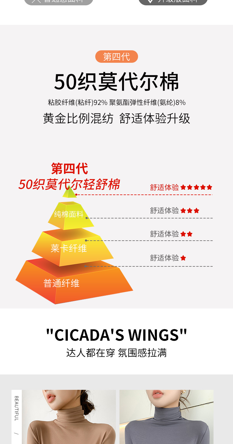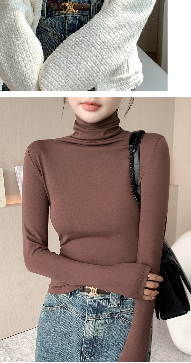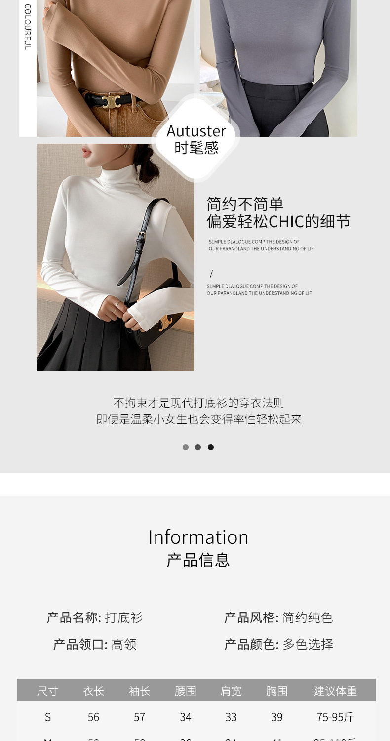 莫代尔打底衫女新款春秋内搭薄款长袖高领黑色基础外穿堆堆领上衣秋季新款内搭