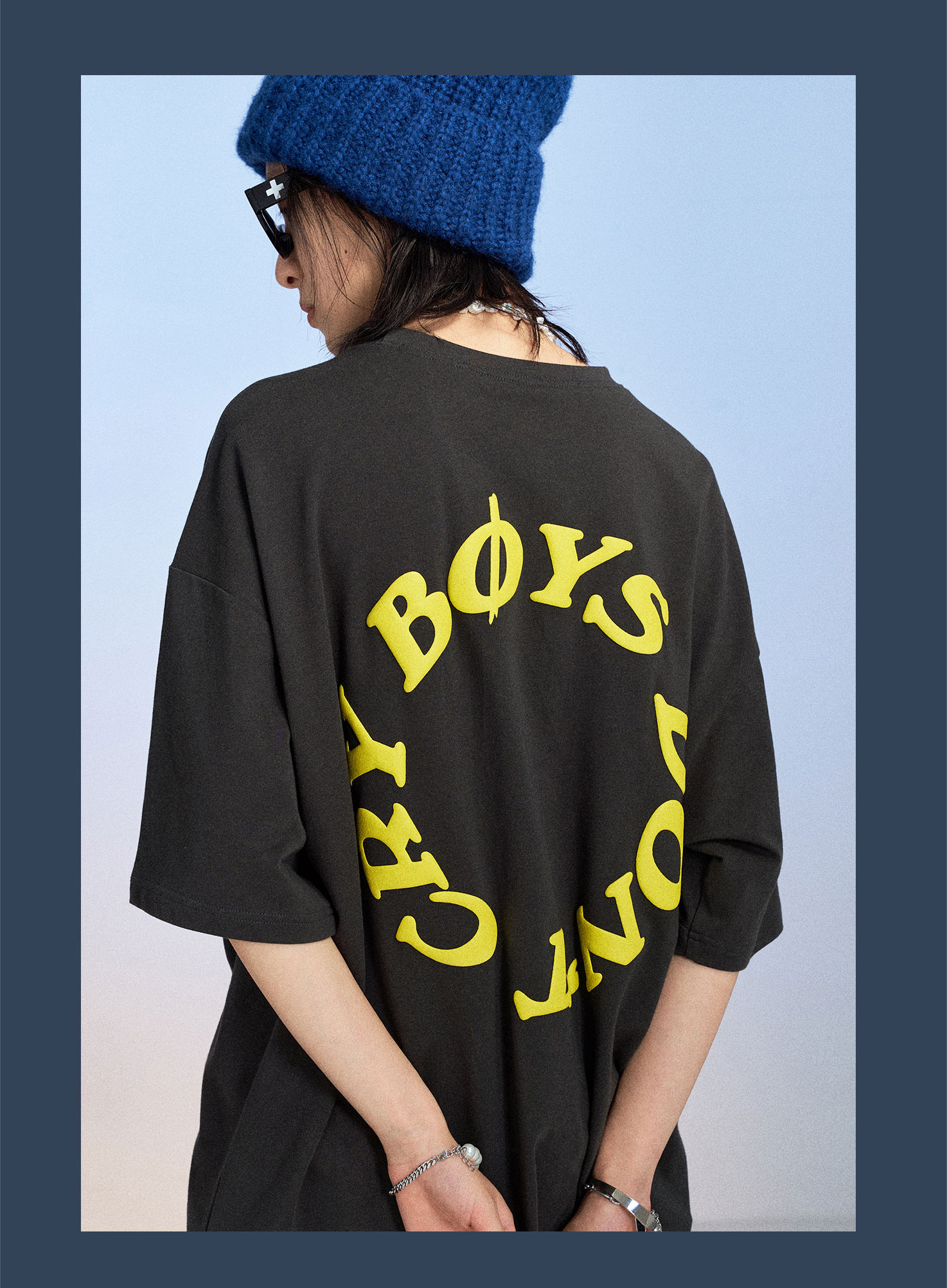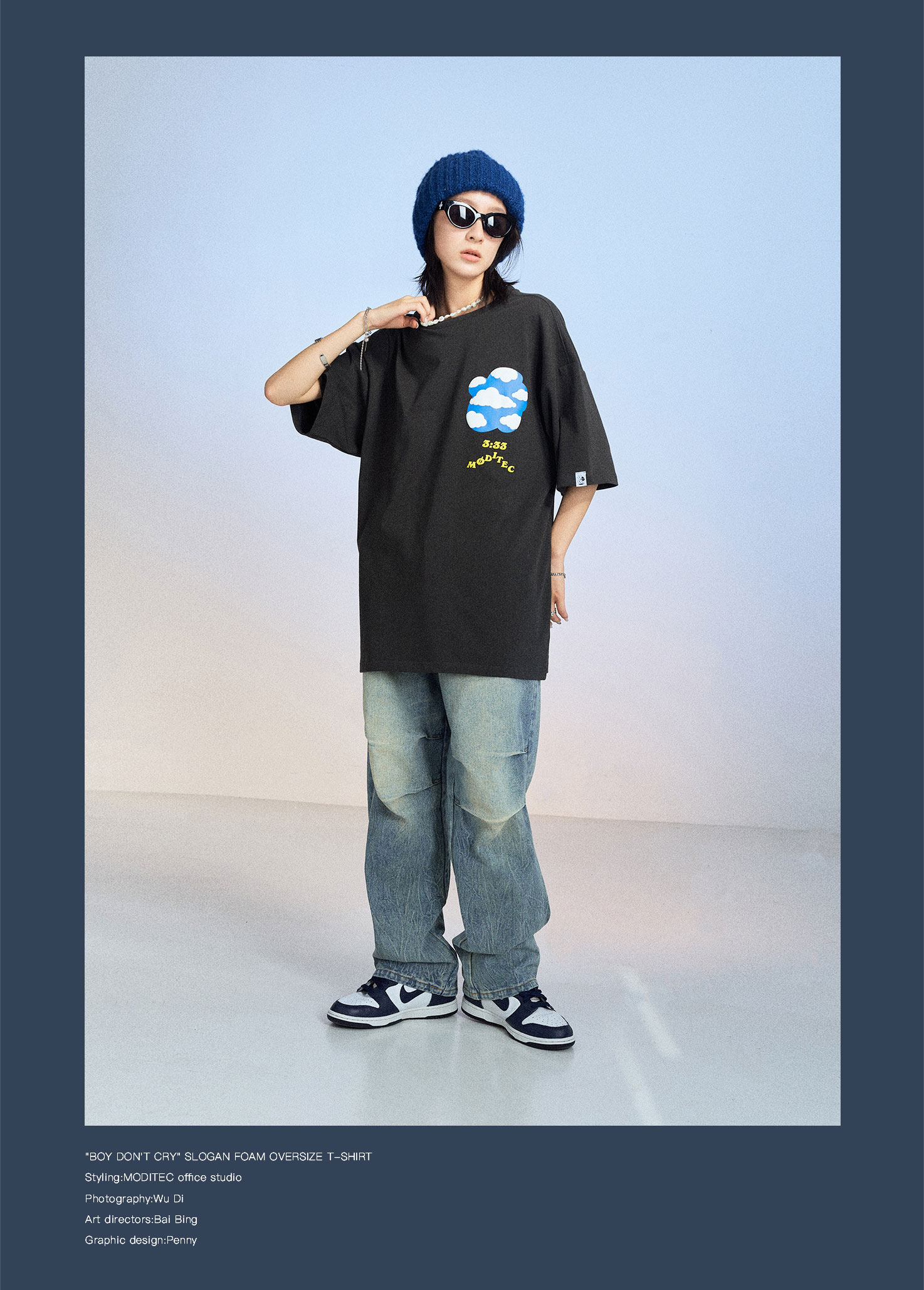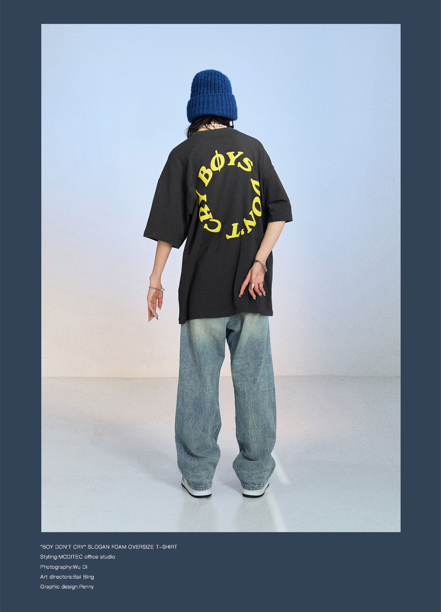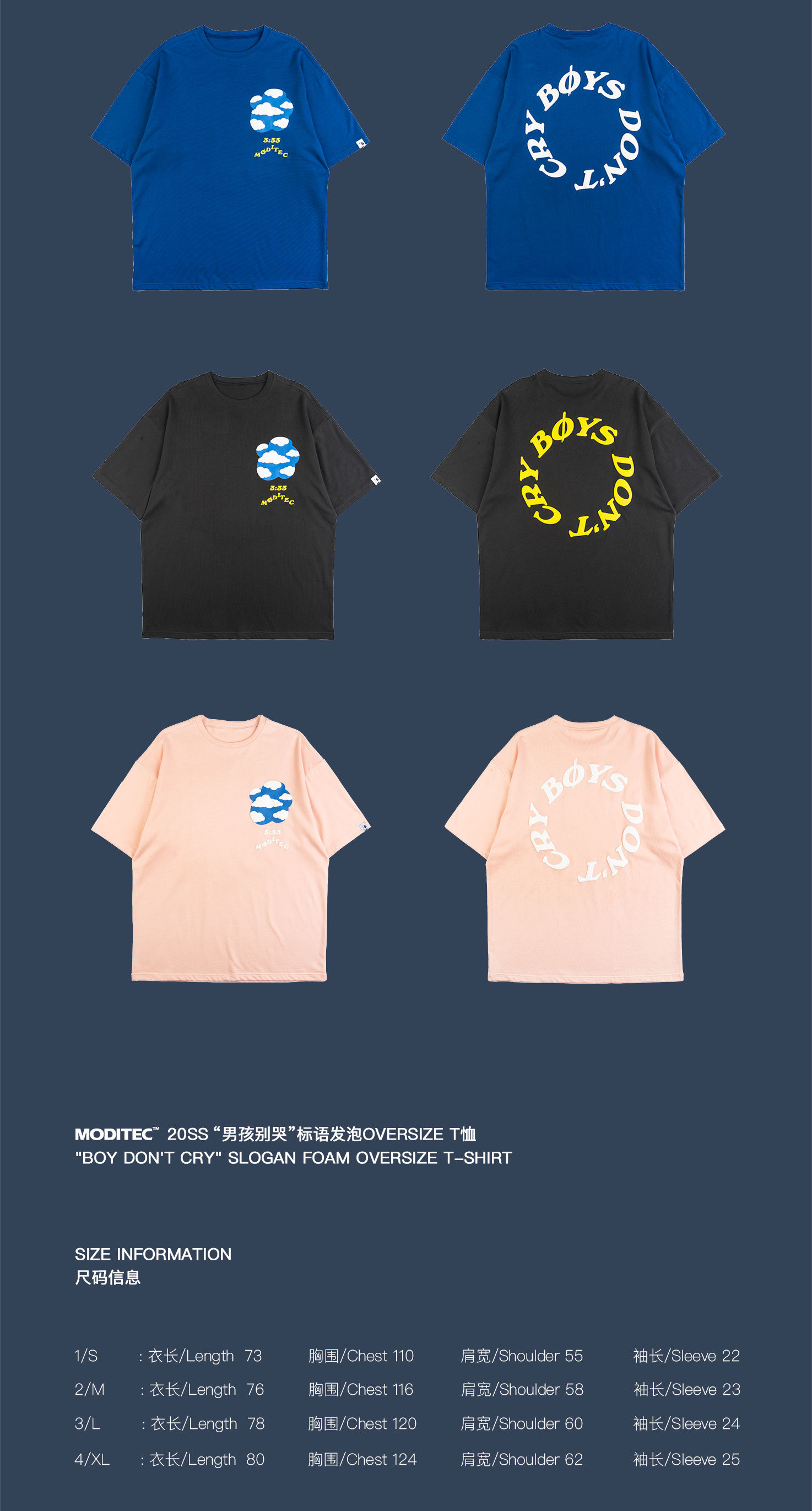 MODITEC 20SS “男孩别哭”标语发泡印花宽松短袖T恤休闲纯棉TEE