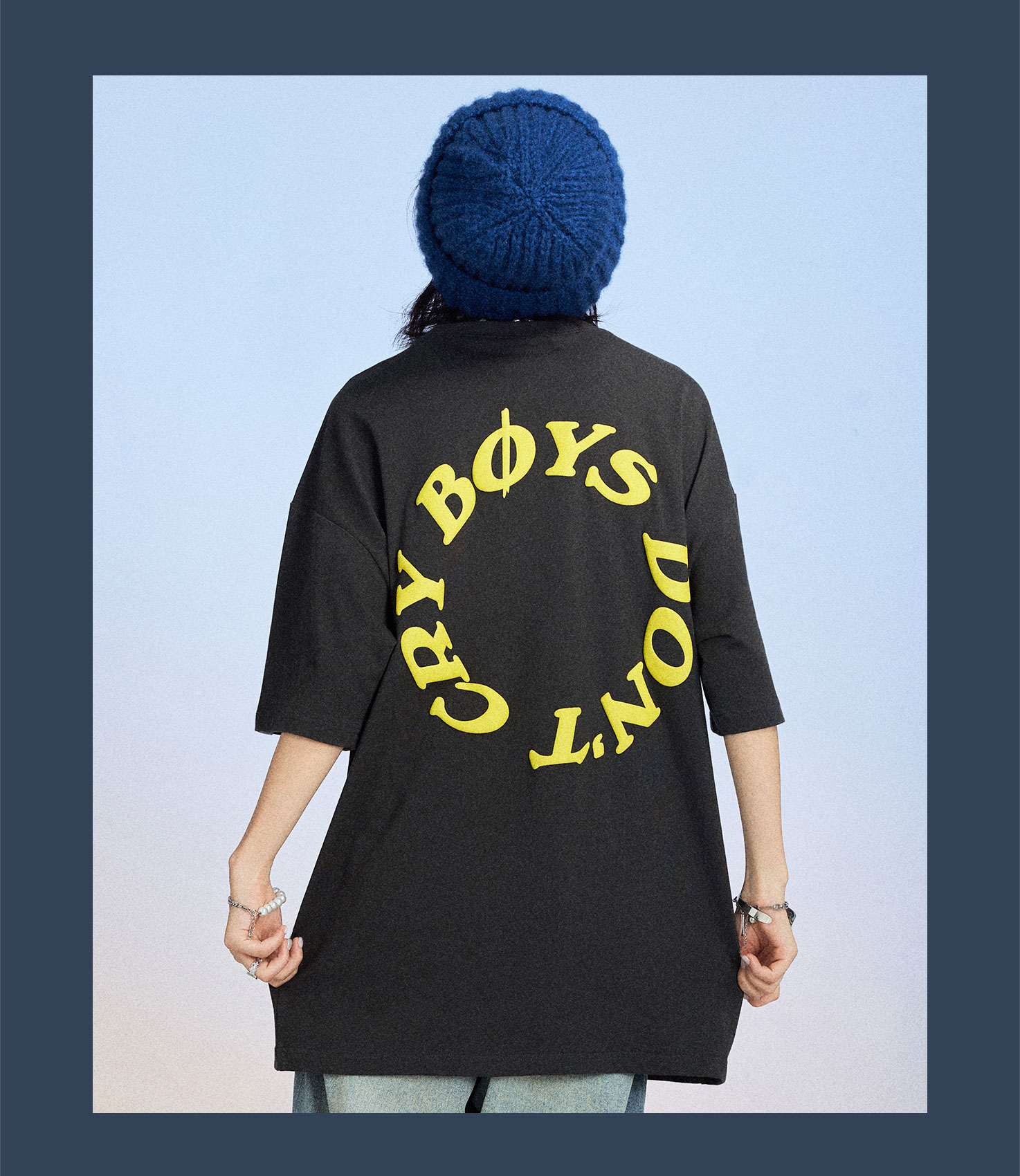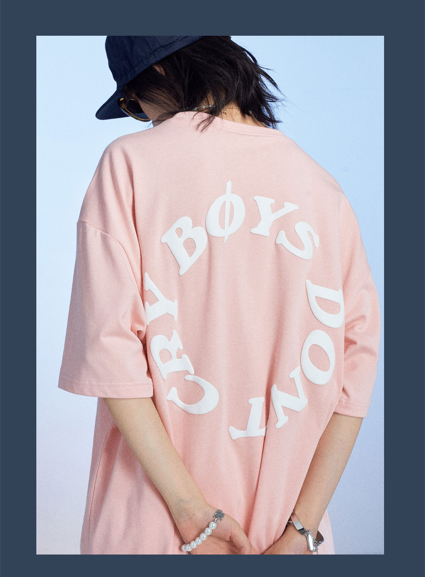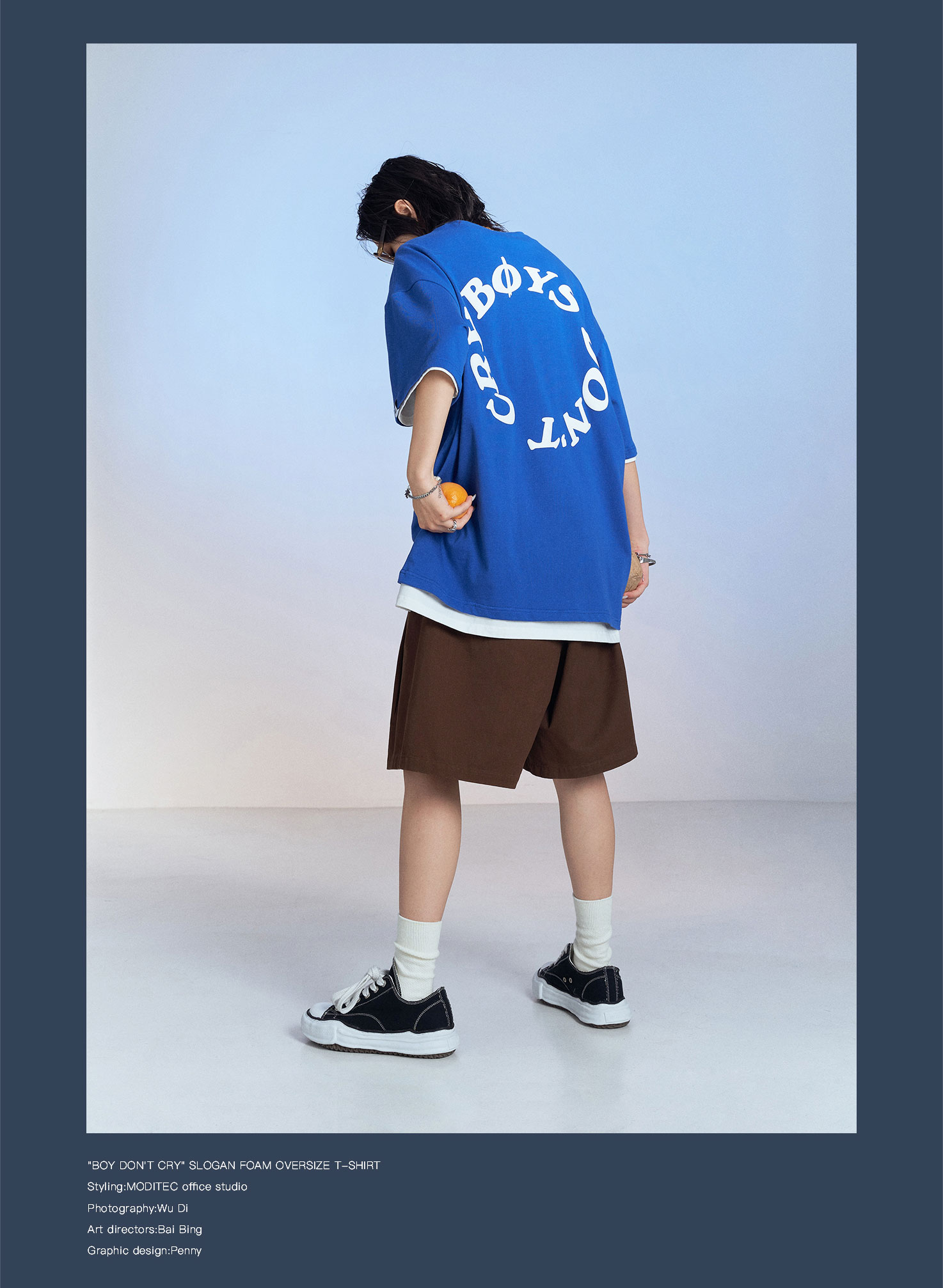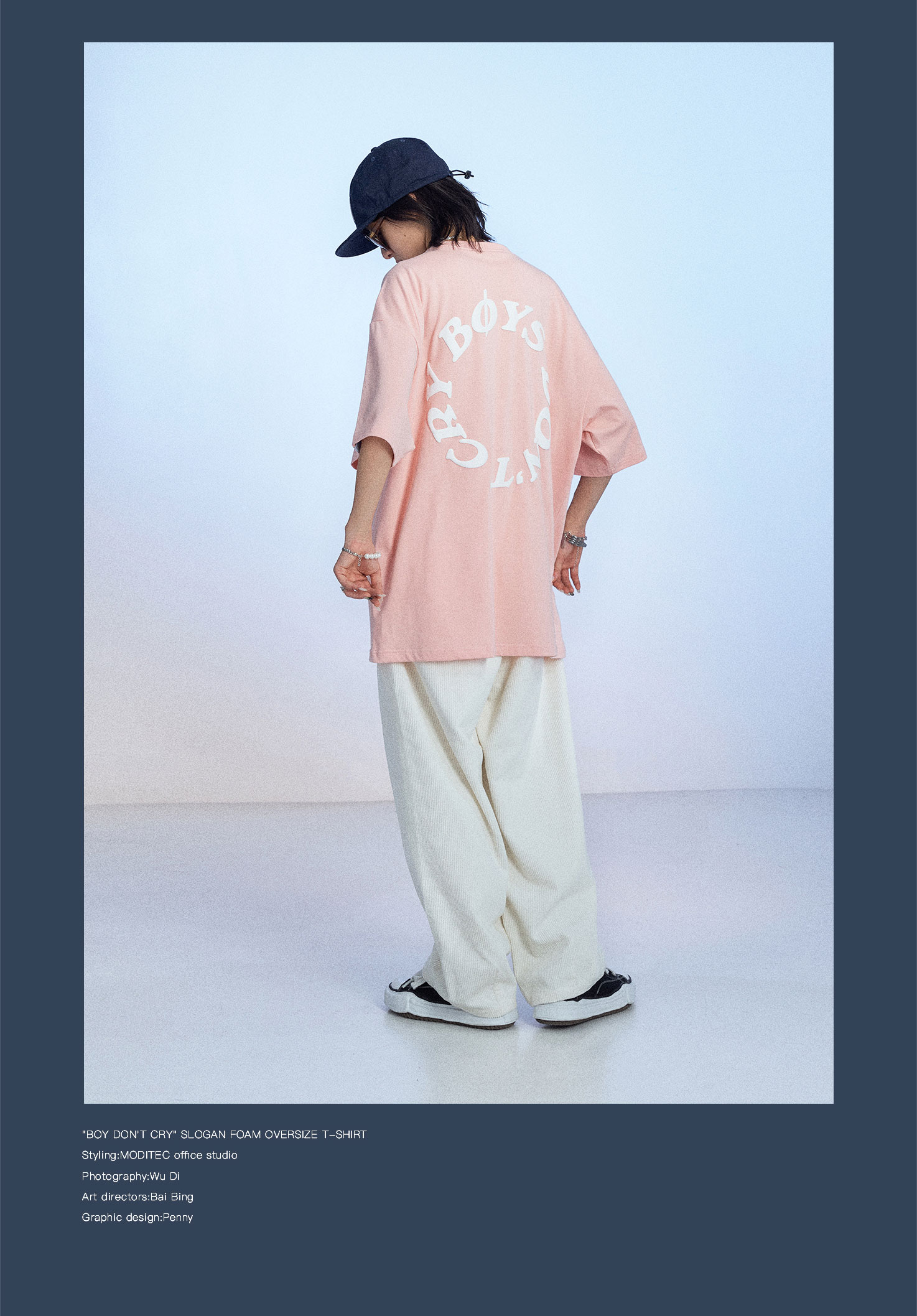 MODITEC 20SS “男孩别哭”标语发泡印花宽松短袖T恤休闲纯棉TEE