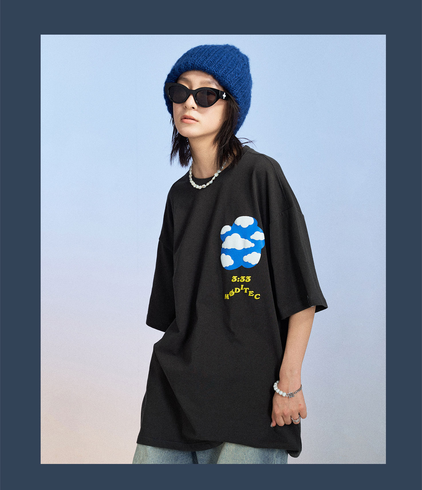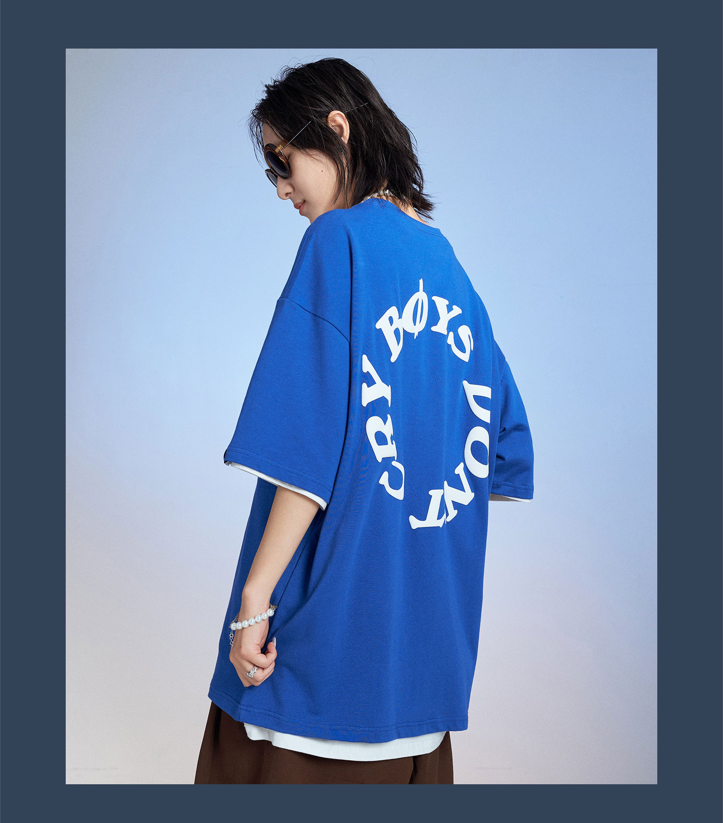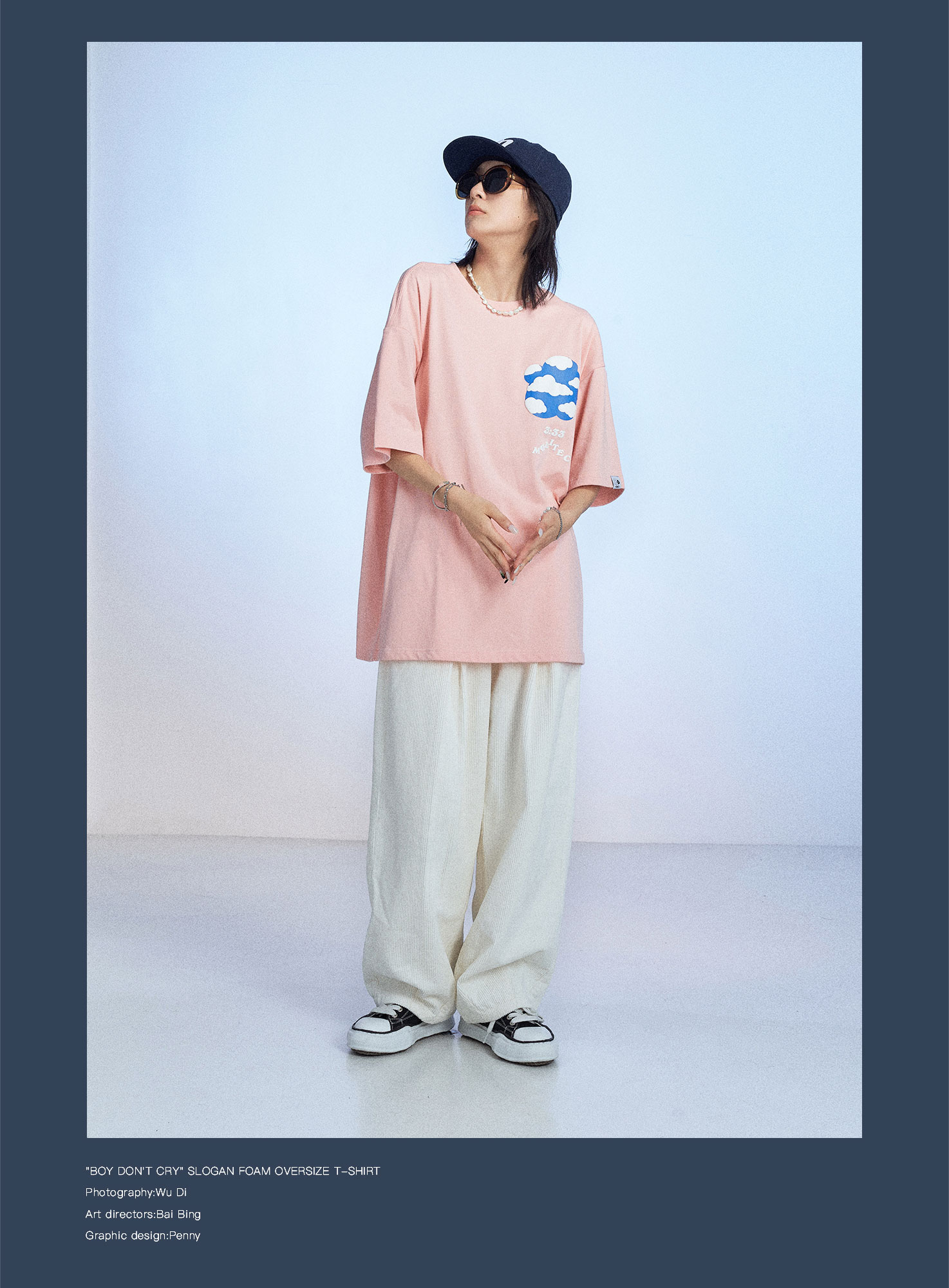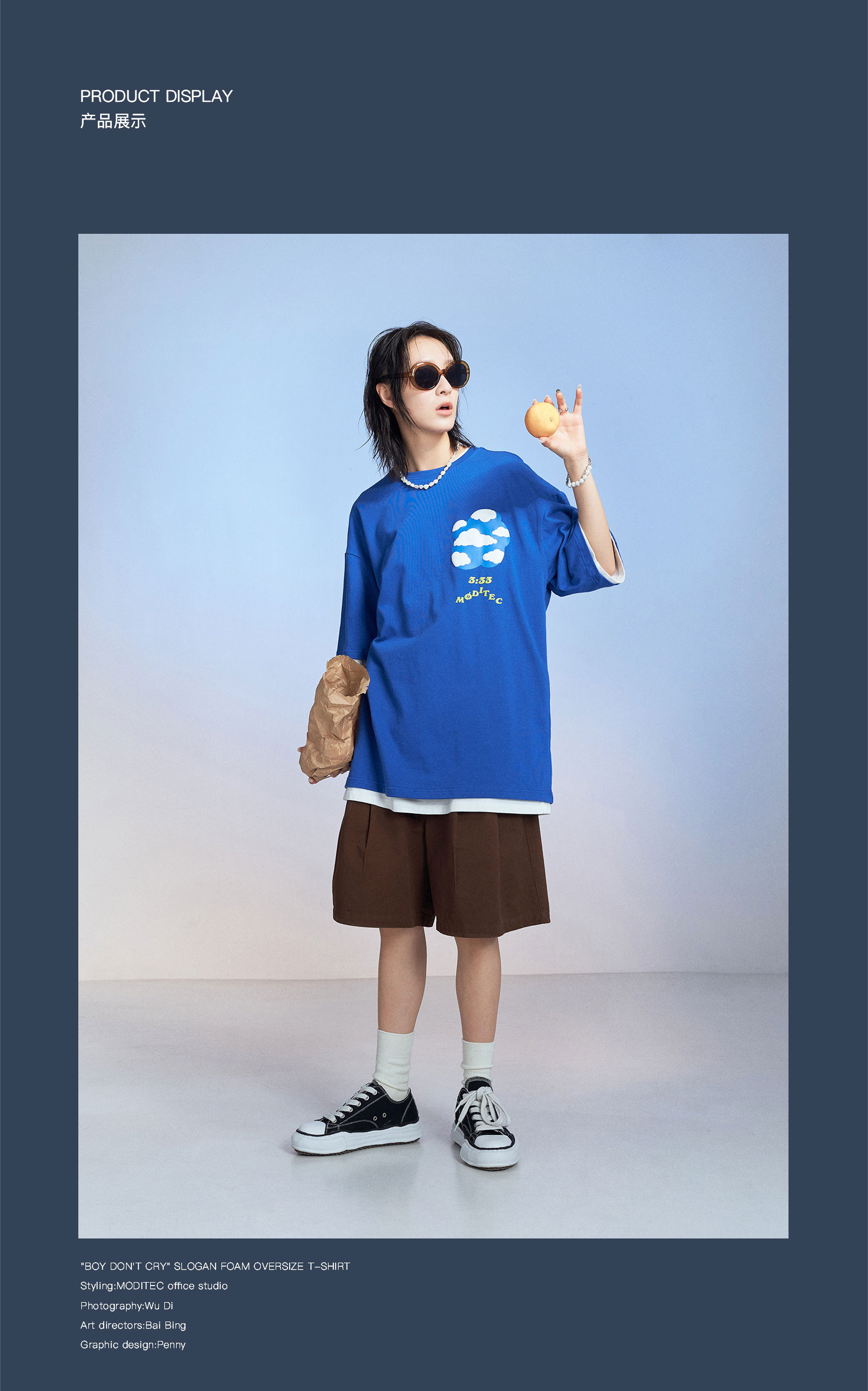 MODITEC 20SS “男孩别哭”标语发泡印花宽松短袖T恤休闲纯棉TEE