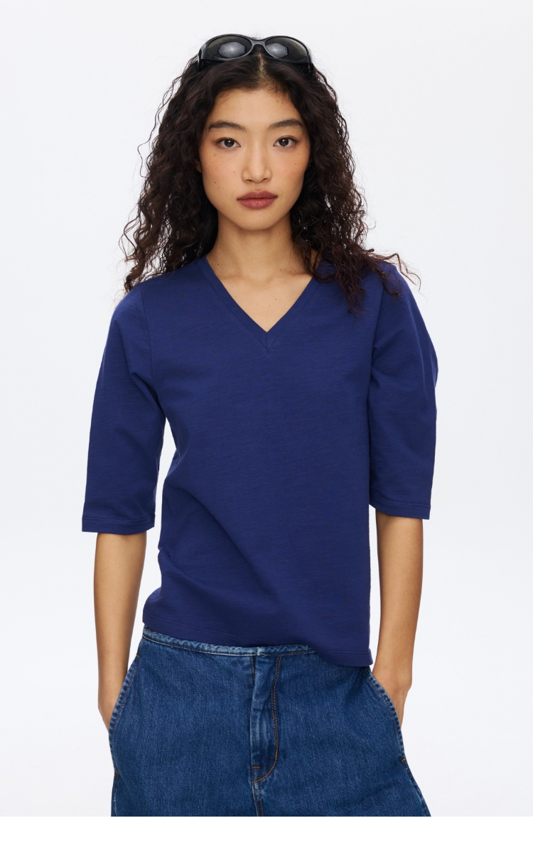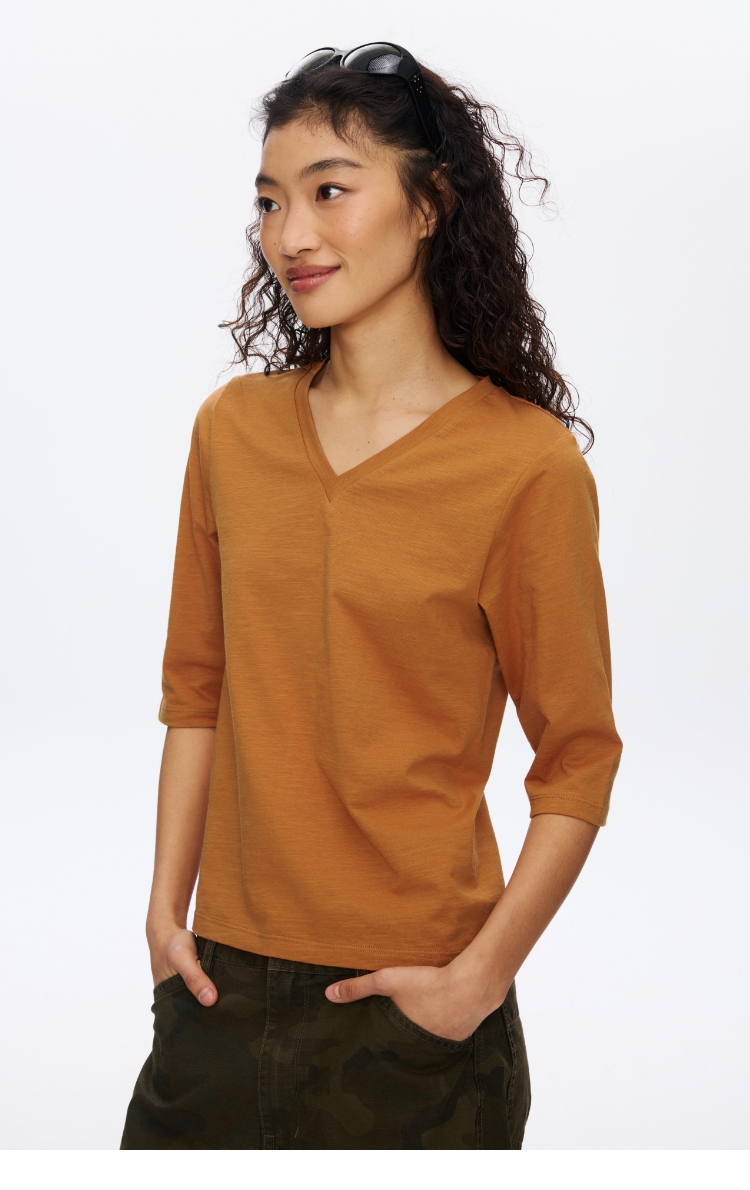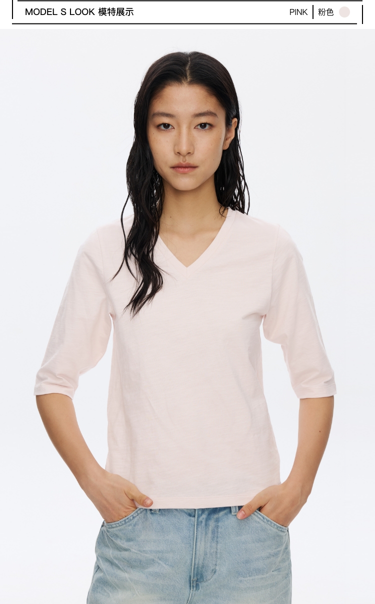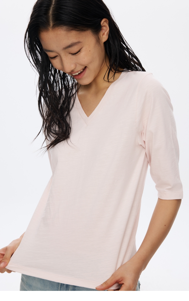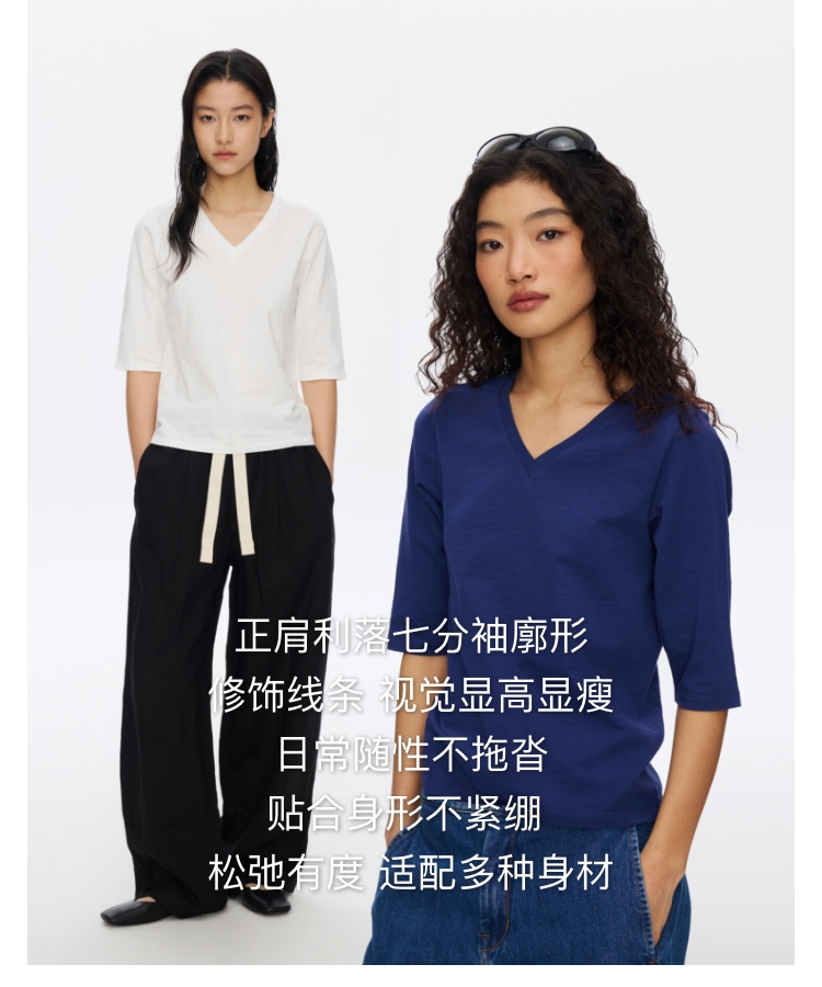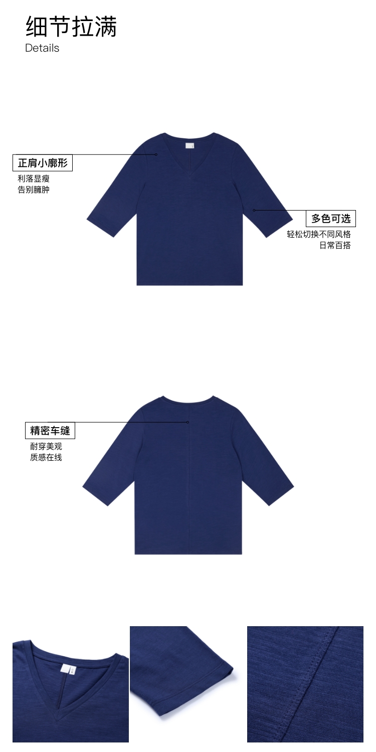 V领竹节七分袖T�