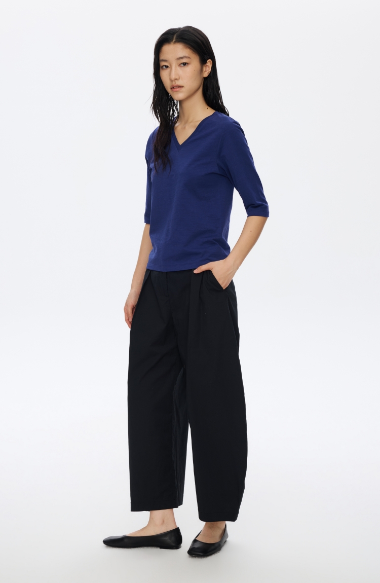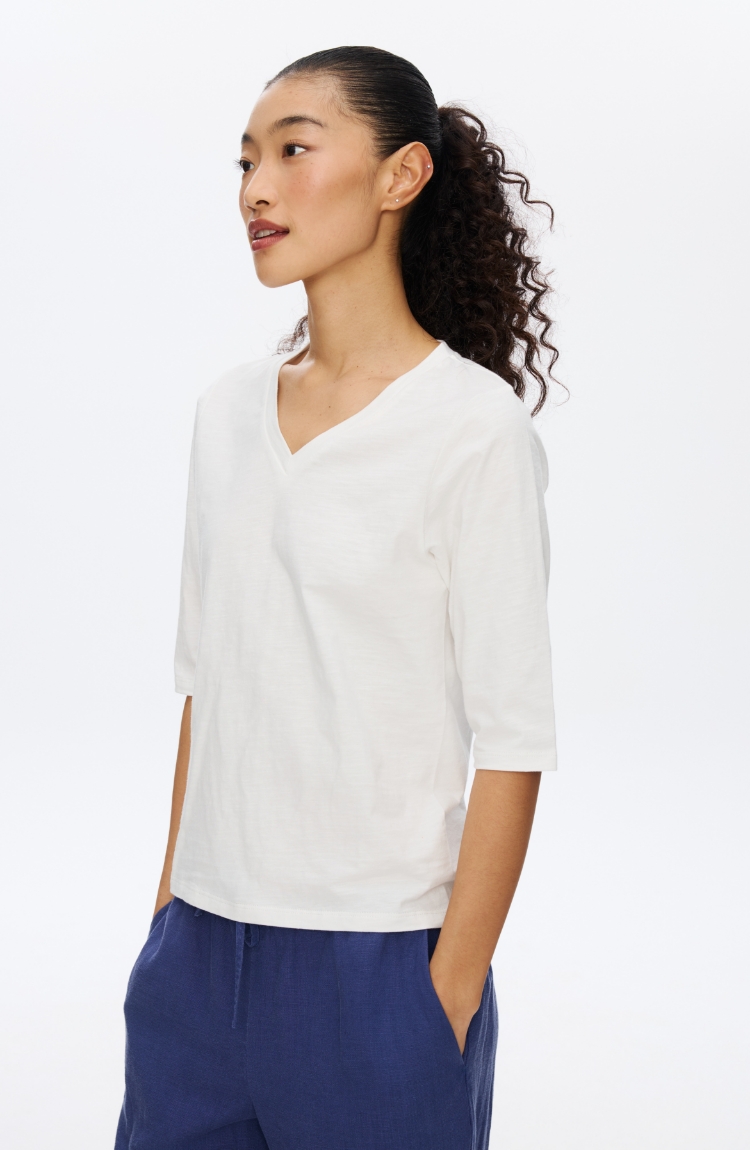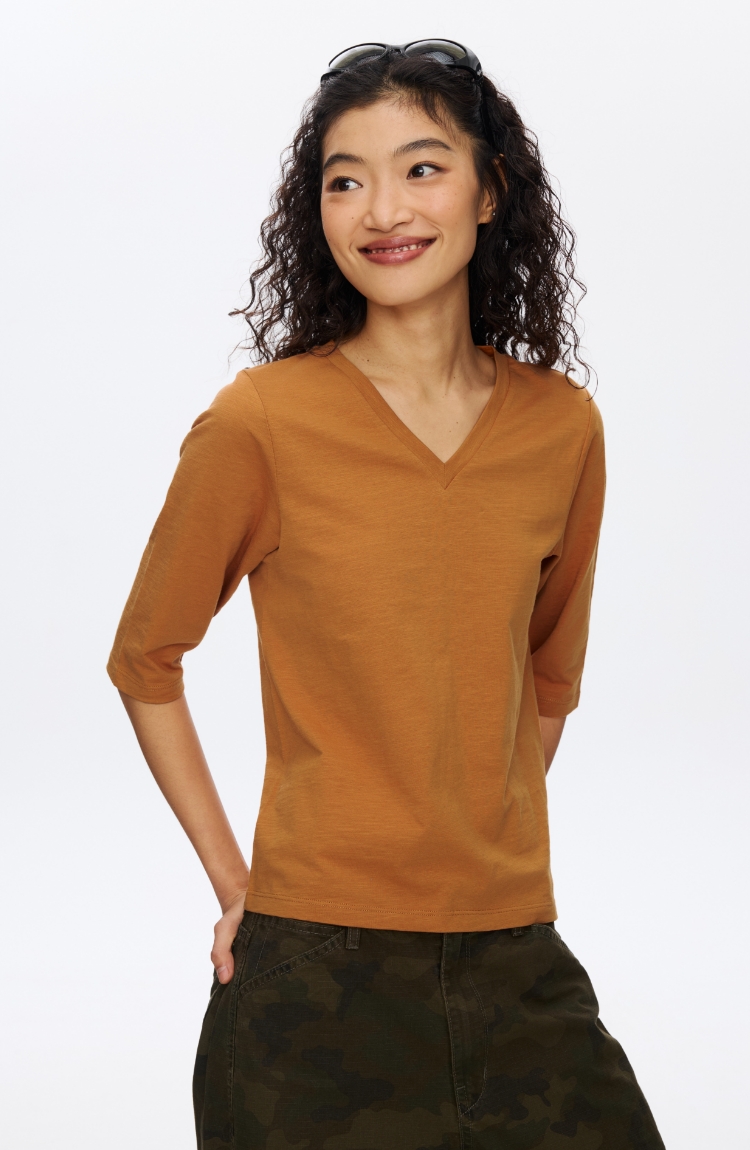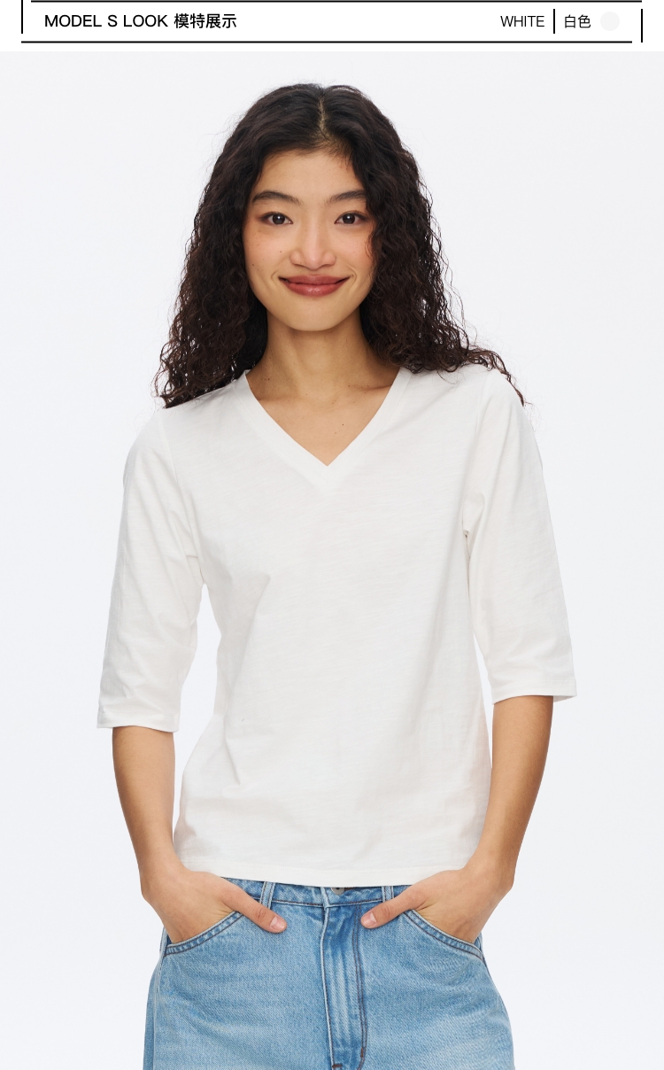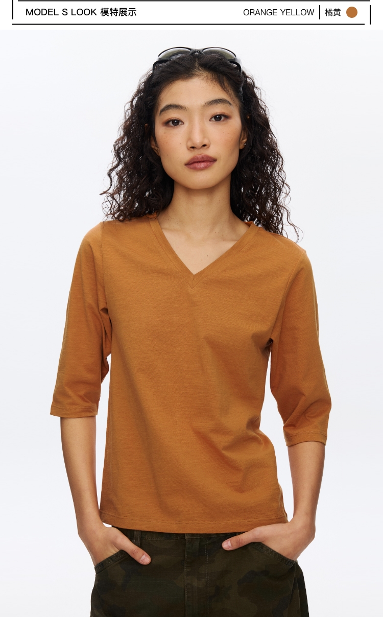V领竹节七分袖T�