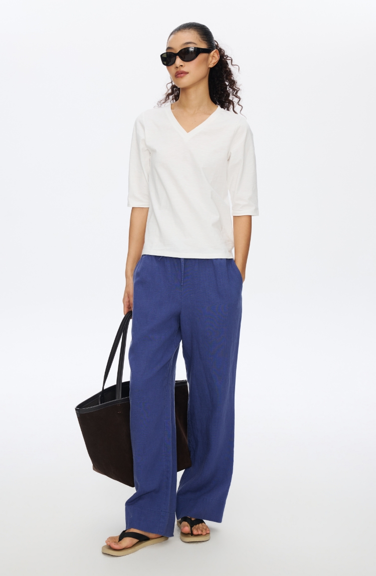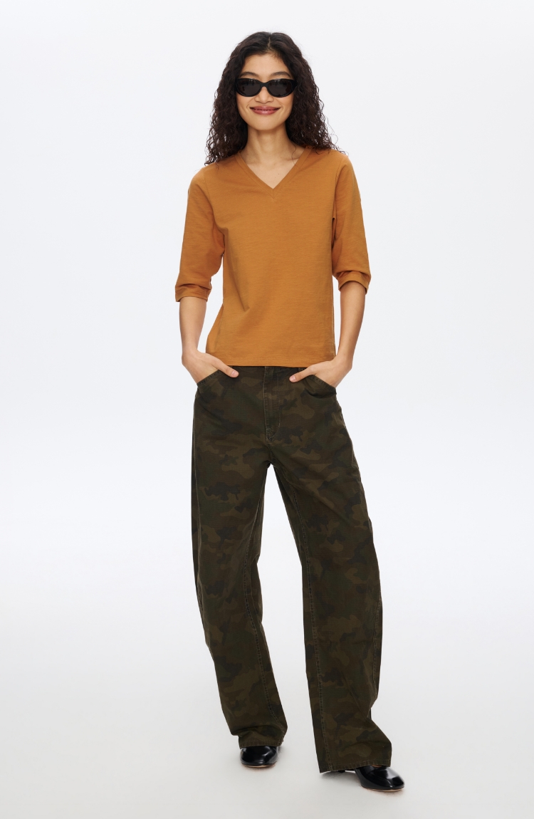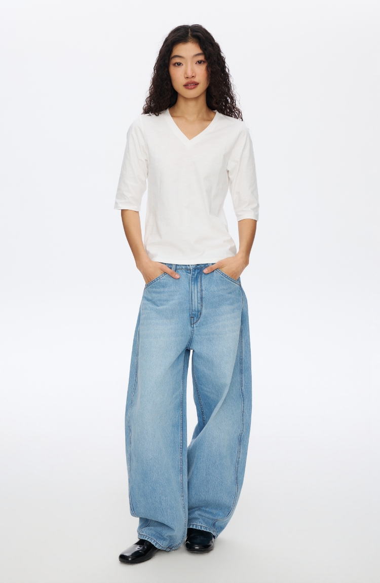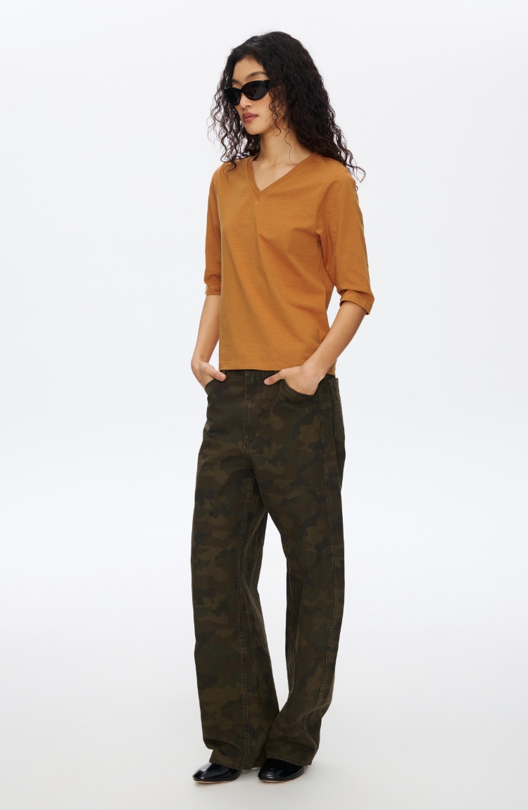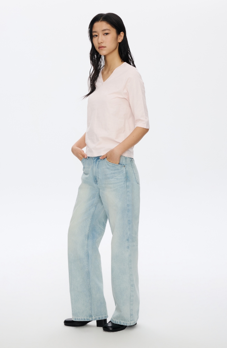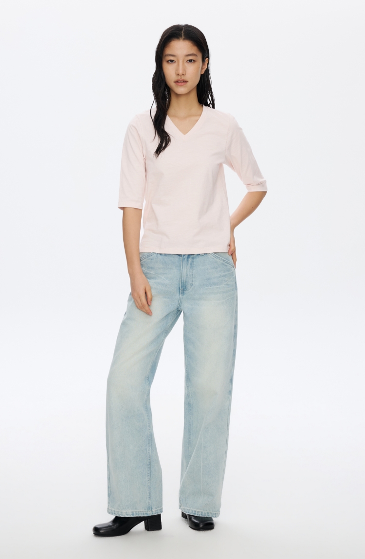 V领竹节七分袖T�
