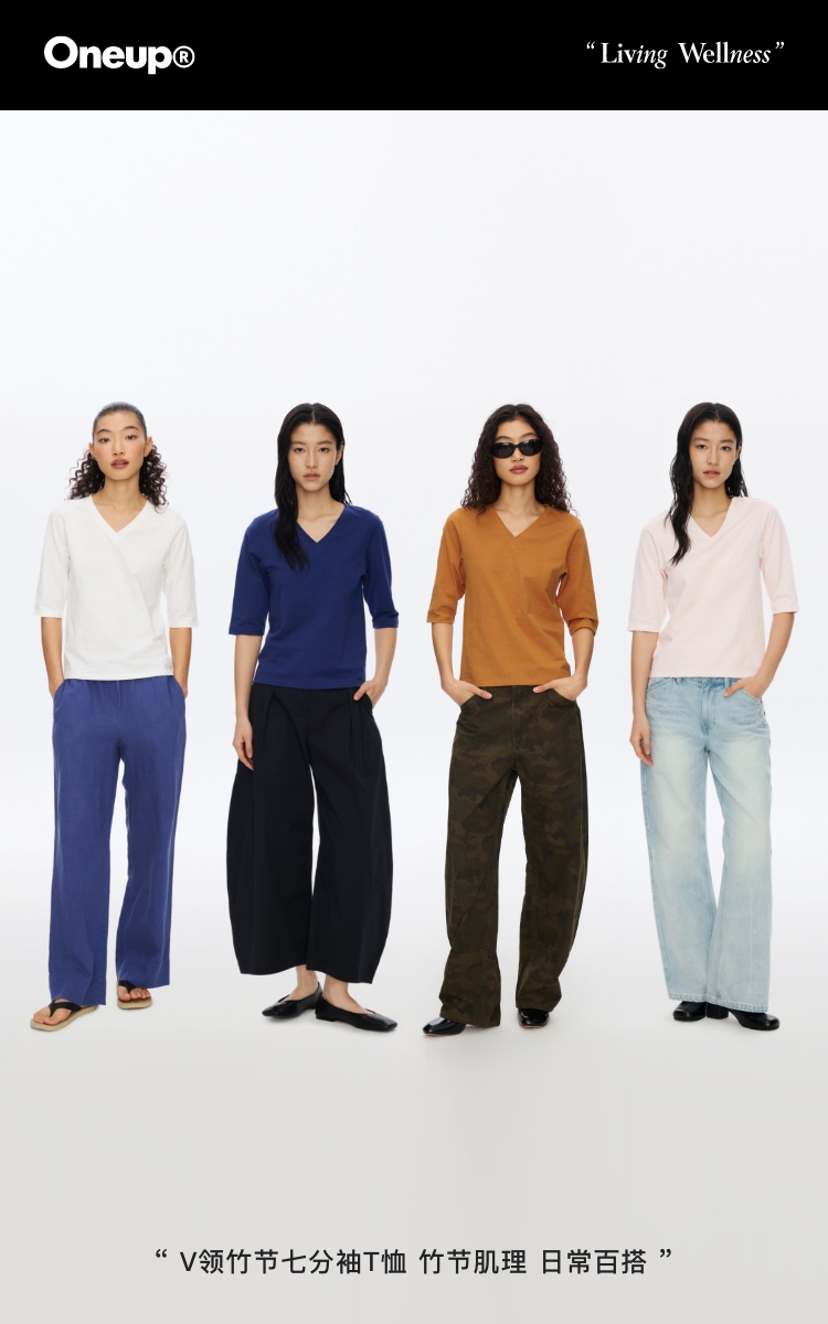 OneupV领竹节七分袖T恤
