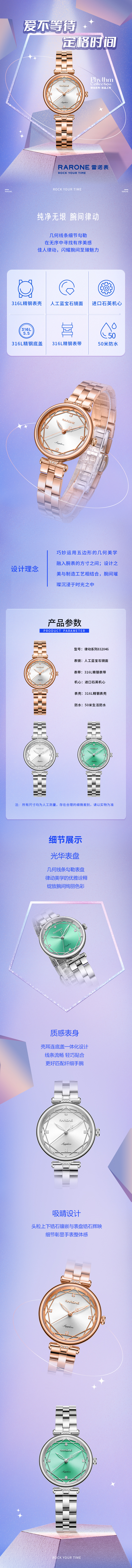 RARONE雷诺表高光系列石英对表82217
