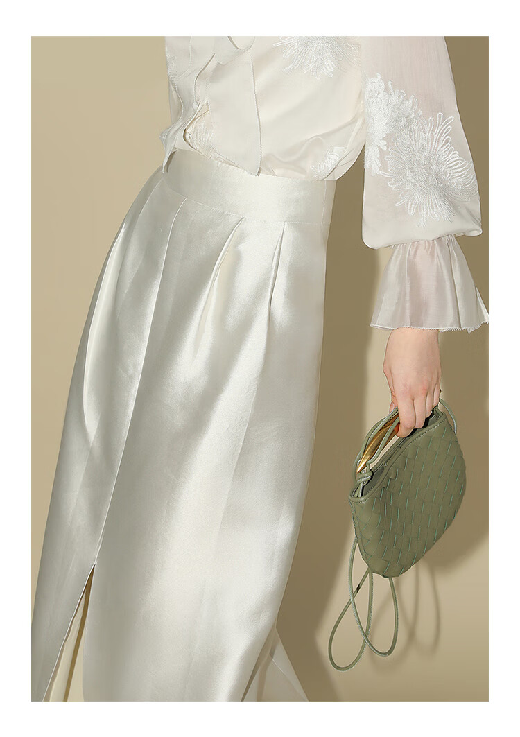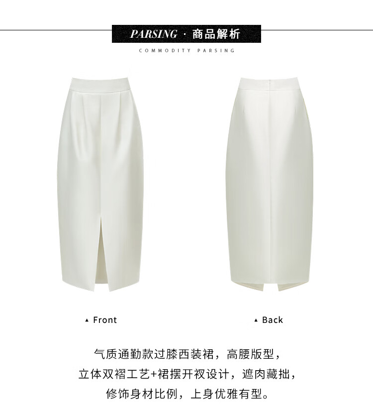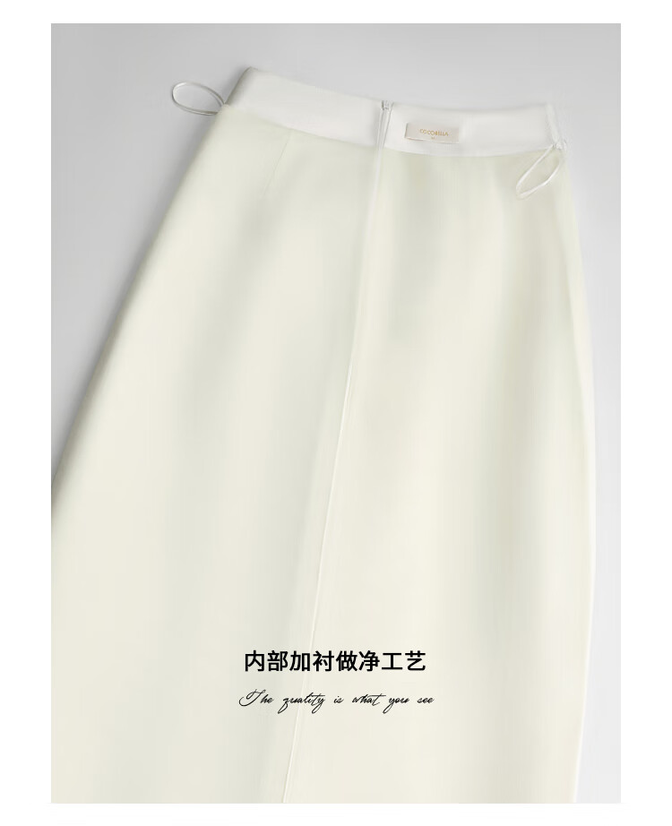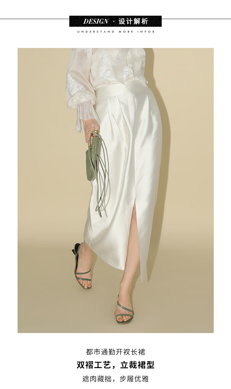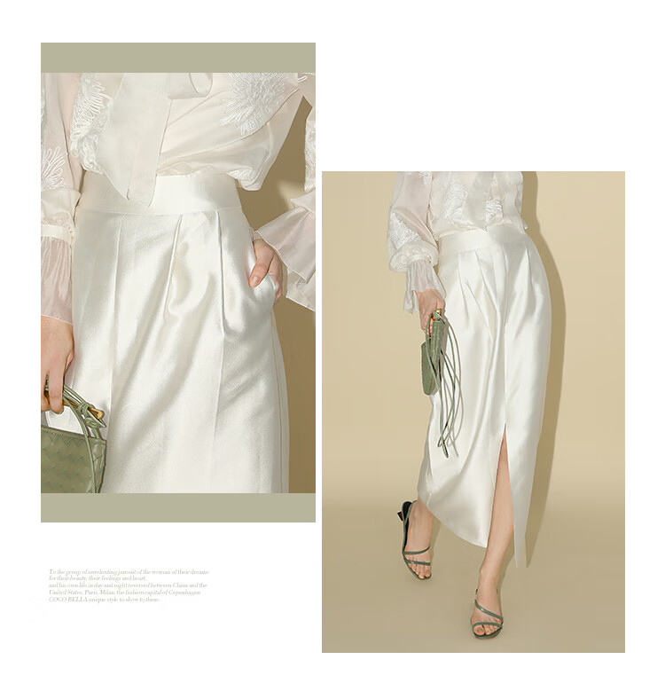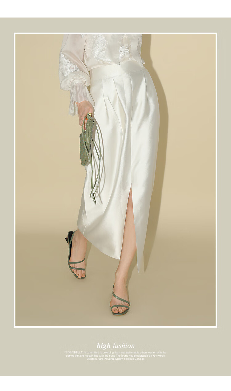 【有赞】COCOBELLA丝光质感前开叉半身裙女夏优雅通勤半身西装裙HS542