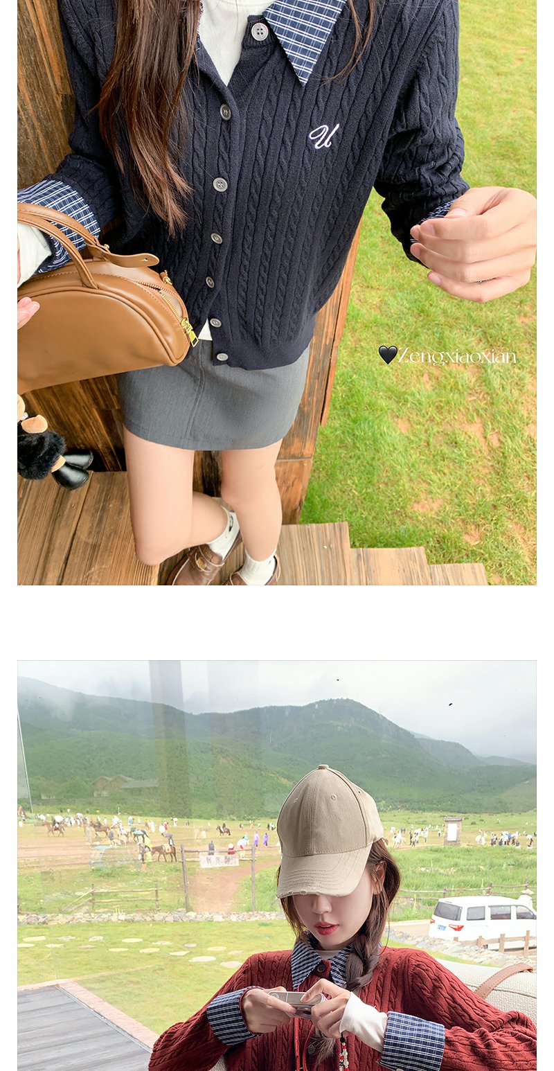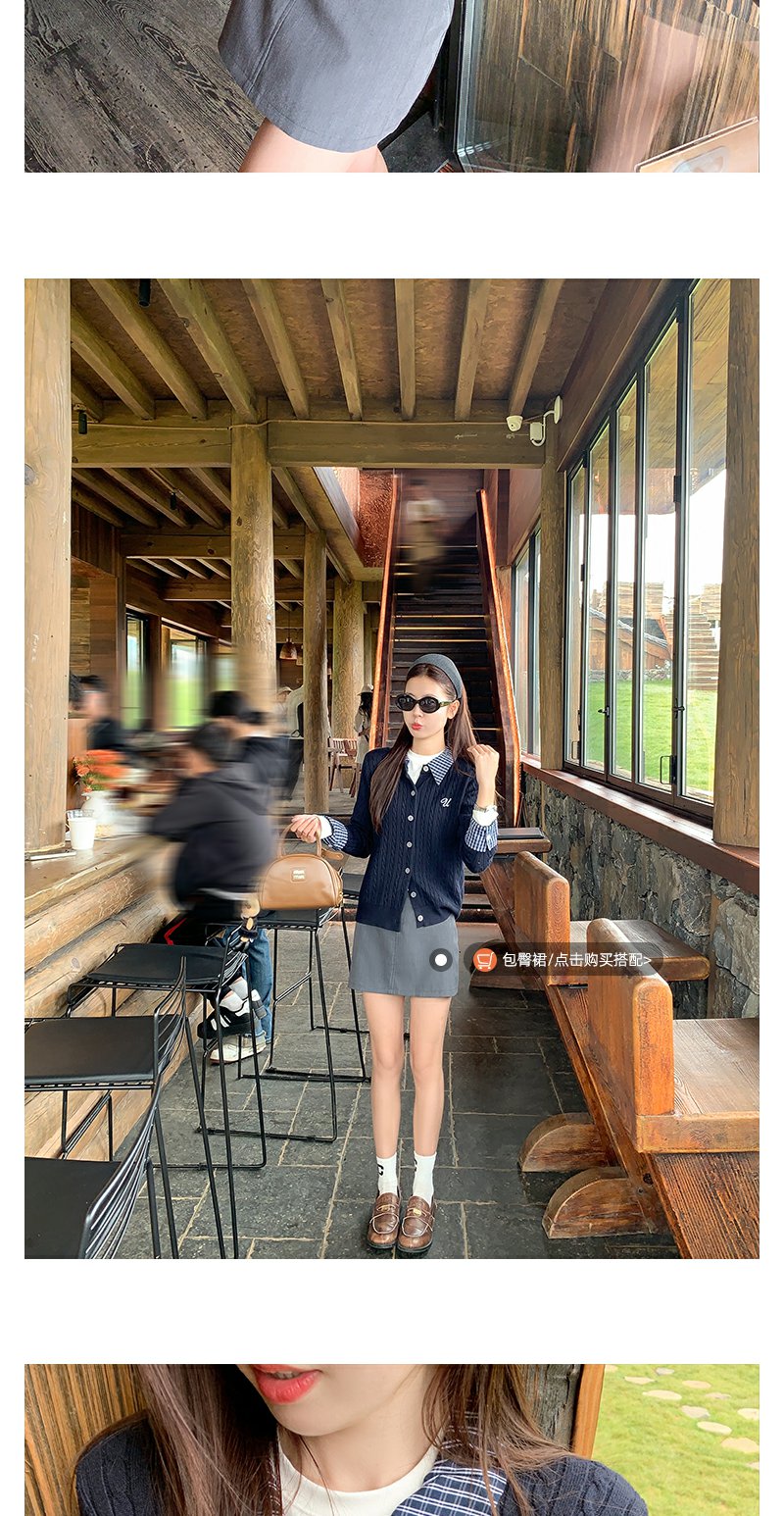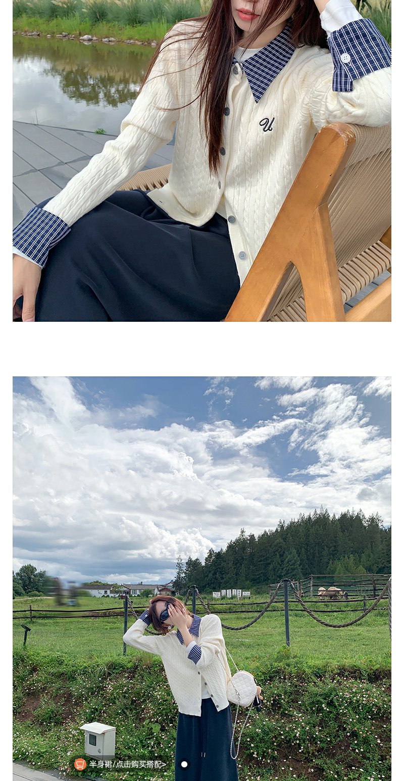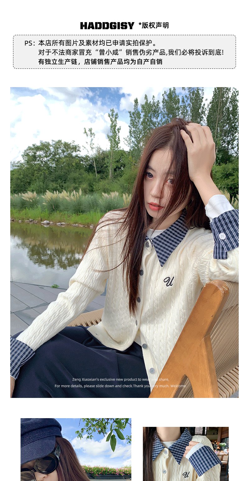 <曾小咸推荐>撞色格子polo领假两件针织衫!