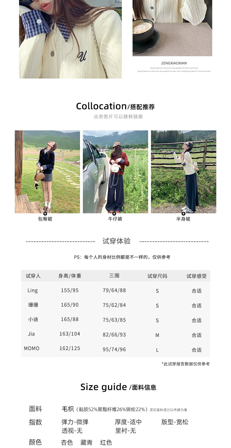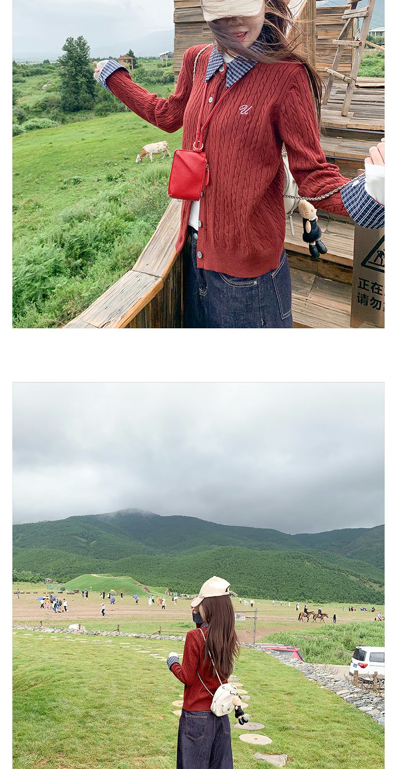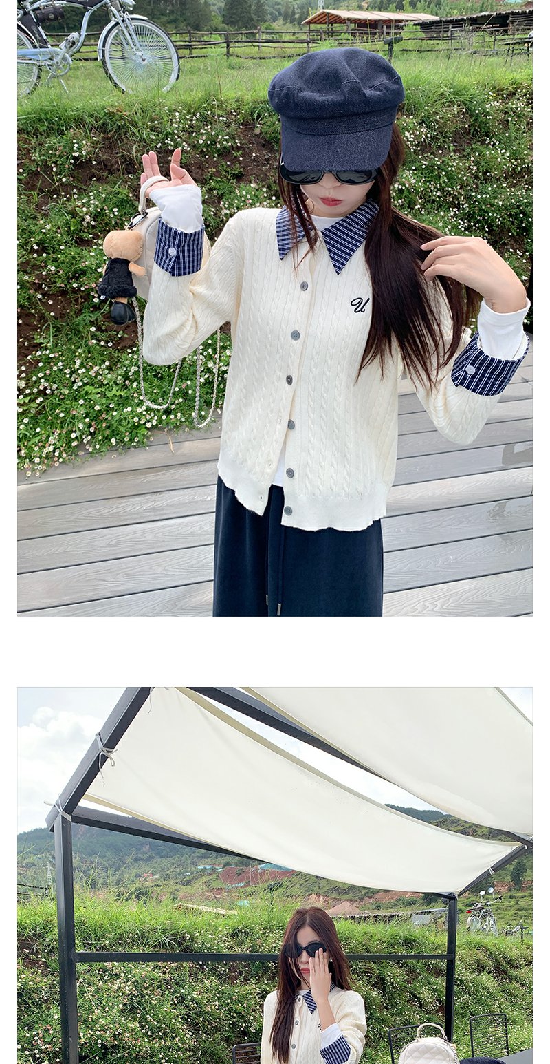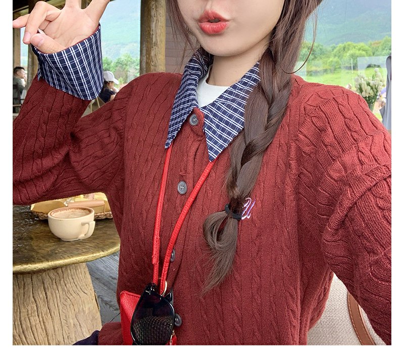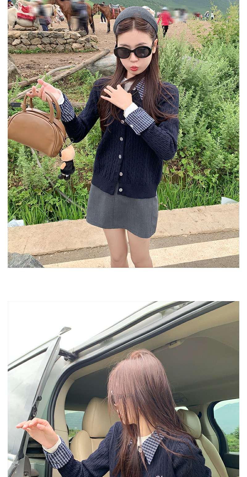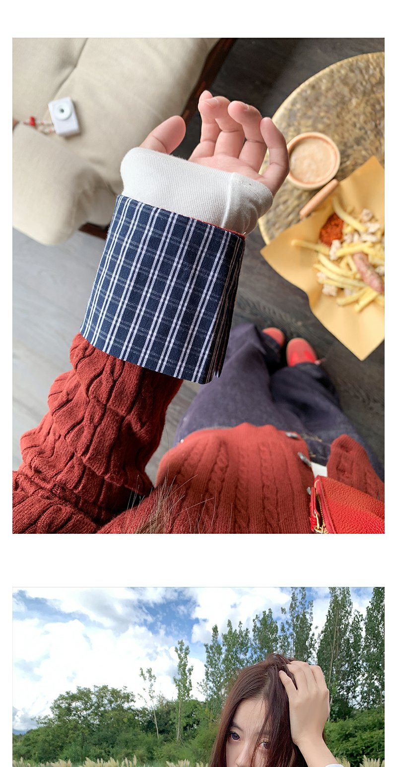 <曾小咸推荐>撞色格子polo领假两件针织衫!