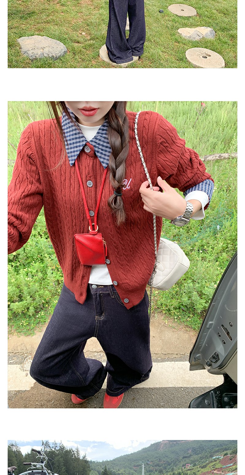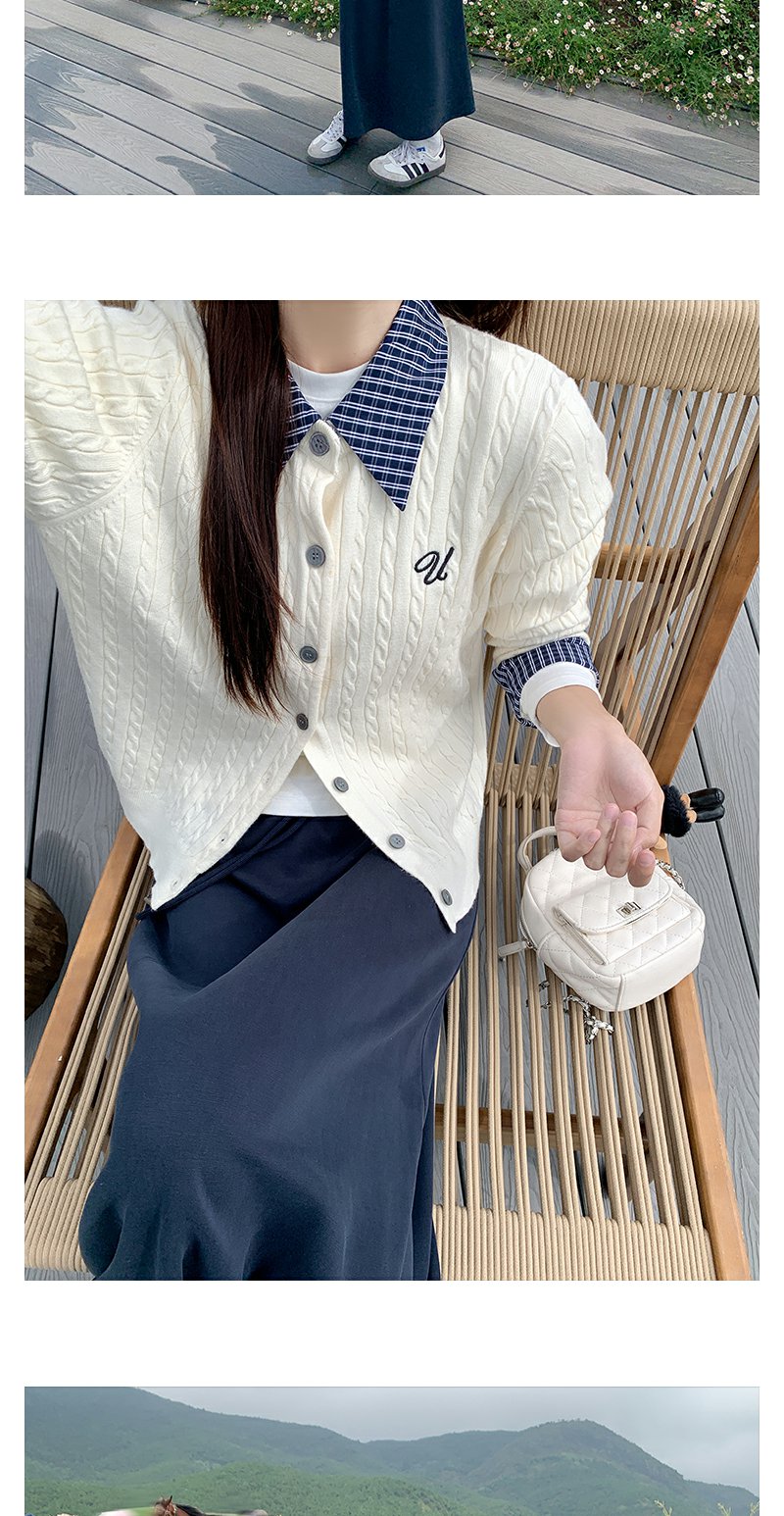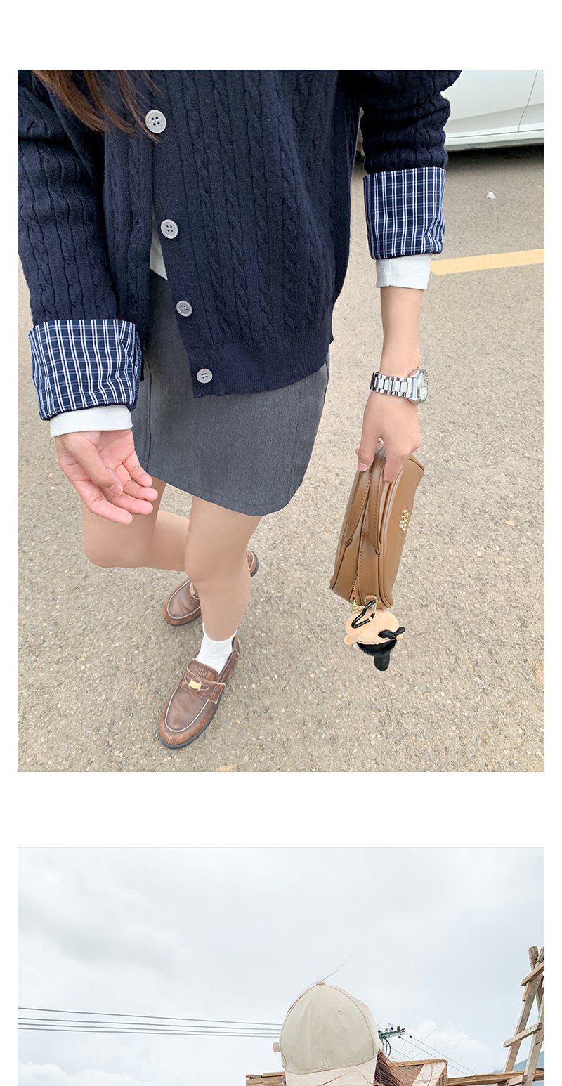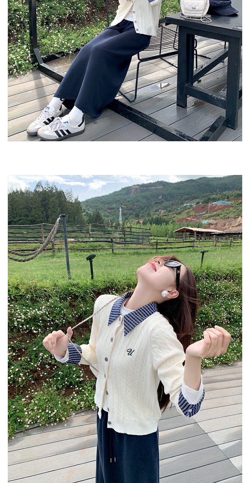 <曾小咸推荐>撞色格子polo领假两件针织衫!