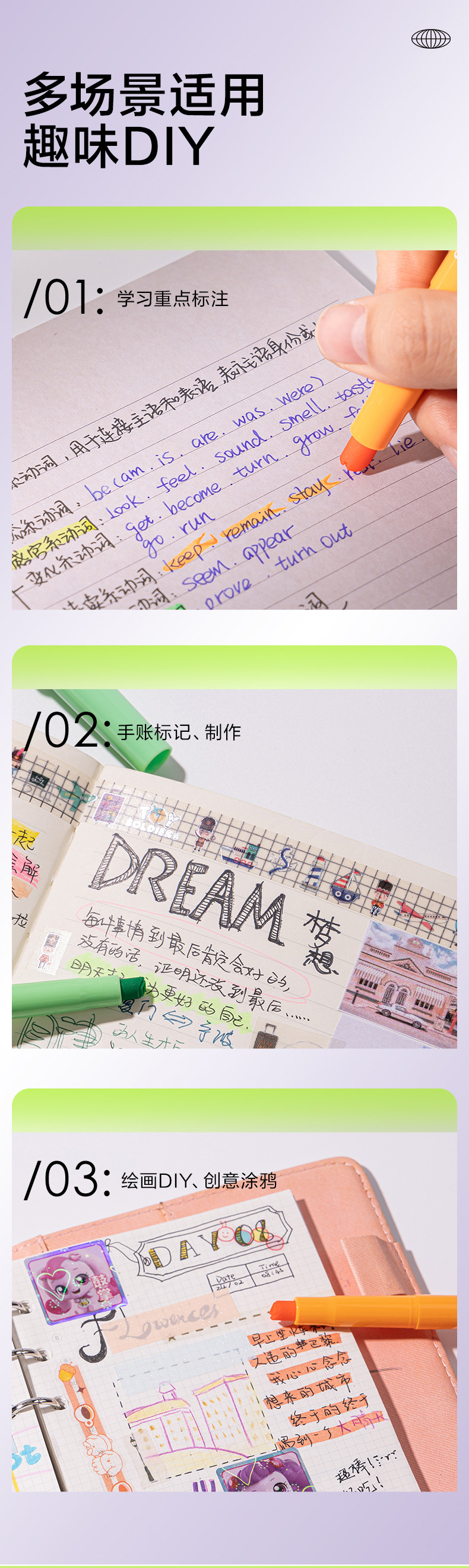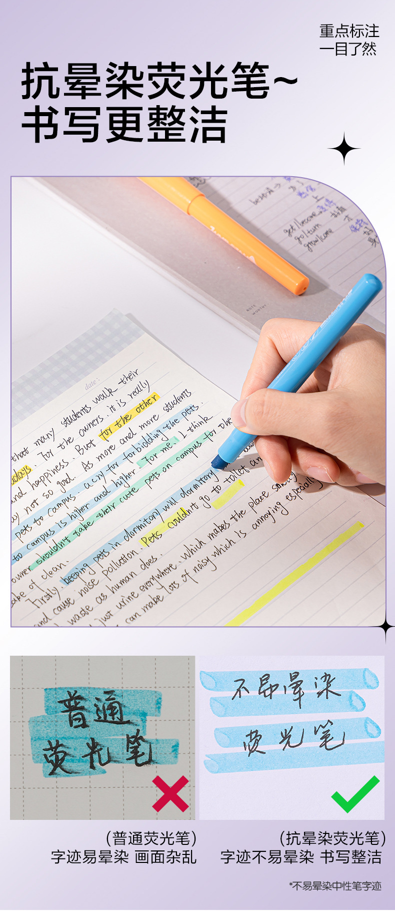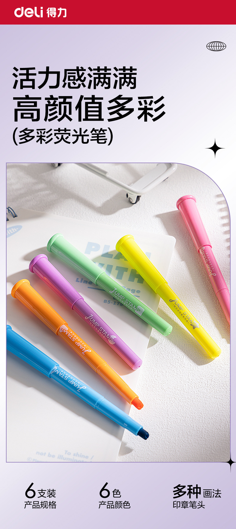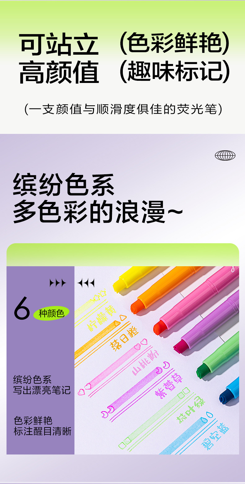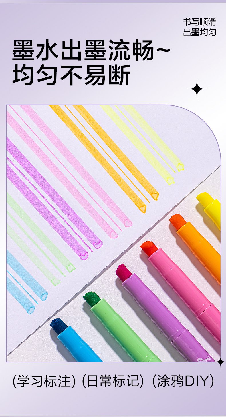 得力SK450印印酱 得力抗晕染荧光笔,缤纷色系让学习更高效,字迹清晰不晕染,学生党必备!
