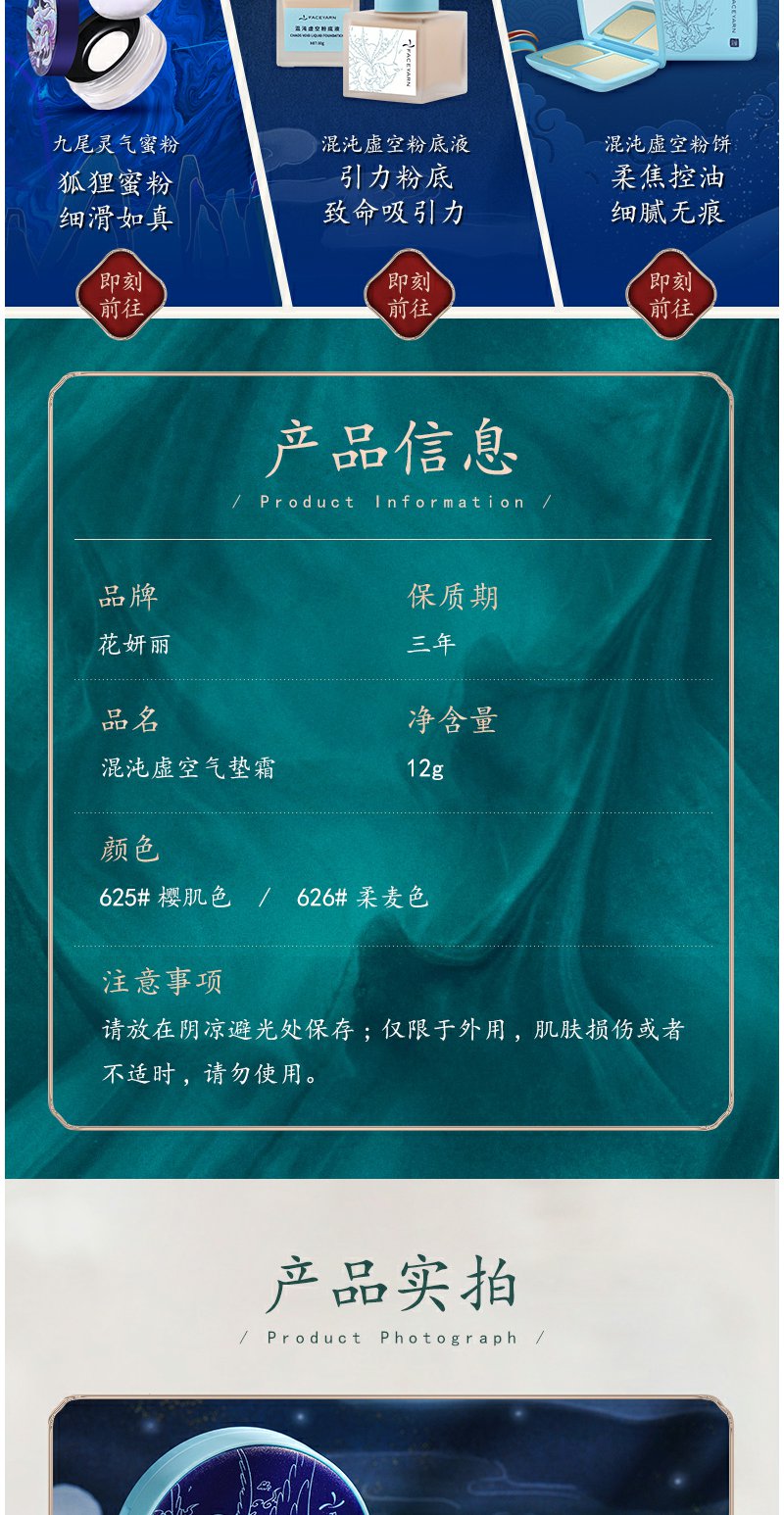 【线下专用】花妍丽混沌虚空气垫霜遮瑕保湿控油持久粉底不脱妆cc霜