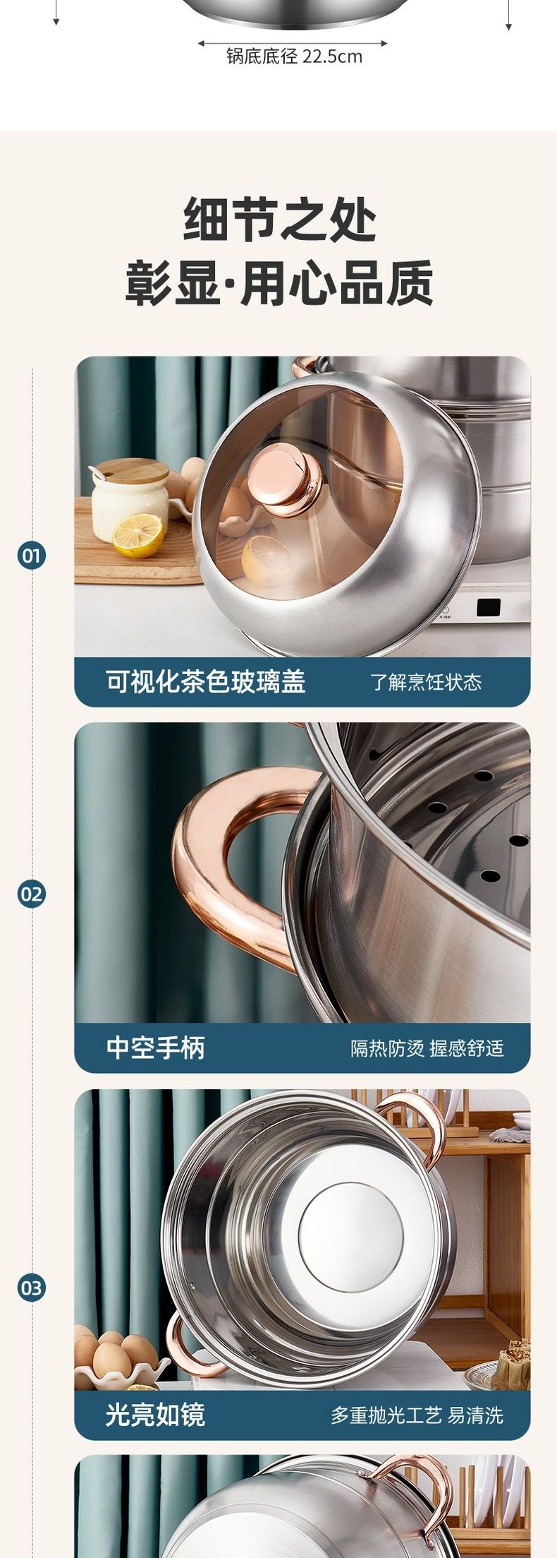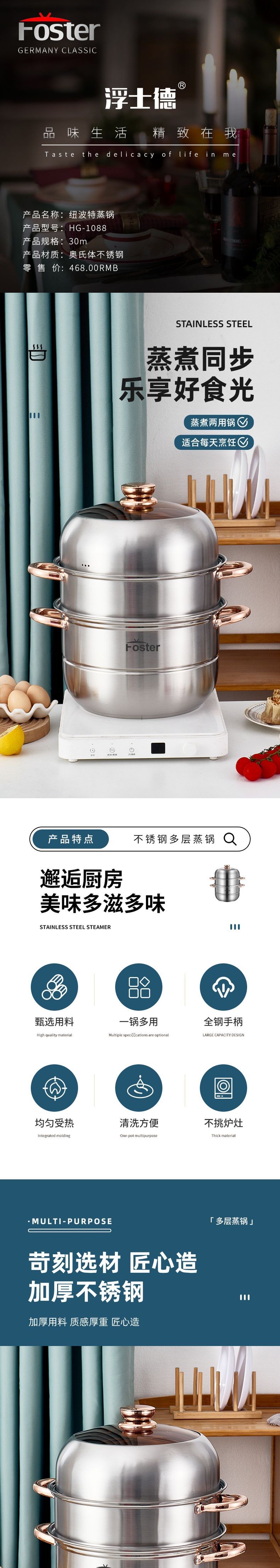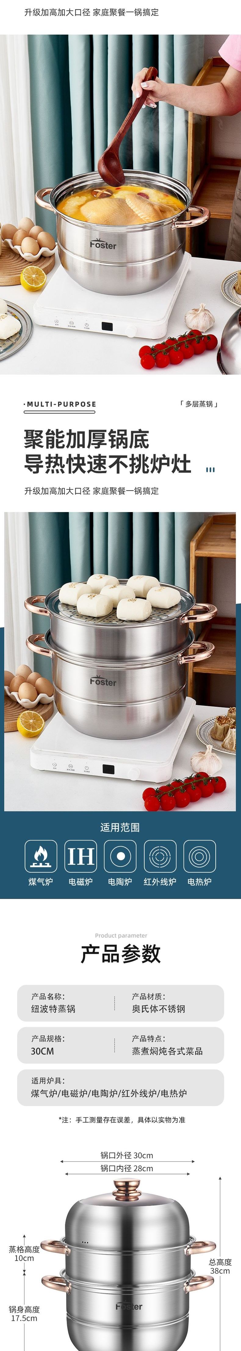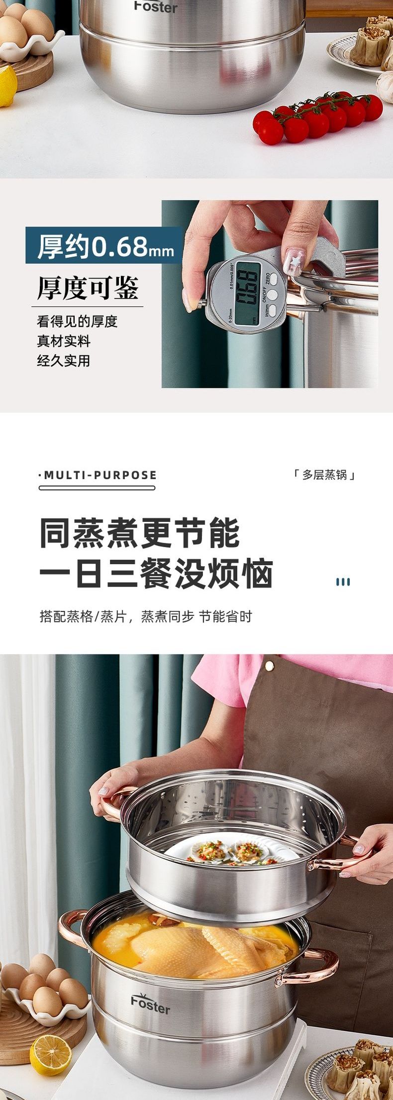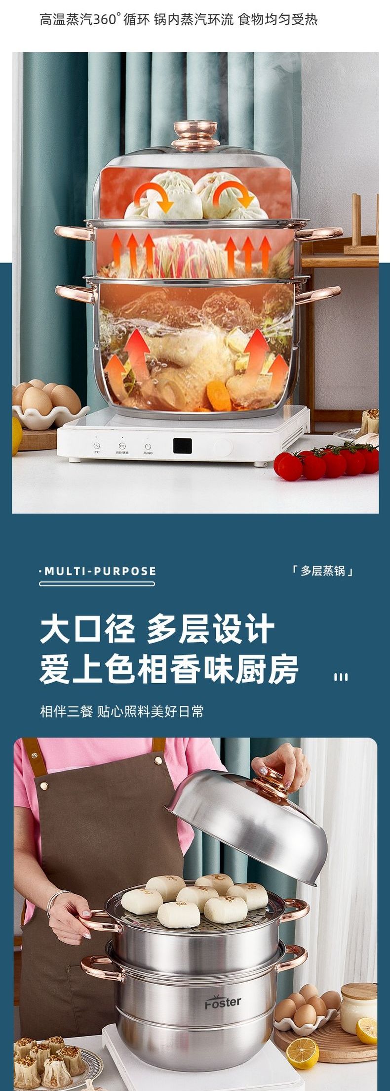 浮士德 纽波特蒸锅 HG-1088 加厚三层蒸锅大容量馒头锅