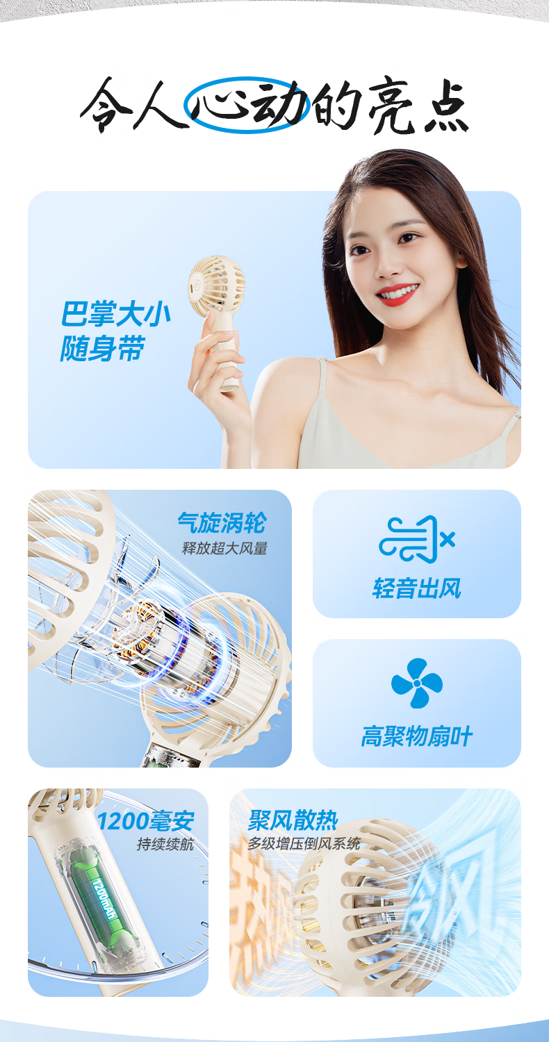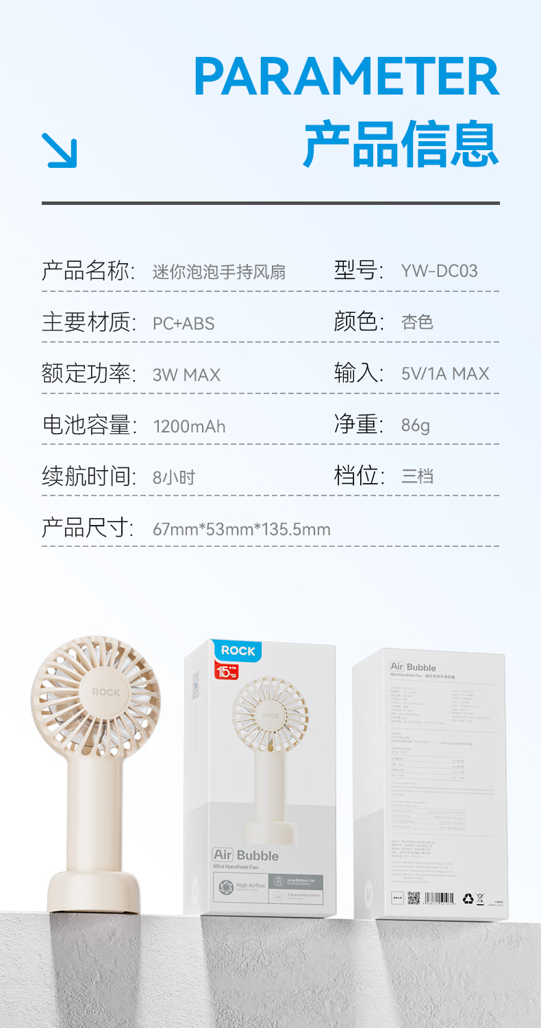 洛克 ROCK 泡泡迷你手持风扇 杏色