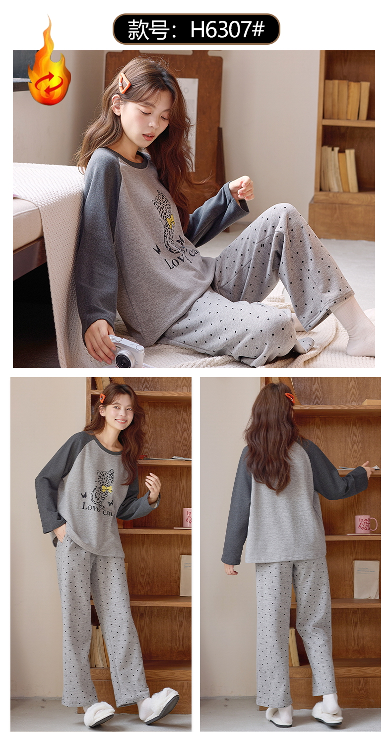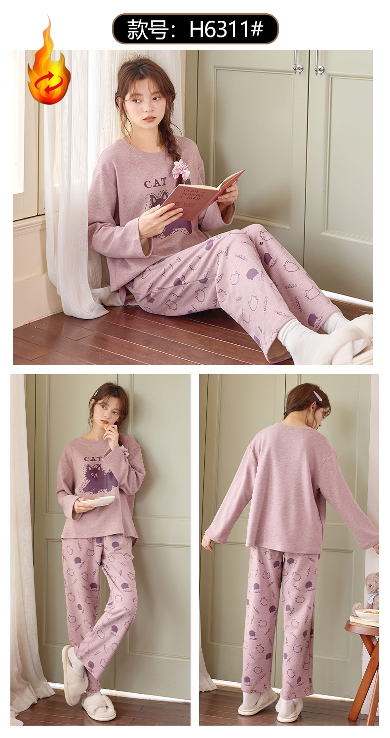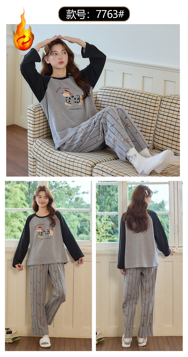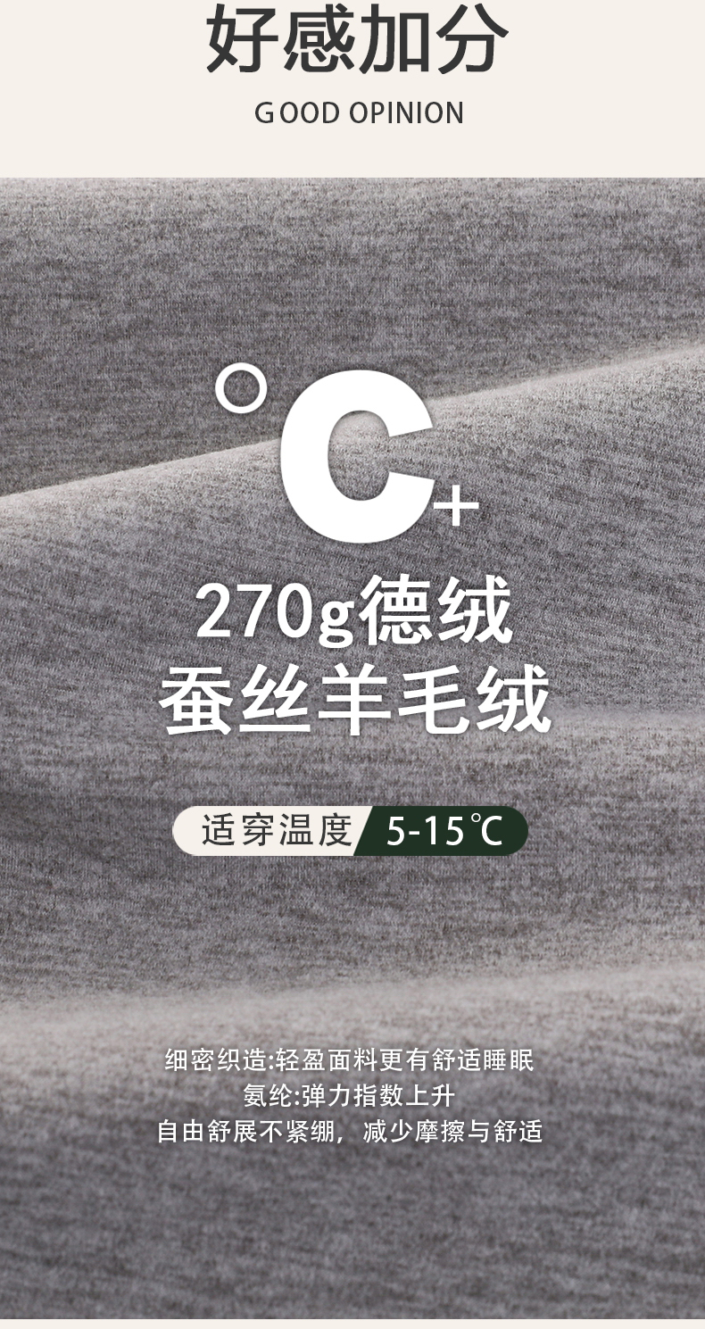 自然醒糯居女生家居服蚕丝羊毛绒长袖长裤套头睡衣QH