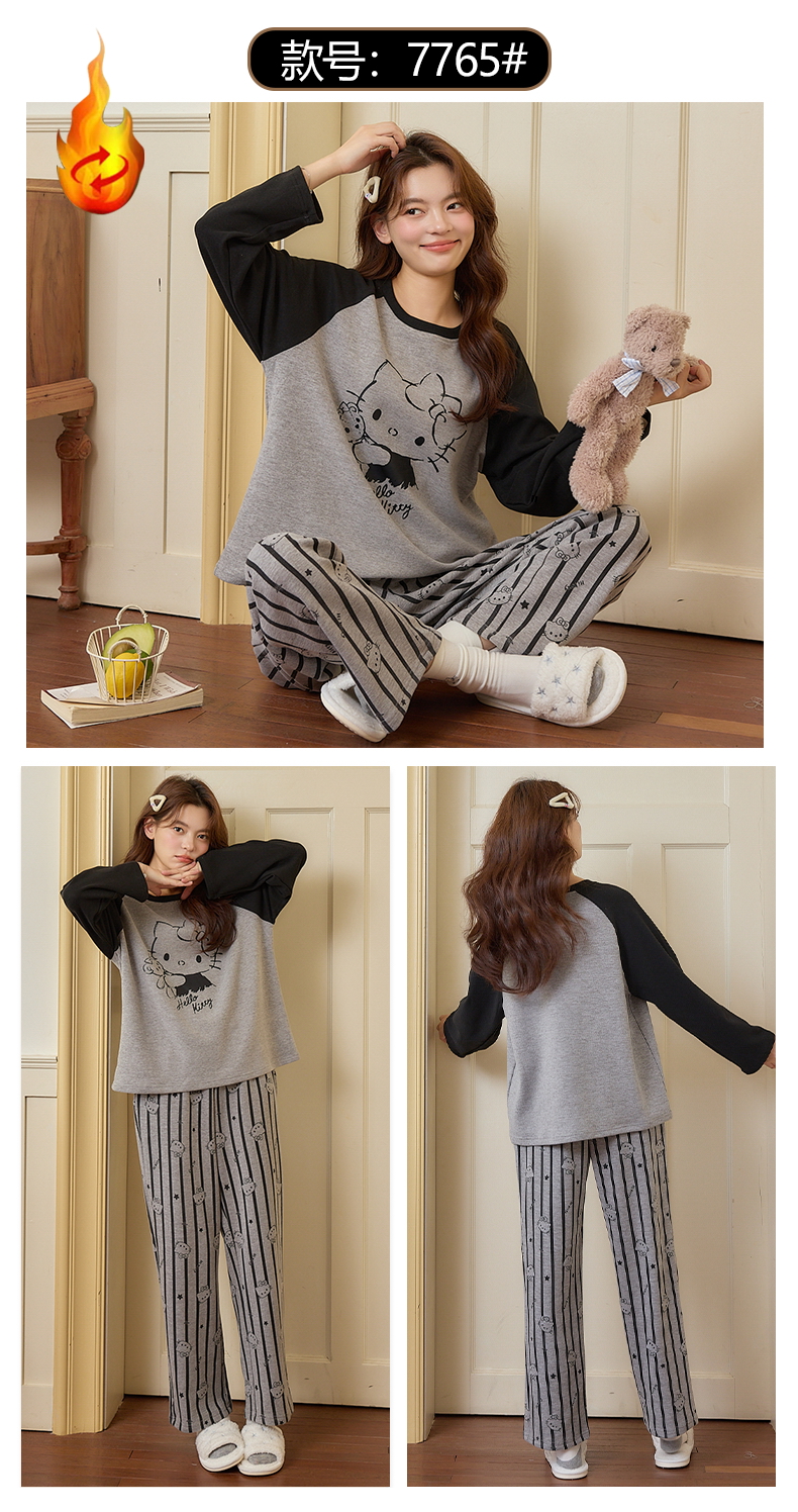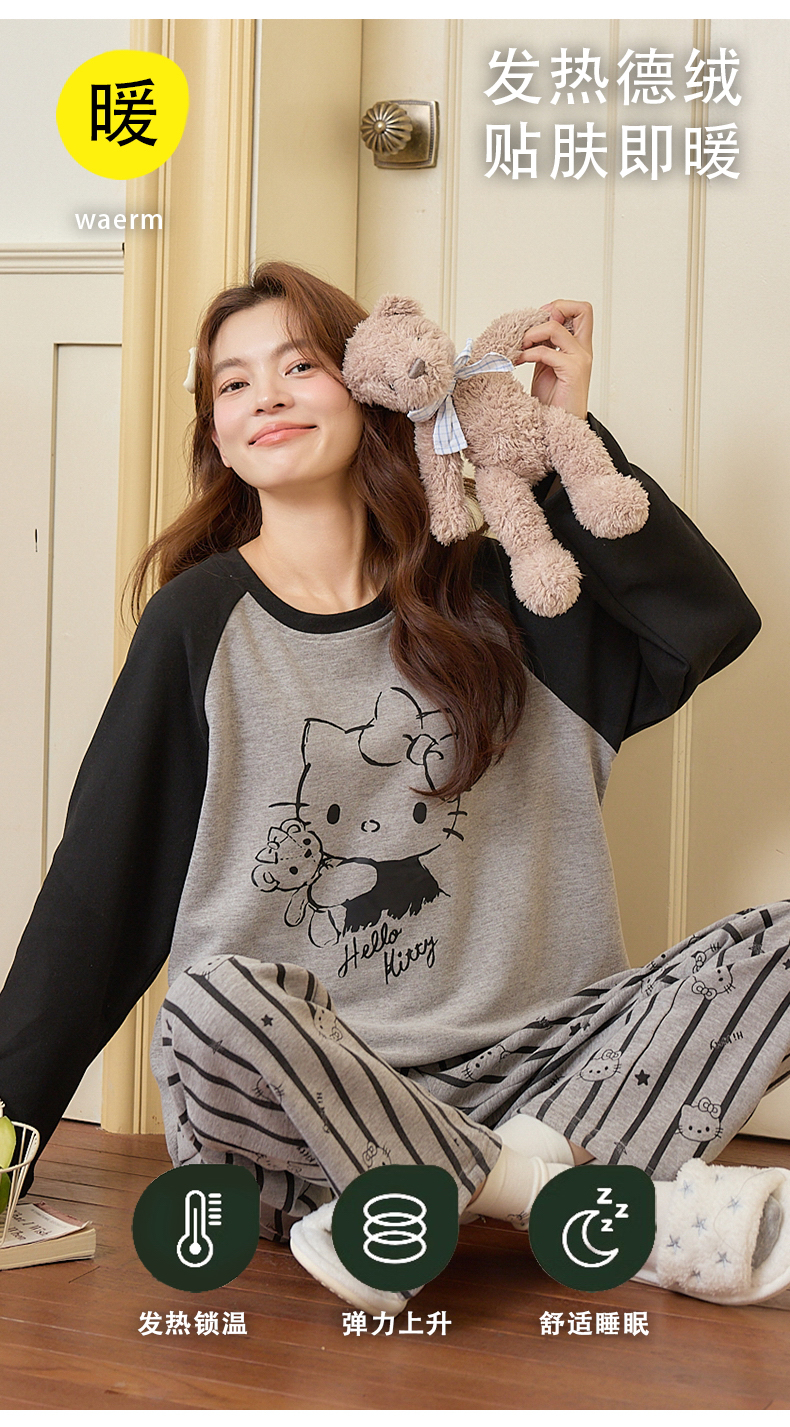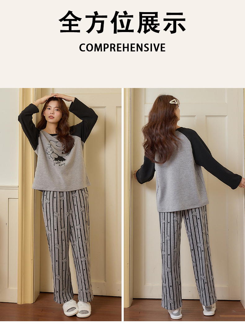 自然醒糯居女生家居服蚕丝羊毛绒长袖长裤套头睡衣QH