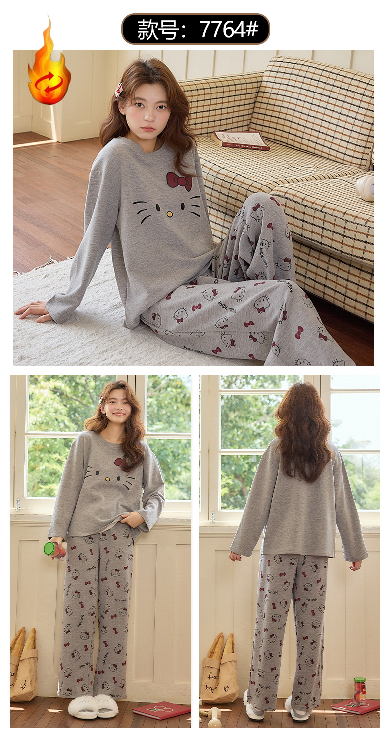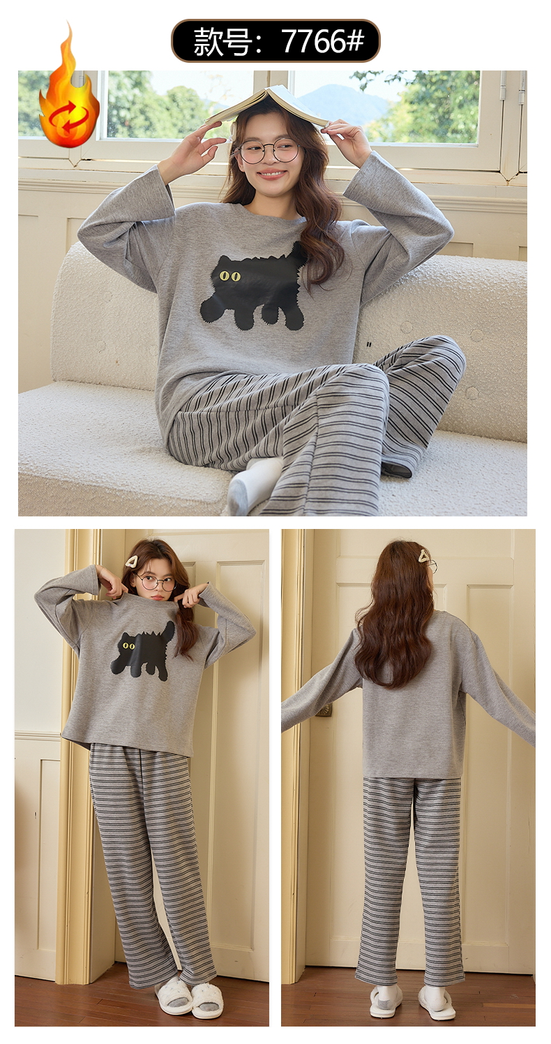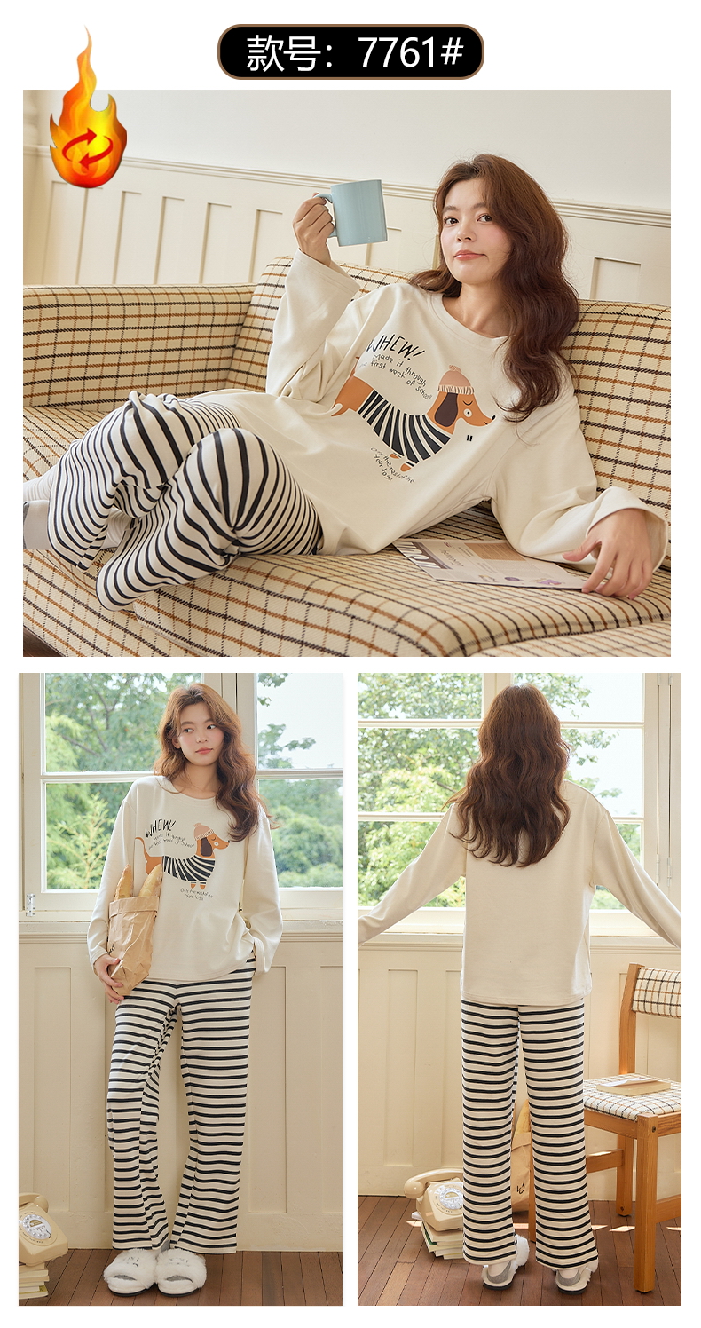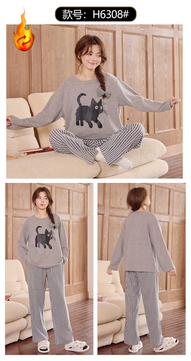 自然醒糯居女生家居服蚕丝羊毛绒长袖长裤套头睡衣QH