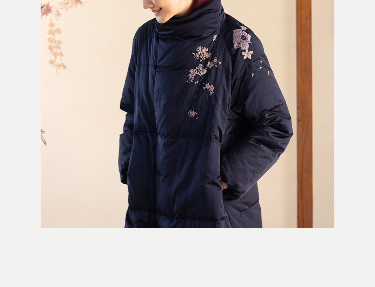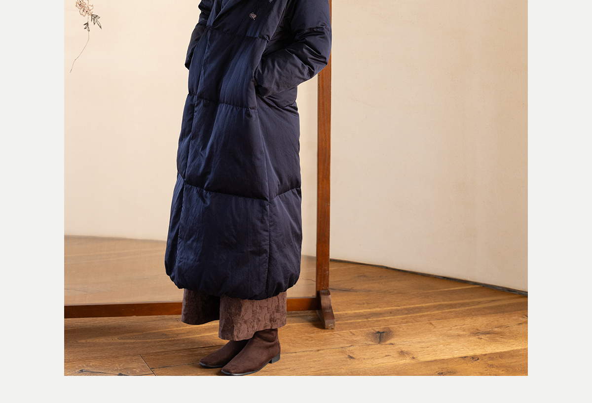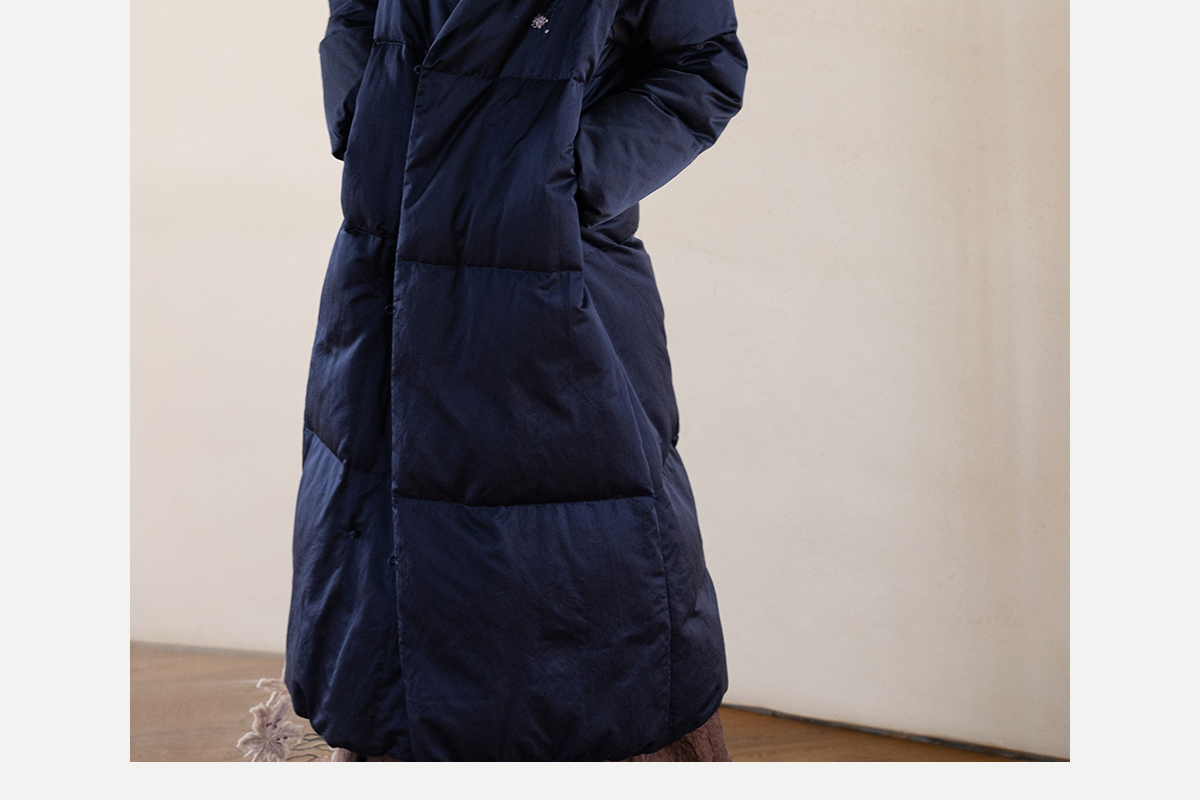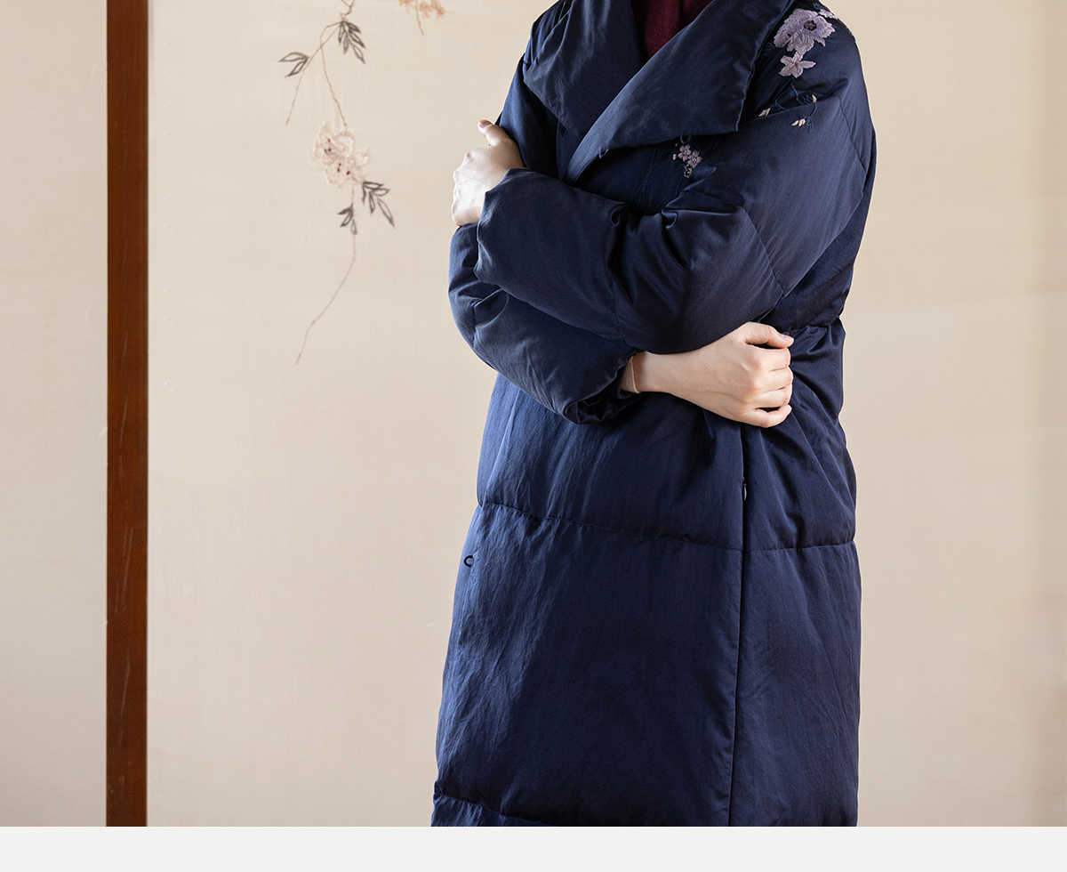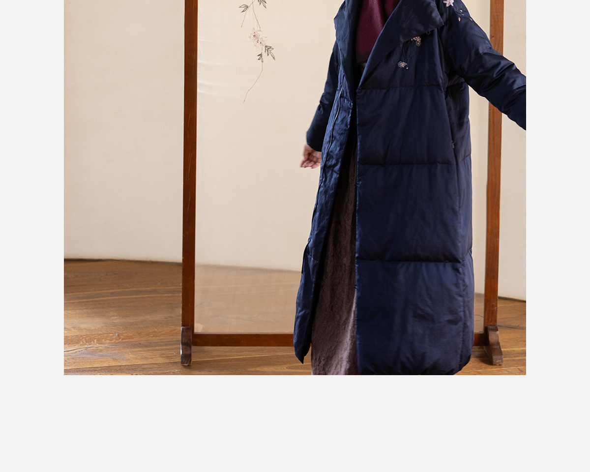 牧衣游原创 刺绣丝棉95级红嘴雁绒羽绒长外套蓬松加厚保暖 宜即