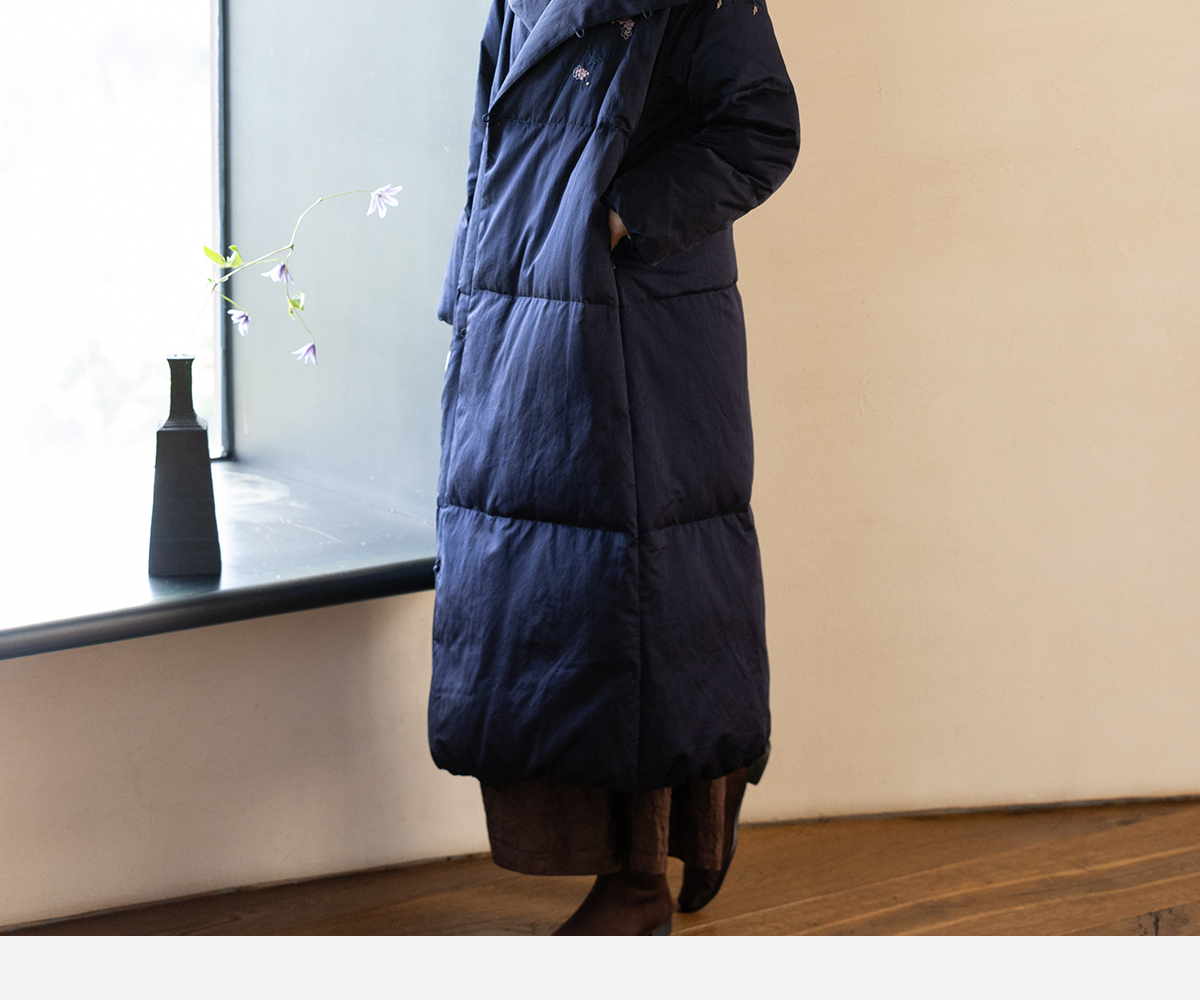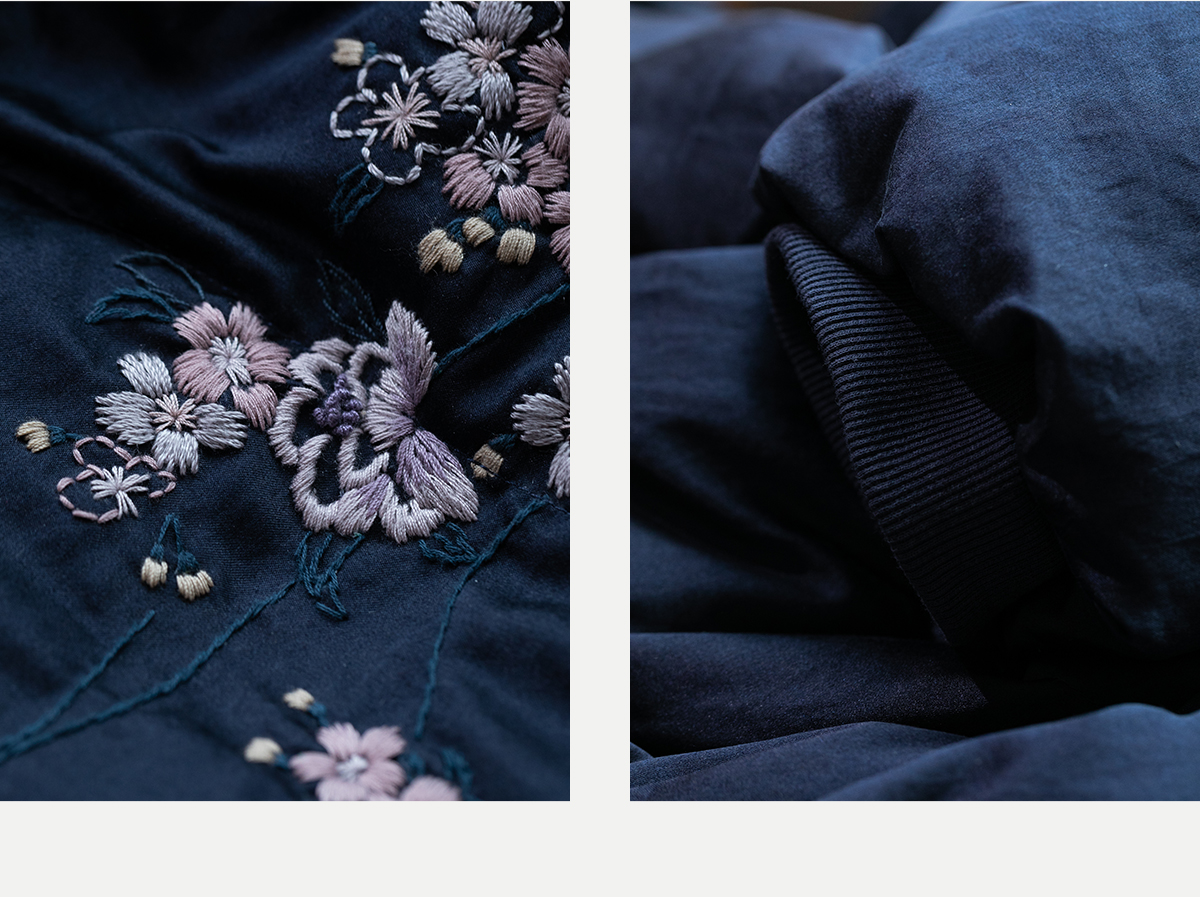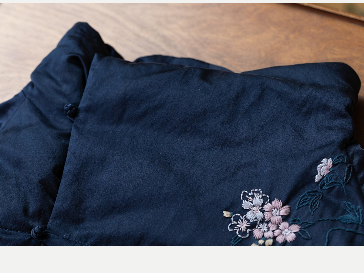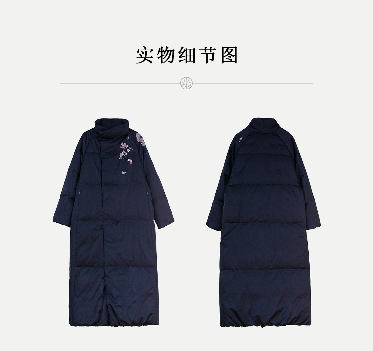 牧衣游原创 刺绣丝棉95级红嘴雁绒羽绒长外套蓬松加厚保暖 宜即