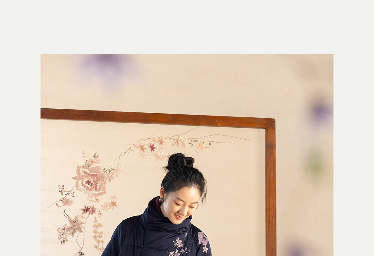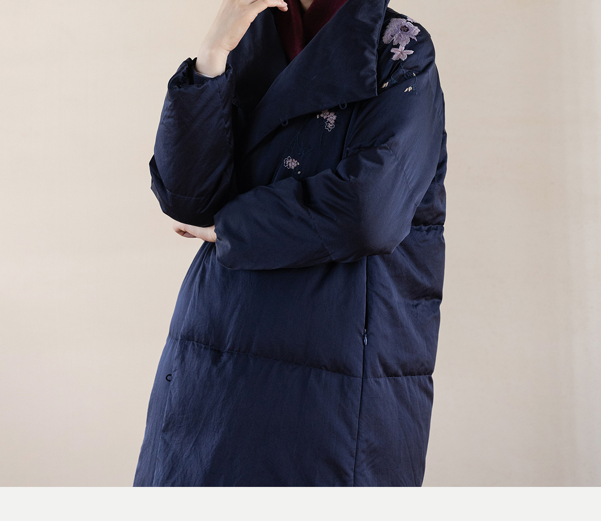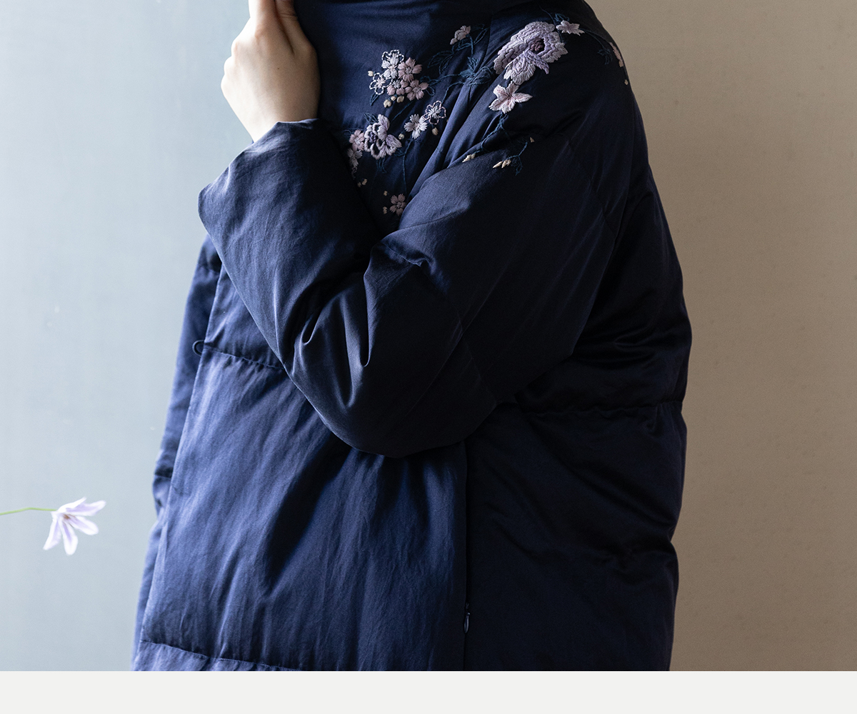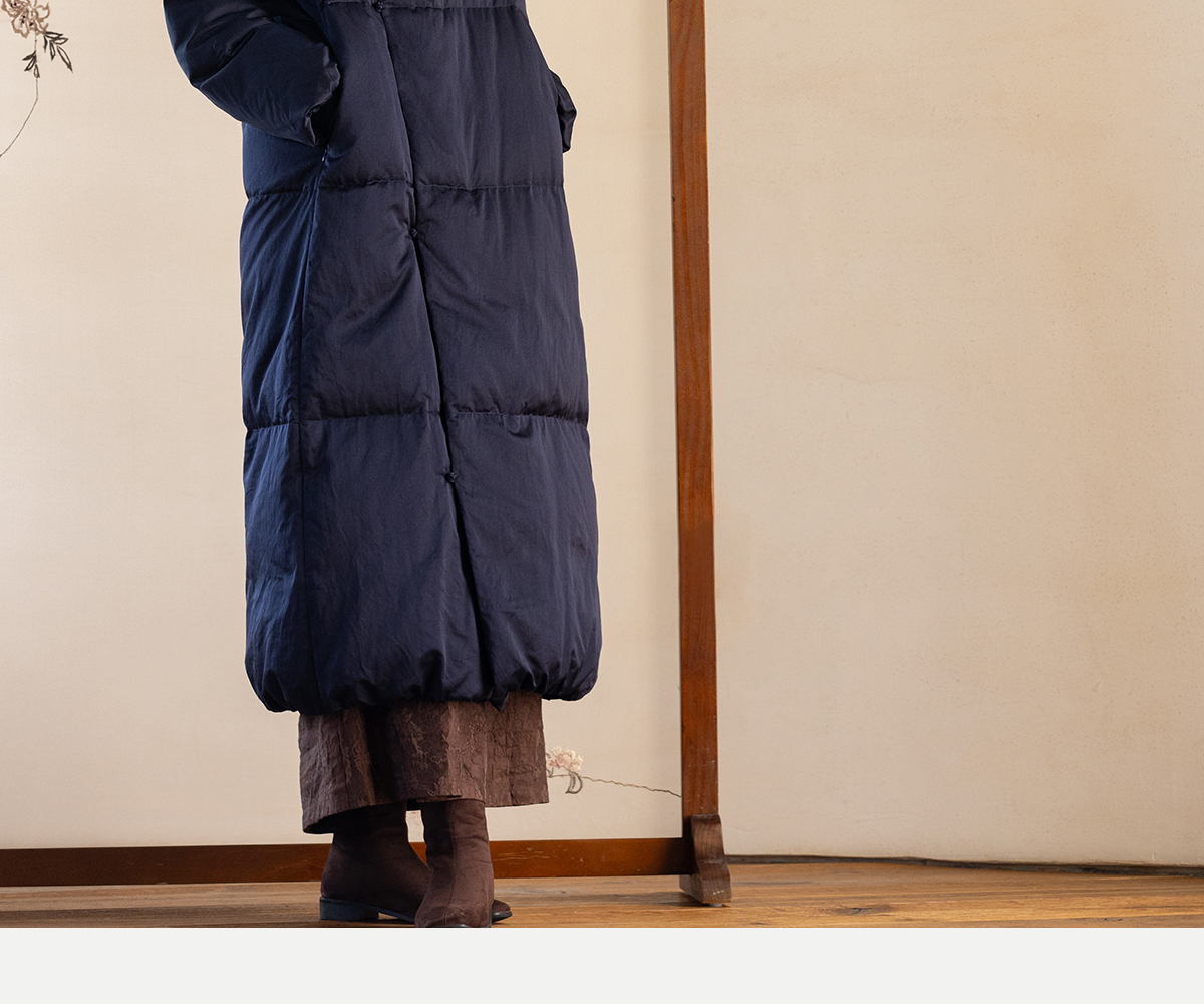 牧衣游原创 刺绣丝棉95级红嘴雁绒羽绒长外套蓬松加厚保暖 宜即