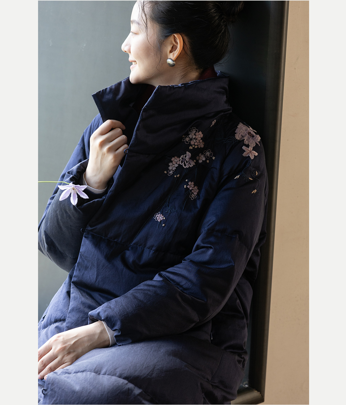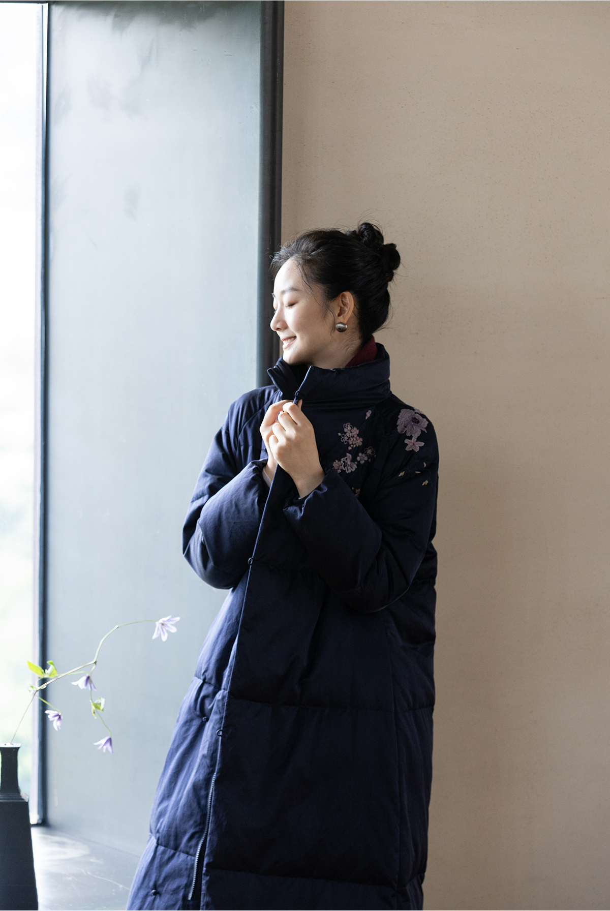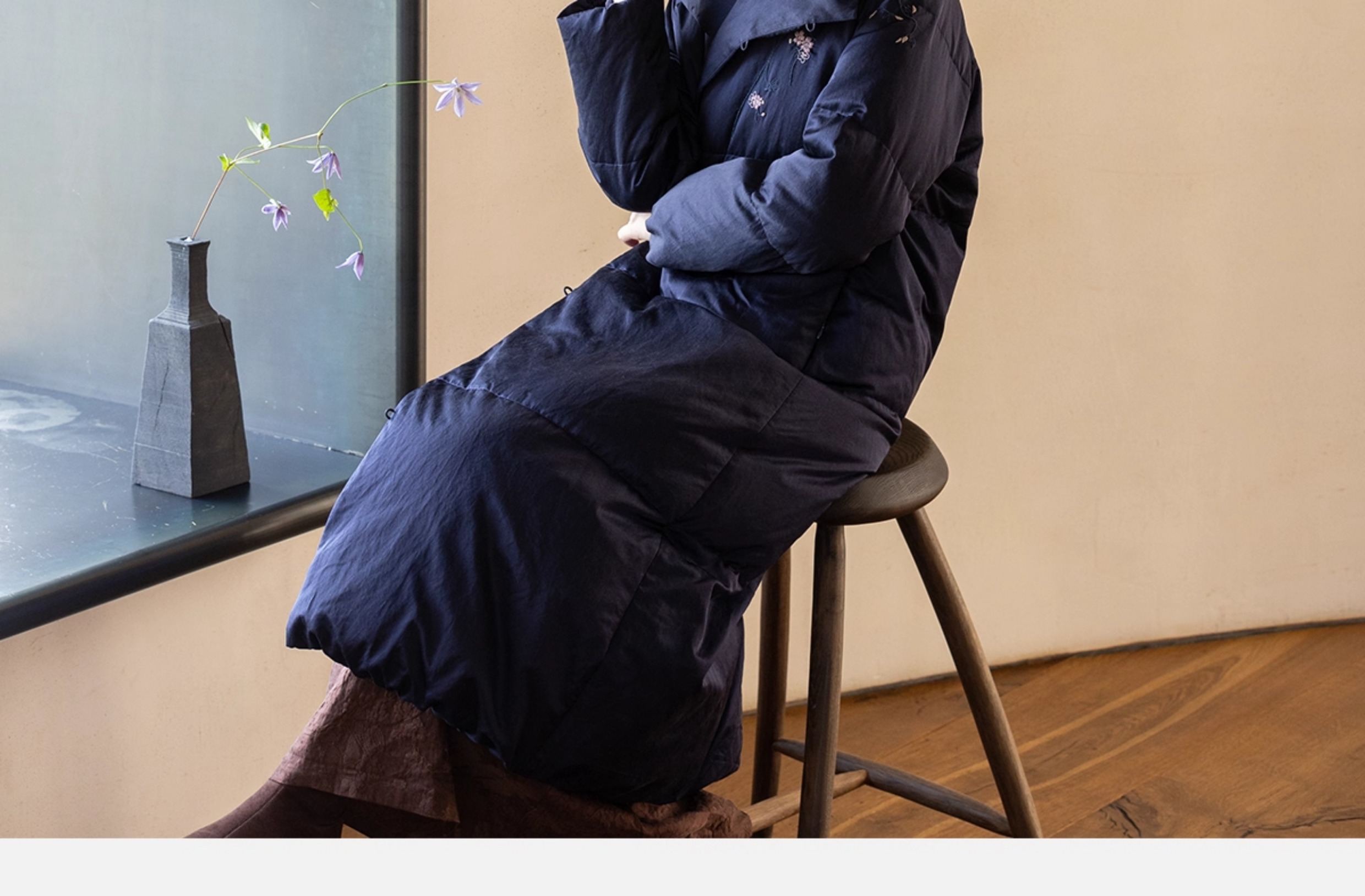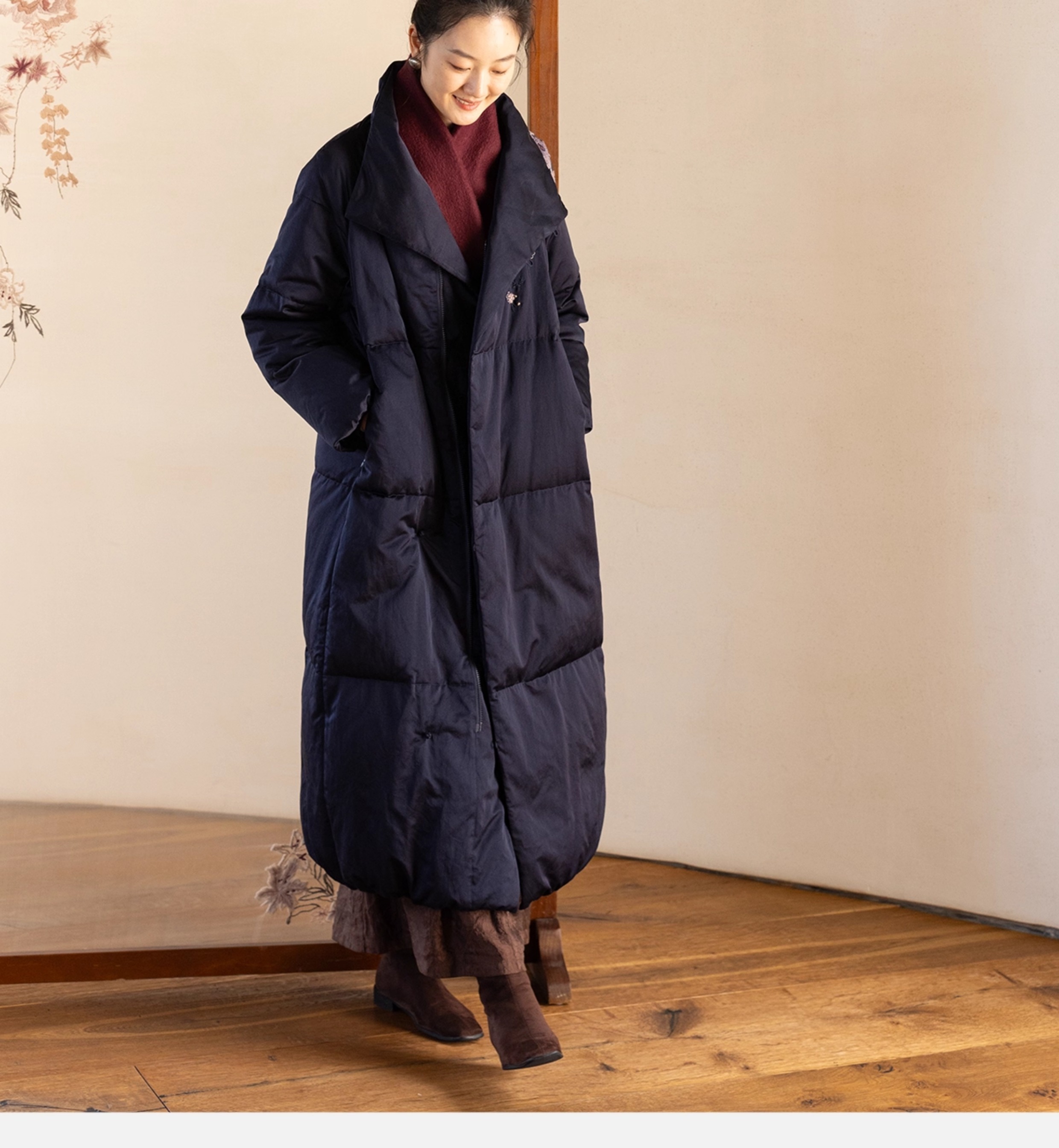 牧衣游原创 刺绣丝棉95级红嘴雁绒羽绒长外套蓬松加厚保暖 宜即