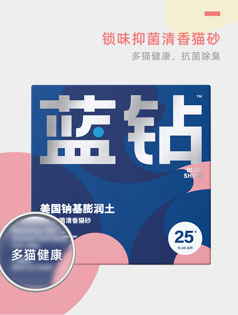 蓝钻膨润土猫砂25磅美国钠基膨润土红白标蓝猫砂无尘除臭活性炭
