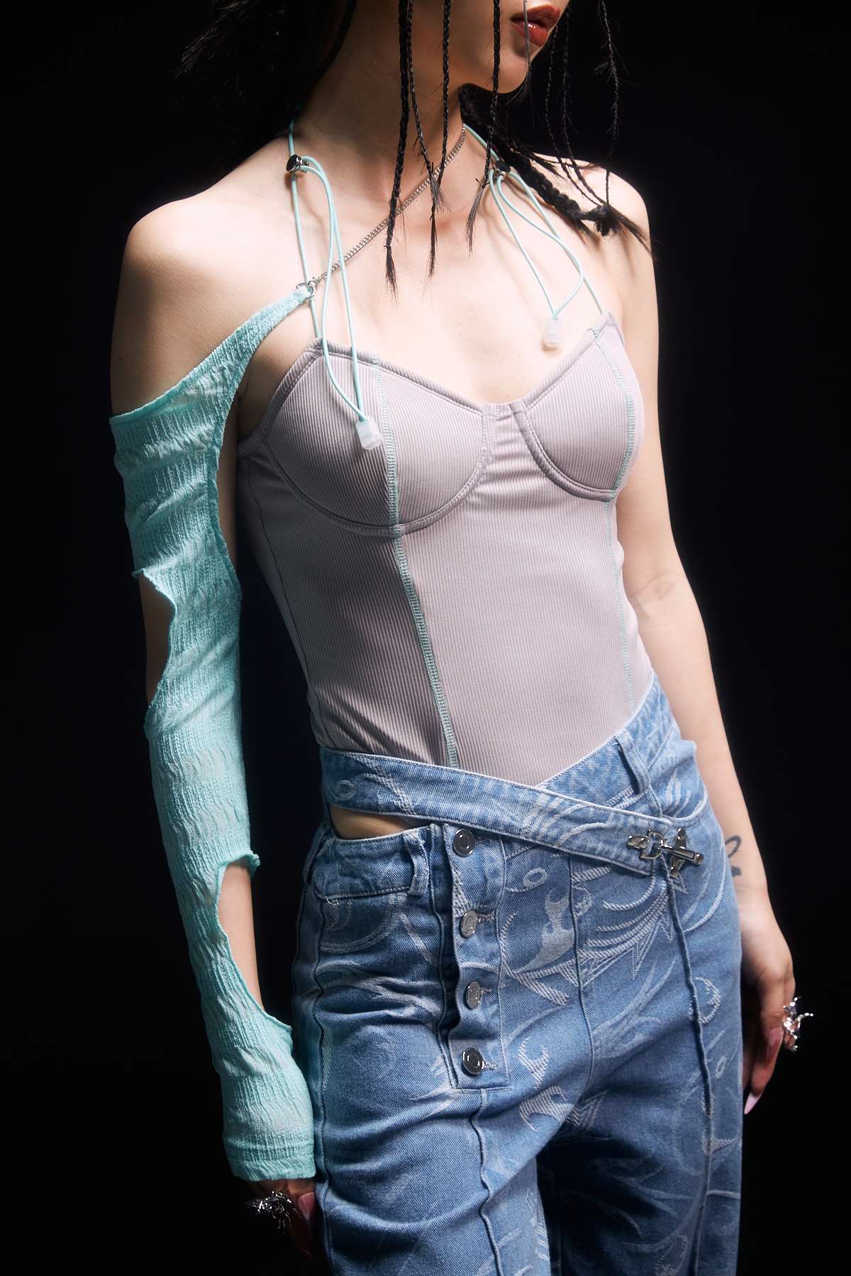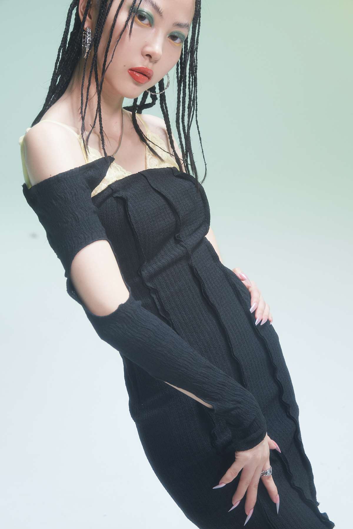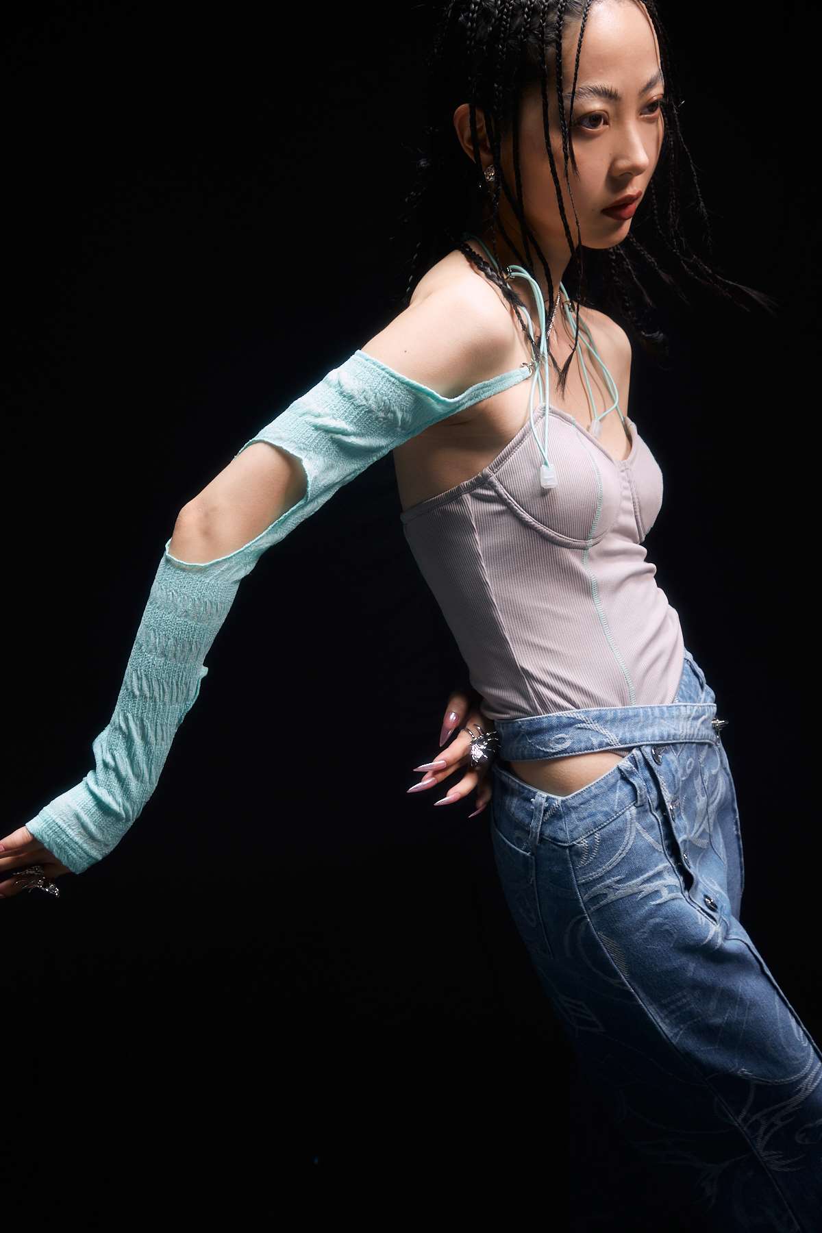 EhK 弹力双色 防晒袖套 斜肩设计感百搭长袖搭配款