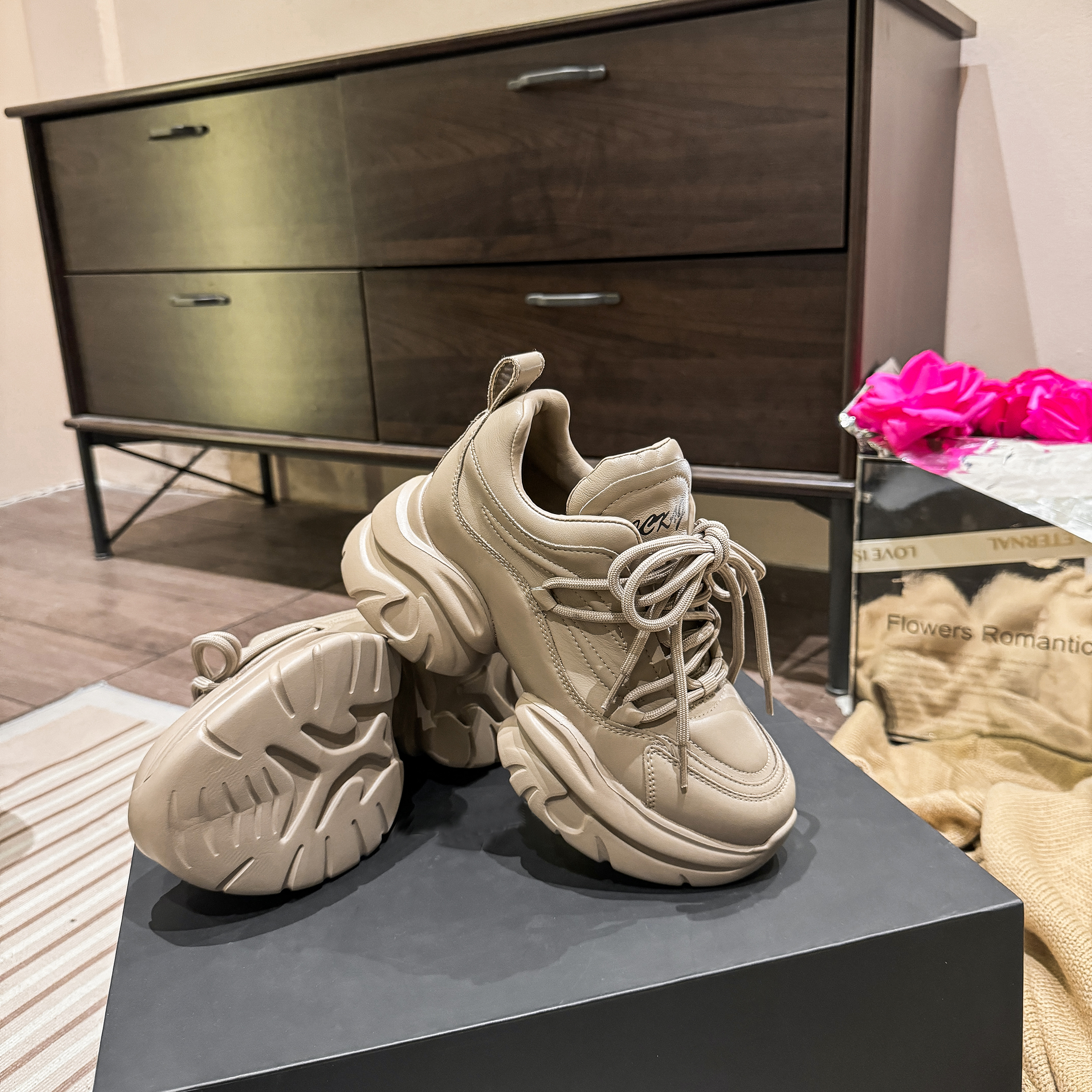 豪麟名鞋奥莱迪嘉女装牛皮革时尚老爹鞋DJYSO32WX211卡其色 原价1660元