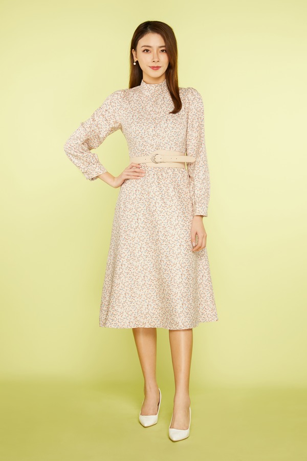 Le Malene 皮带收腰立领碎花连衣裙(不含腰带) 11455