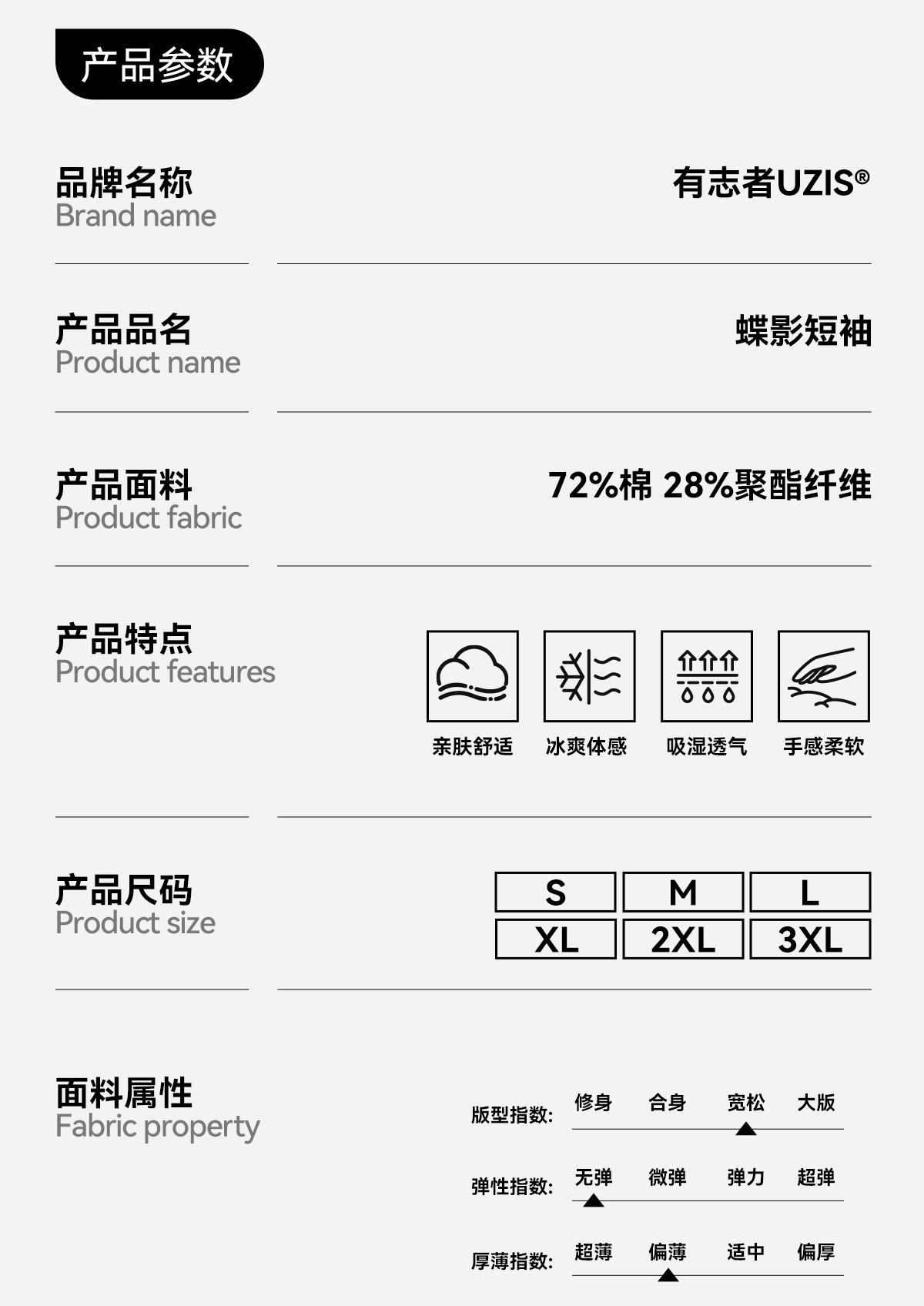 有志者UZIS美式休闲运动短袖男春夏新款宽松透气篮球训练T恤蝶影