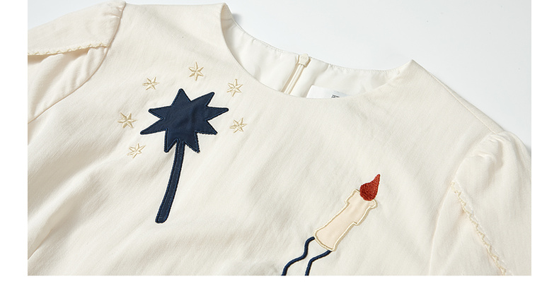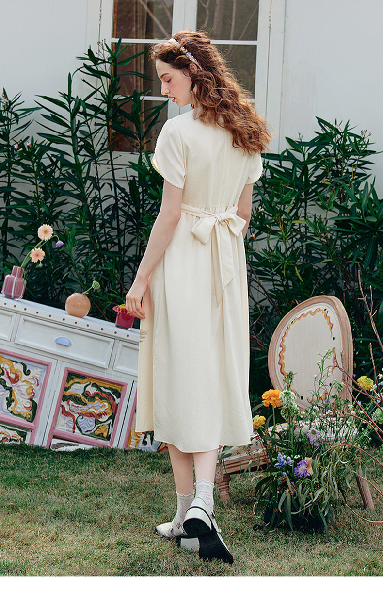 两三事梵高文艺迷雾芳影法式蕾丝拼接灯笼袖绣花连衣裙