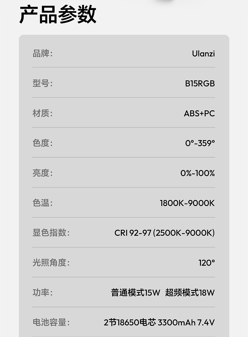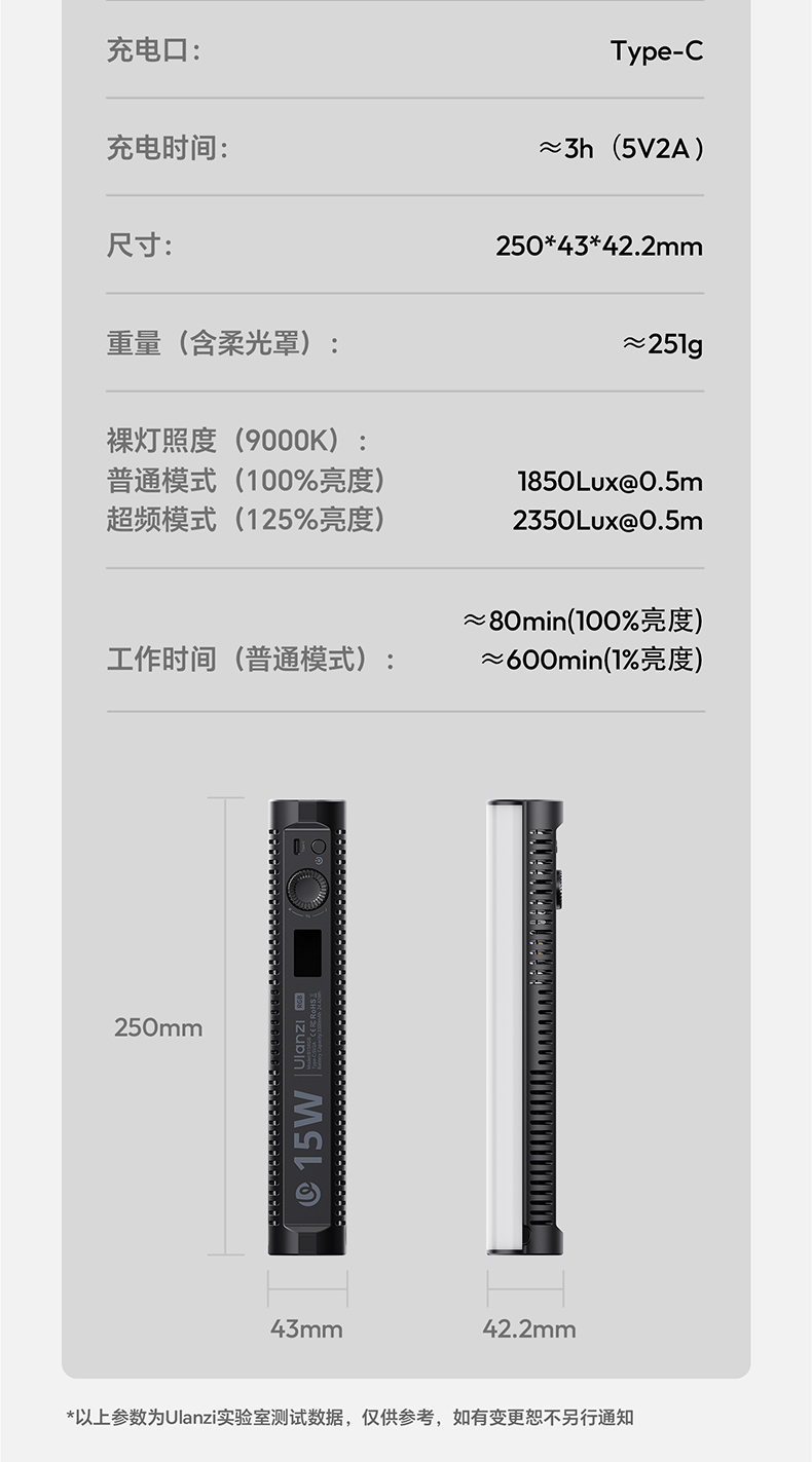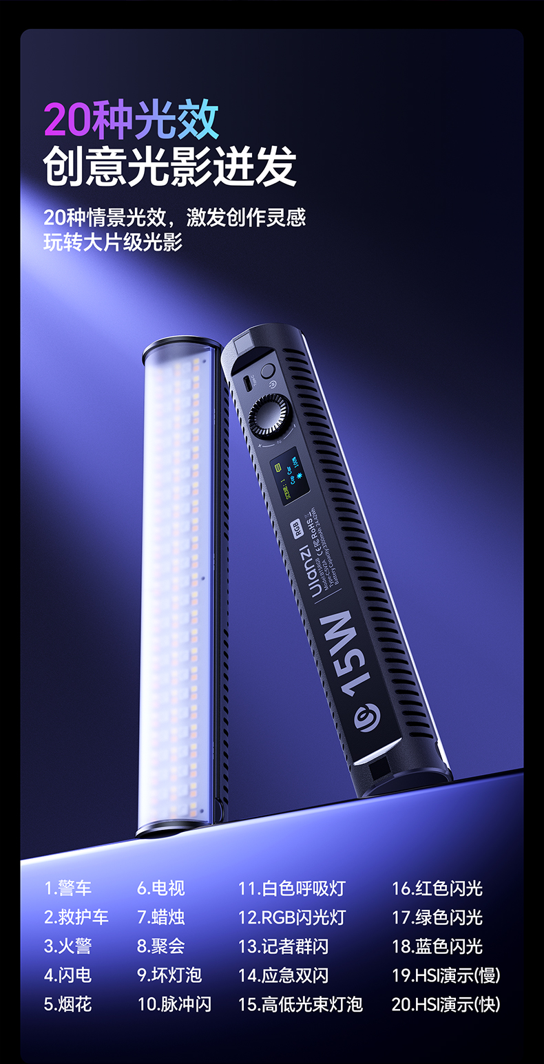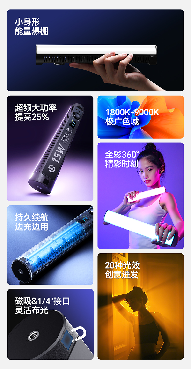 Ulanzi优篮子 B15RGB 15W棒灯手持补光灯全彩氛围灯