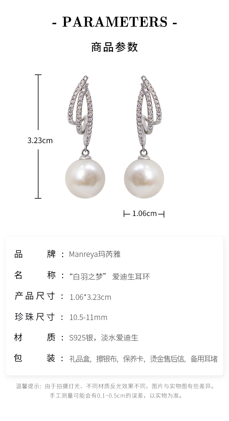 Manreya玛芮雅“白羽之梦” 爱迪生珍珠耳环轻奢小众