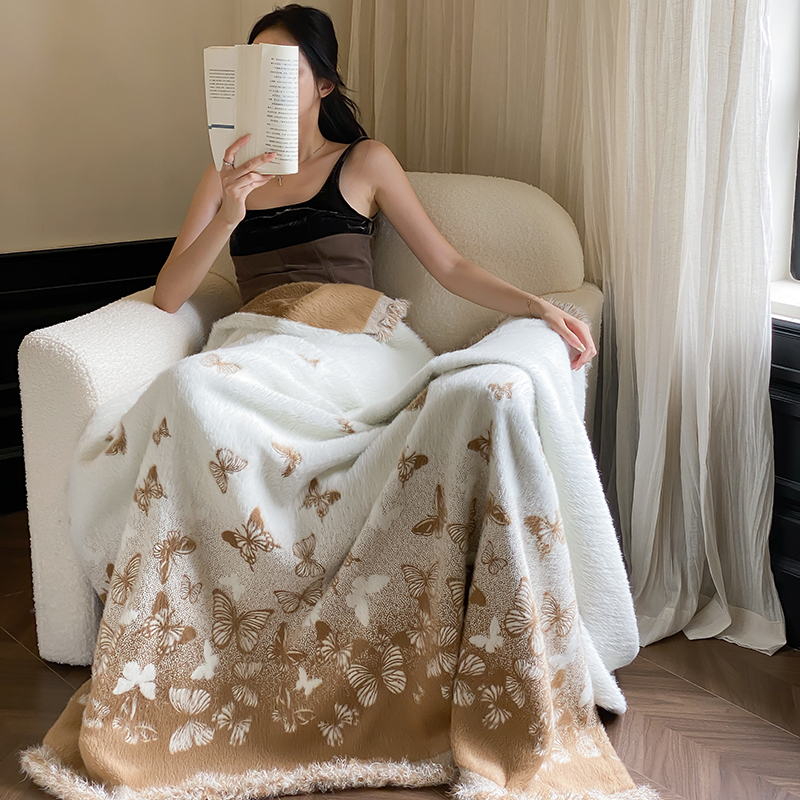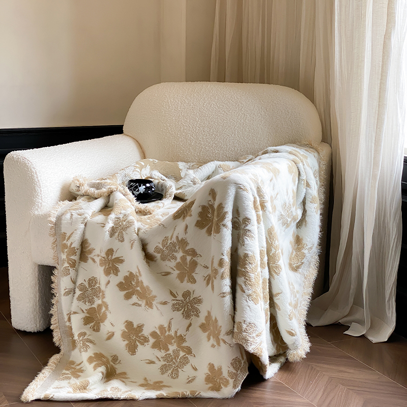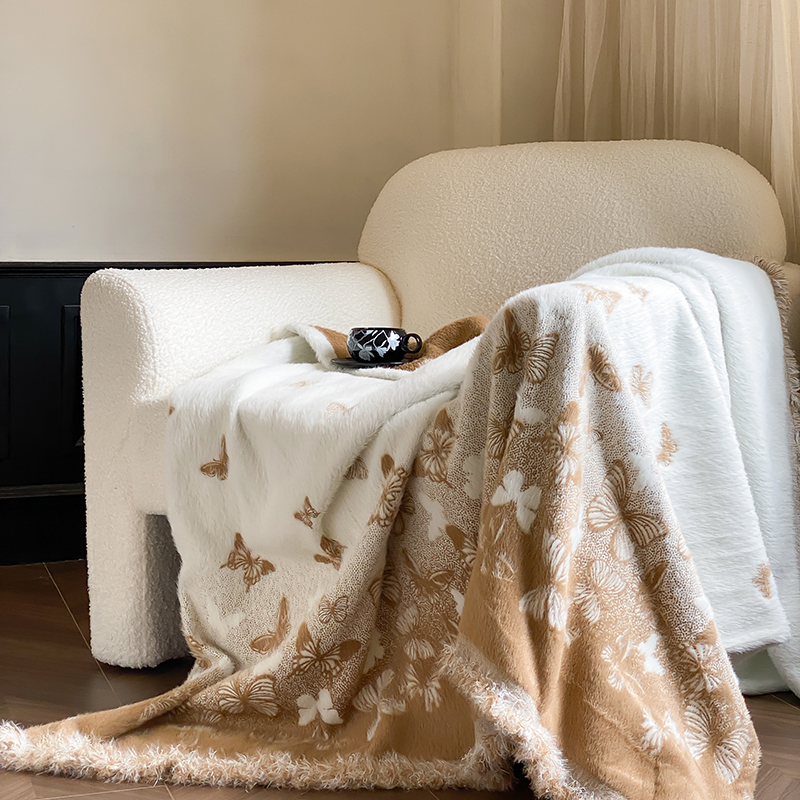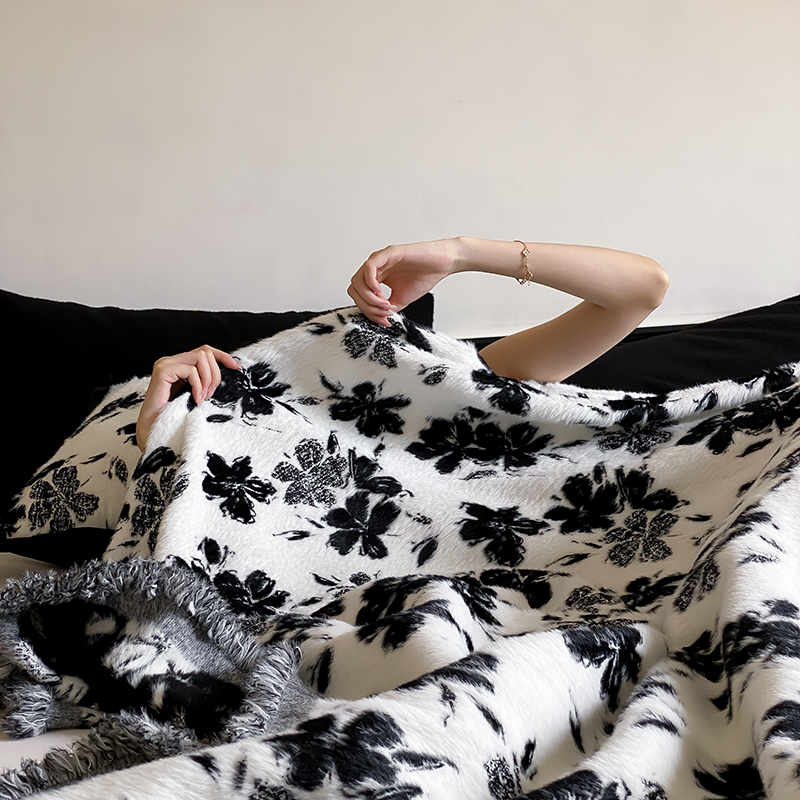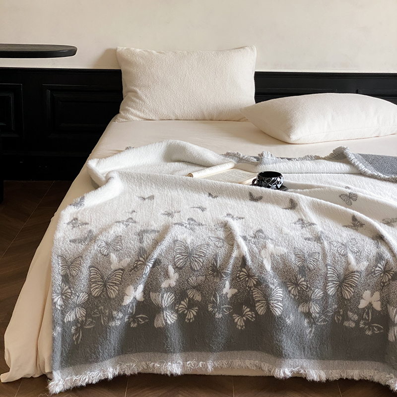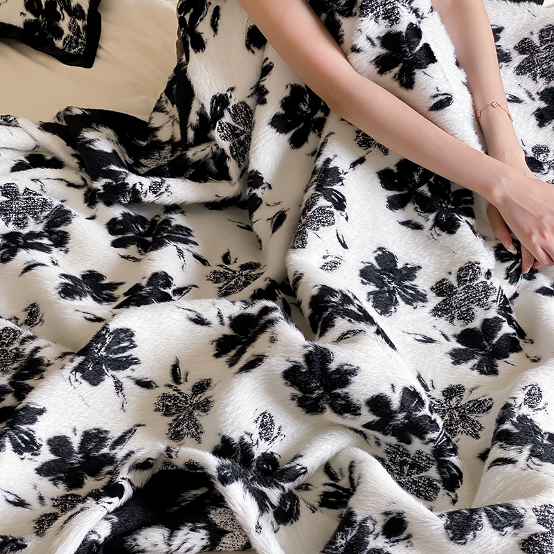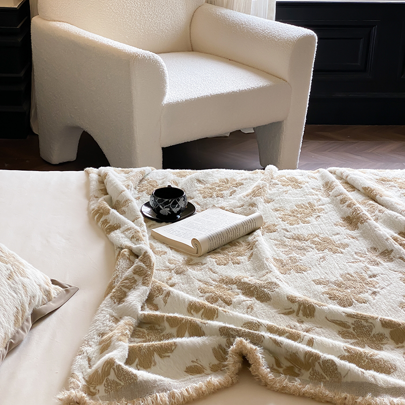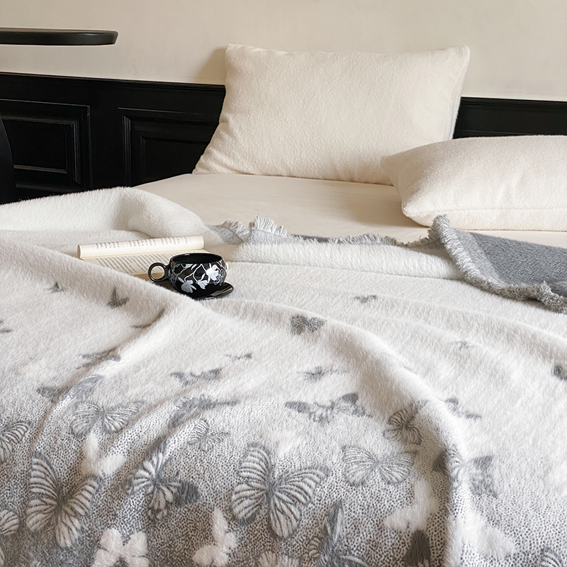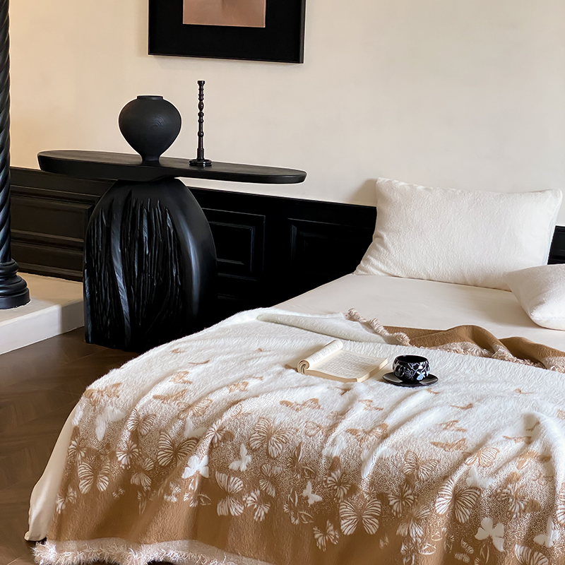 自然醒貂绒毛毯国风系列高端蝴蝶花卉长毛貂绒毛毯流苏毯双面盖毯保暖厚实秋冬单人毯MT